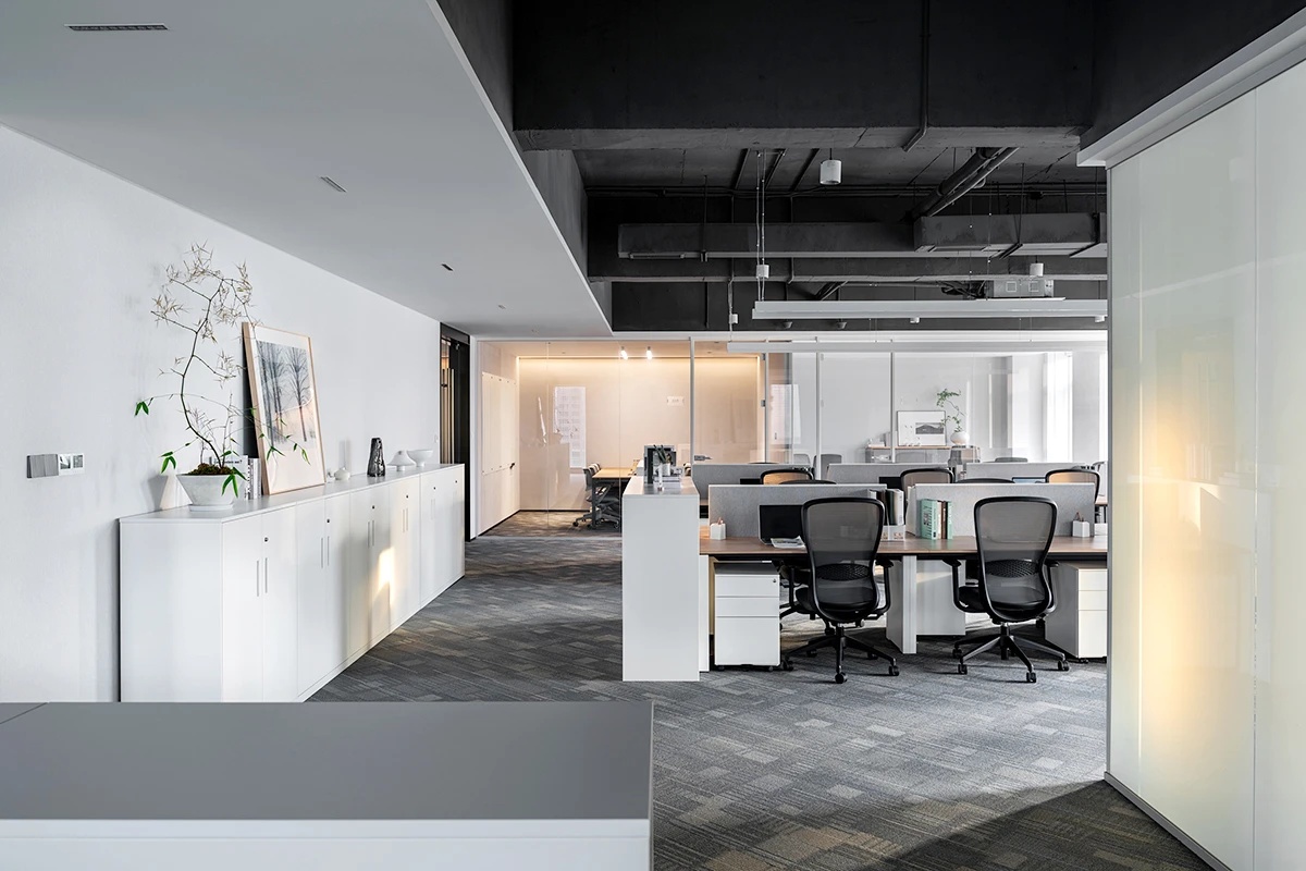 办公区采用开放式空间,避免使用传统墙和柱式隔断。大开间无柱化设计,重新定义宽境办公,在带来开阔视野的同时,满足企业主商务办公、会议接洽、日常休闲等各类办公需求。