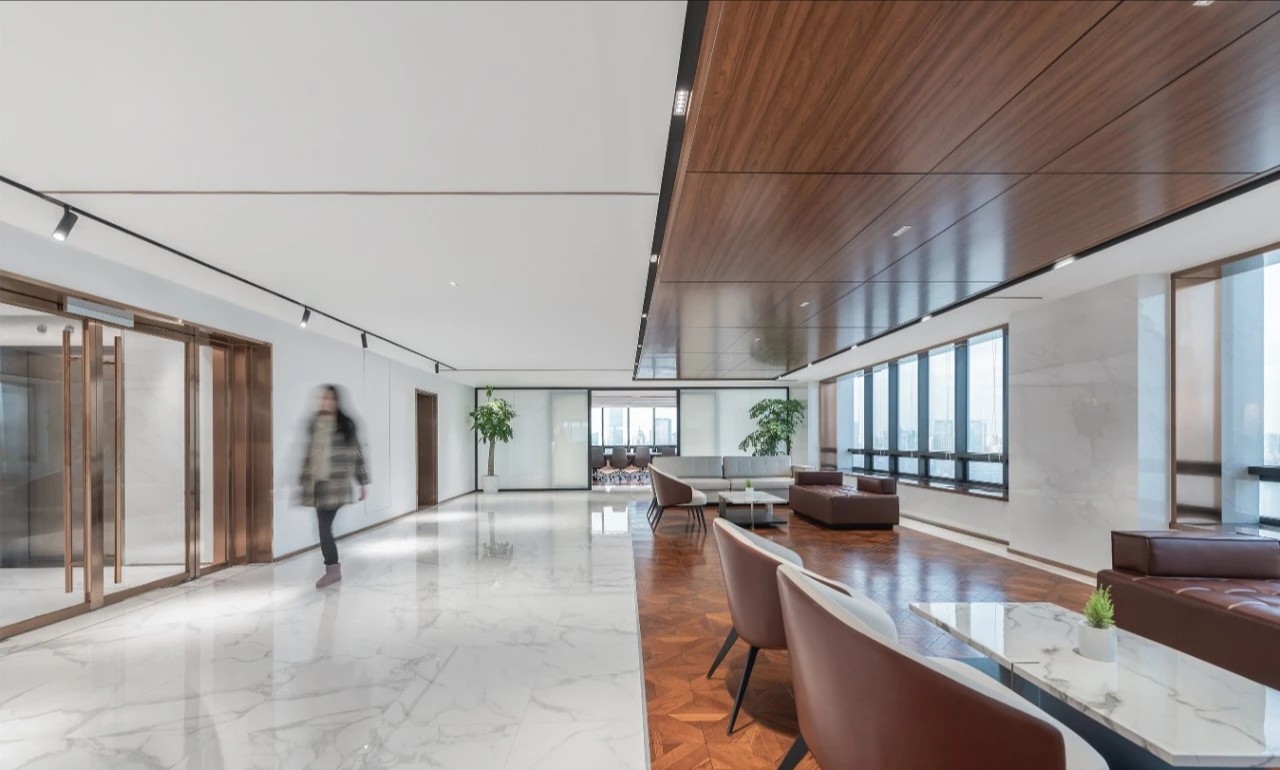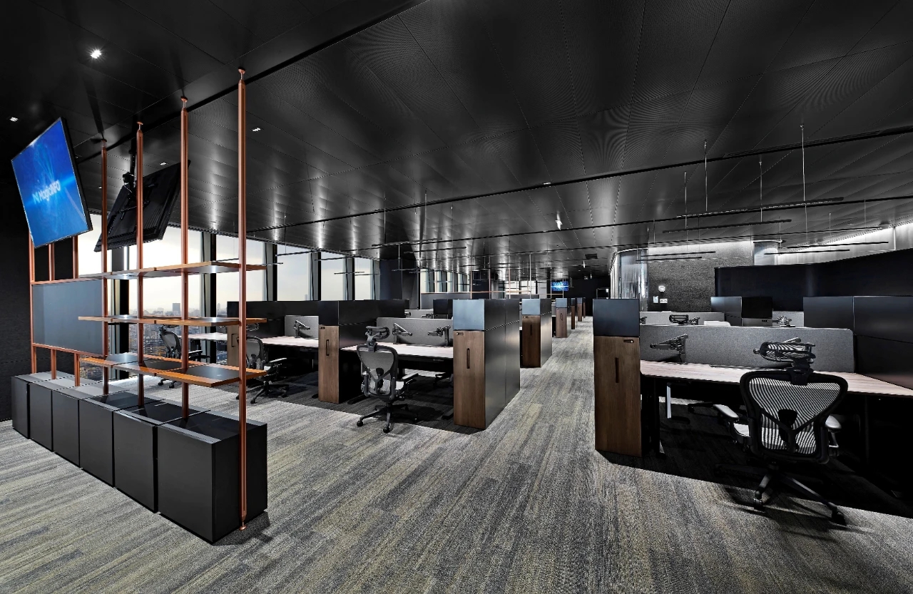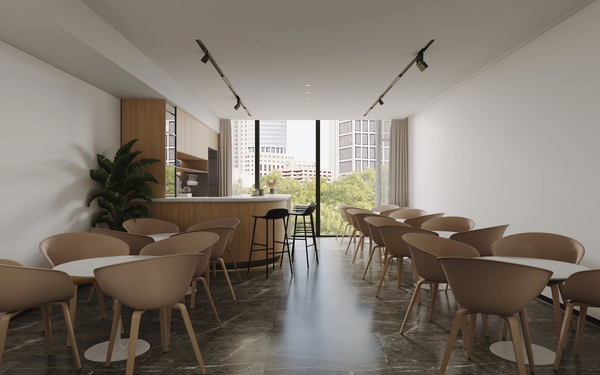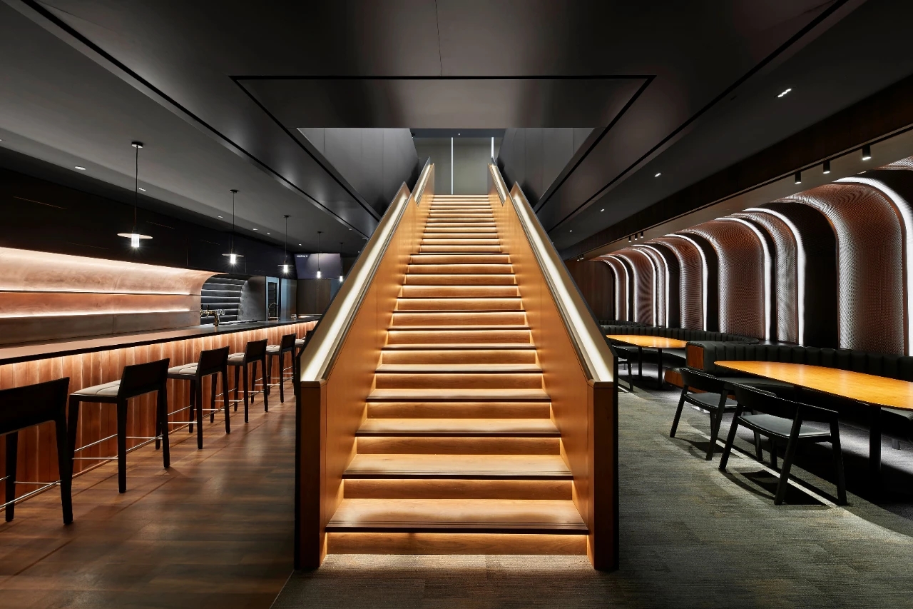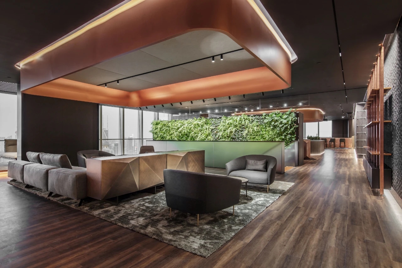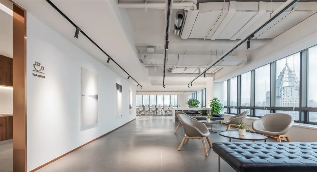 除了专注的工作环境,酷拳还配备了多功能共享空间,鼓励团队成员之间的交流与合作。开放区域可一览外滩美景,是进行小组讨论、游戏娱乐或轻松对话的绝佳场所。小型观影室、电竞网吧等设施,为员工提供了丰富的休闲娱乐选择。咖啡吧台的设计灵感源自日本威士忌酒吧,提供咖啡和各种饮品,让员工在忙碌的工作之余也能感受到轻松与惬意。