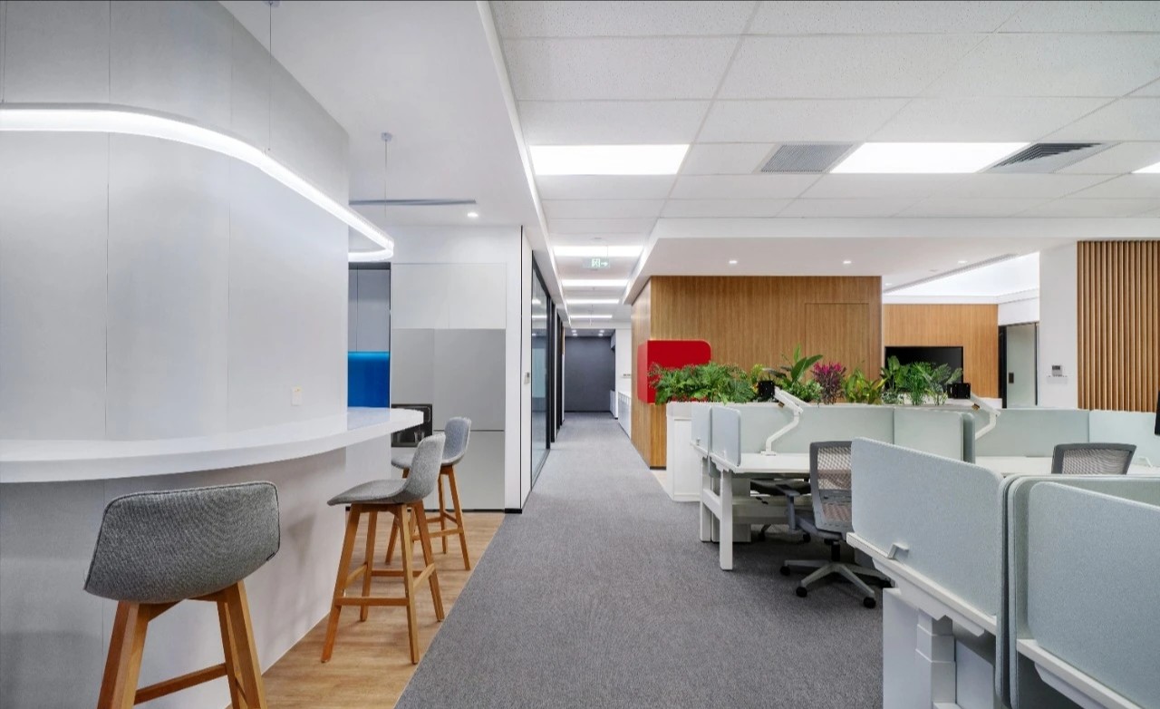 在洽谈区和工作区之间排布了经理室,使各个空间到达此处的距离呈现一种恰到好处的均衡。