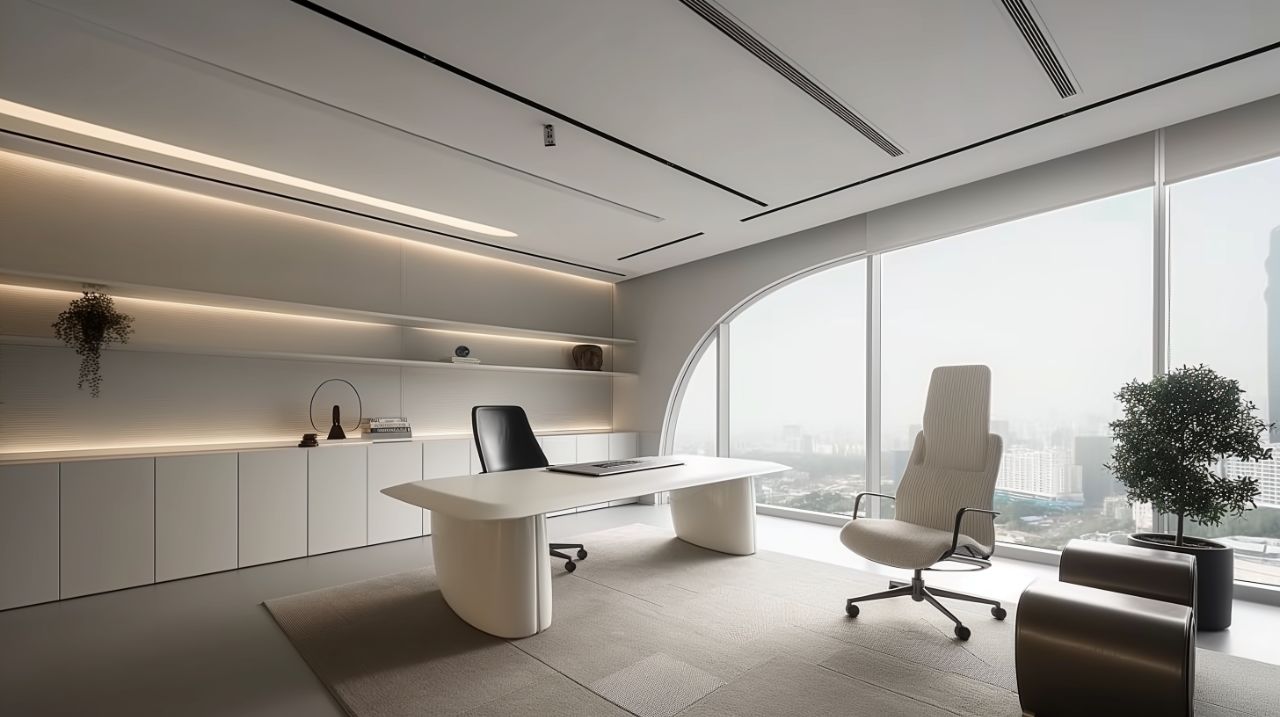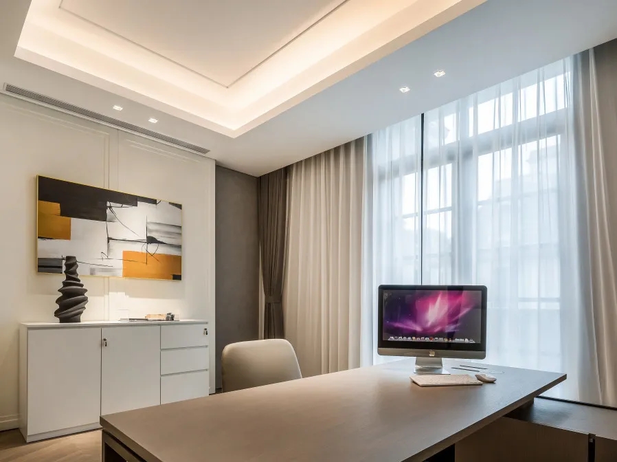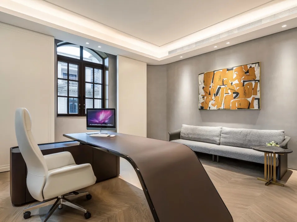 在色彩搭配上,我们以黑白灰这种宁静、素雅的搭配为主。这种经典配色营造出一种松弛的氛围,能够激发更多的创造灵感,同时也满足了大多数客户的体验需求。因为只有在这样的氛围中,人们才能更加自由地思考和创作。
