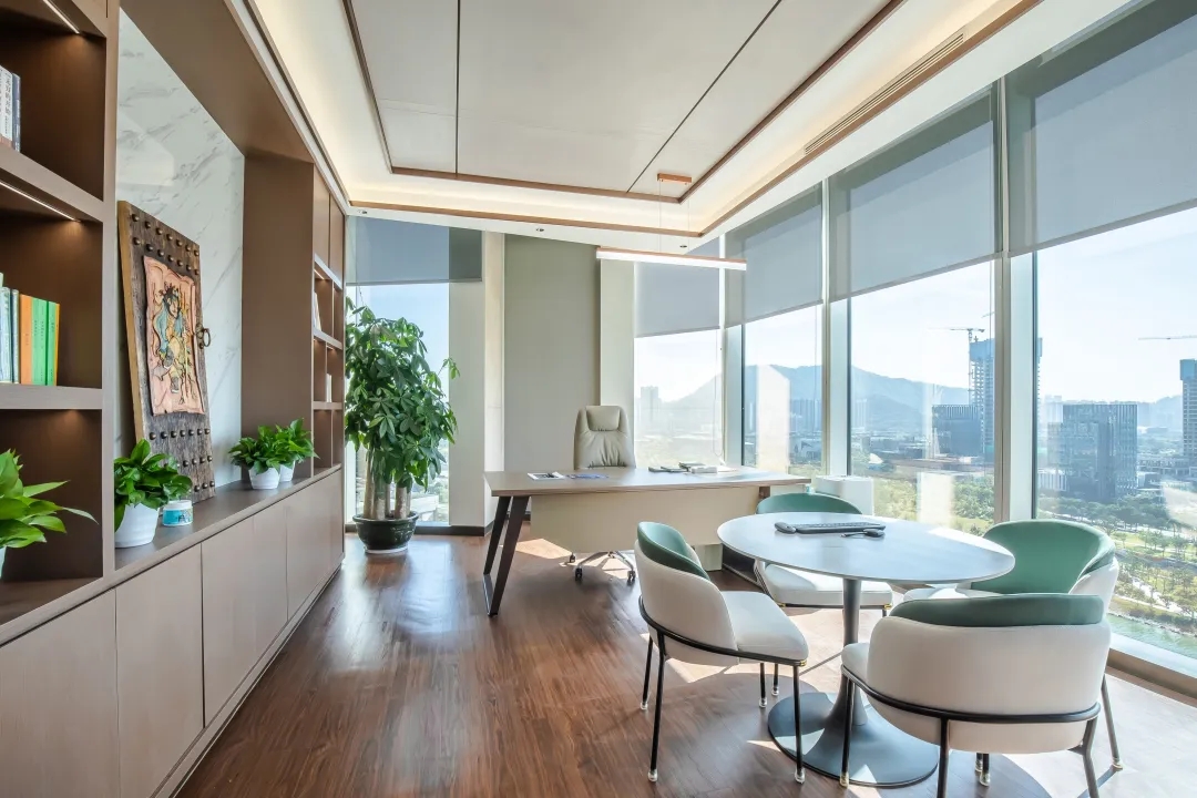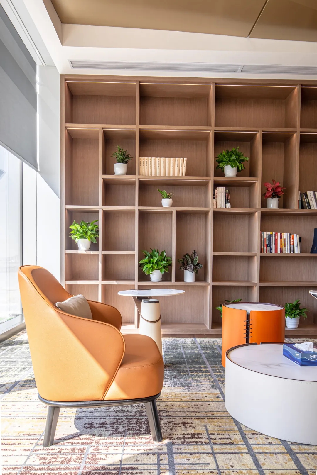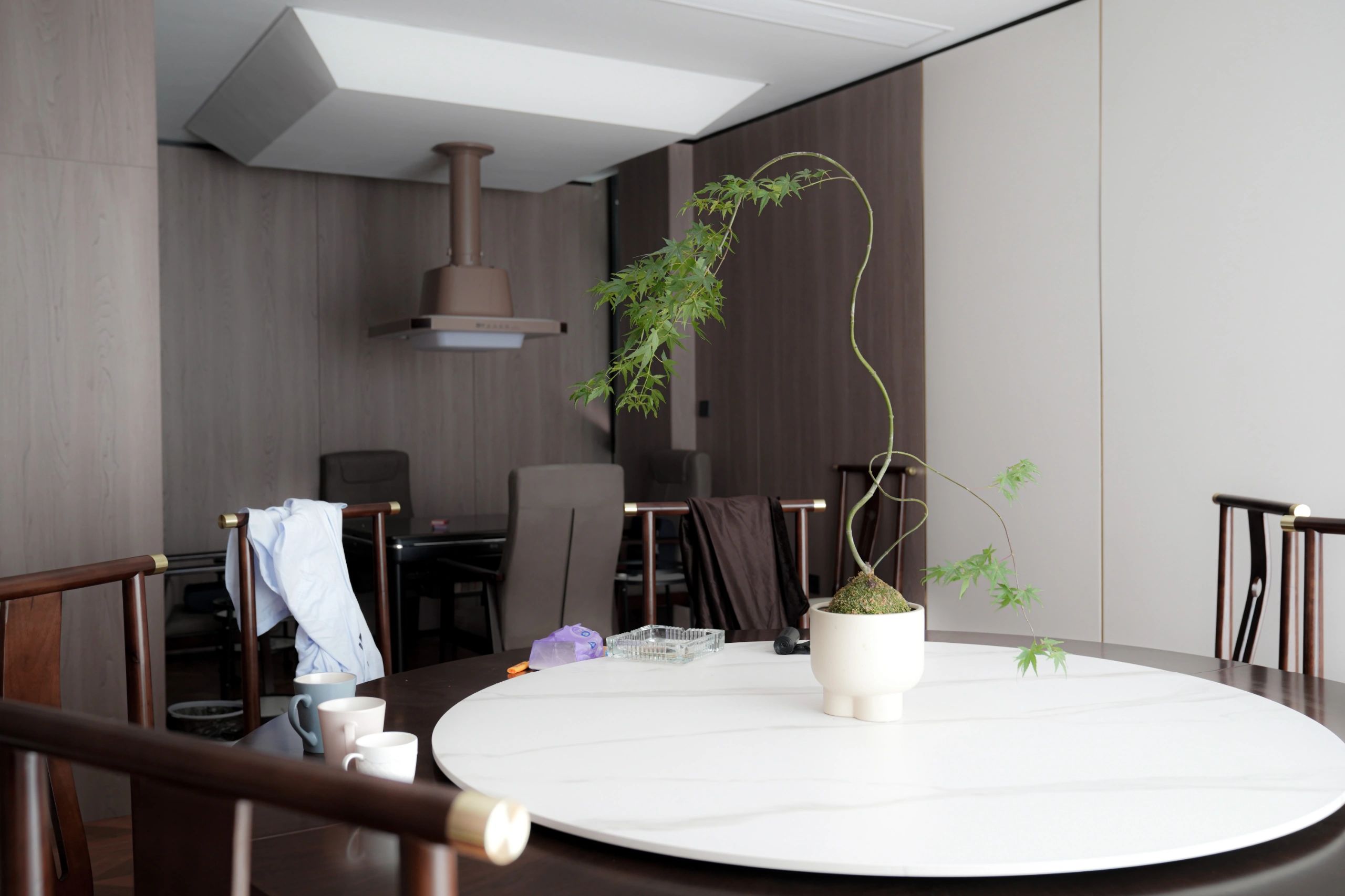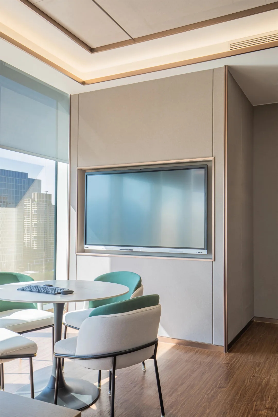 会议室透明的弧形玻璃隔断巧妙地模拟了星际飞船的观景窗大理石天然纹理映射出遥远星球的地貌赋予空间深邃而广袤的维度