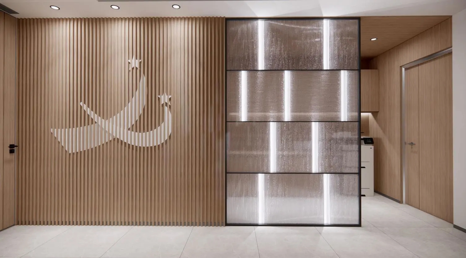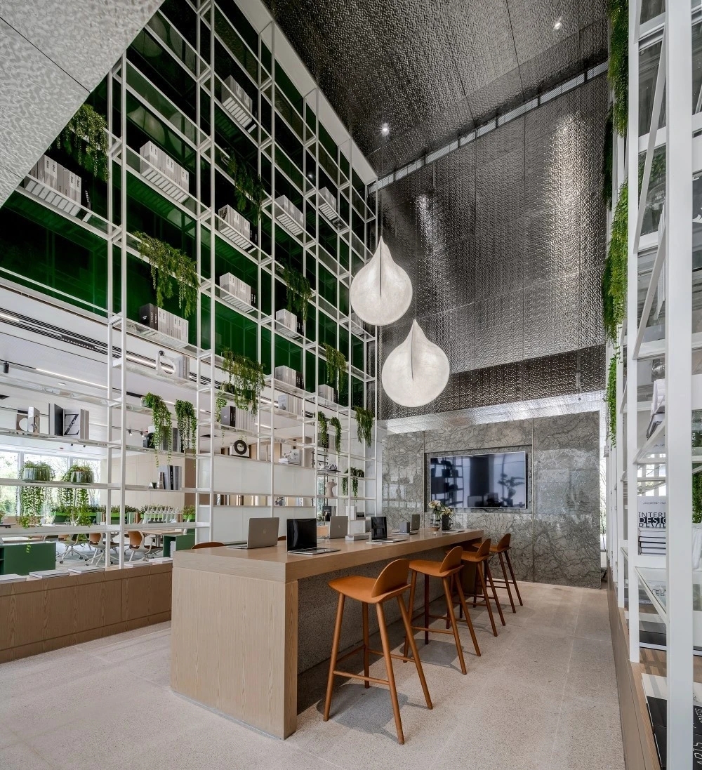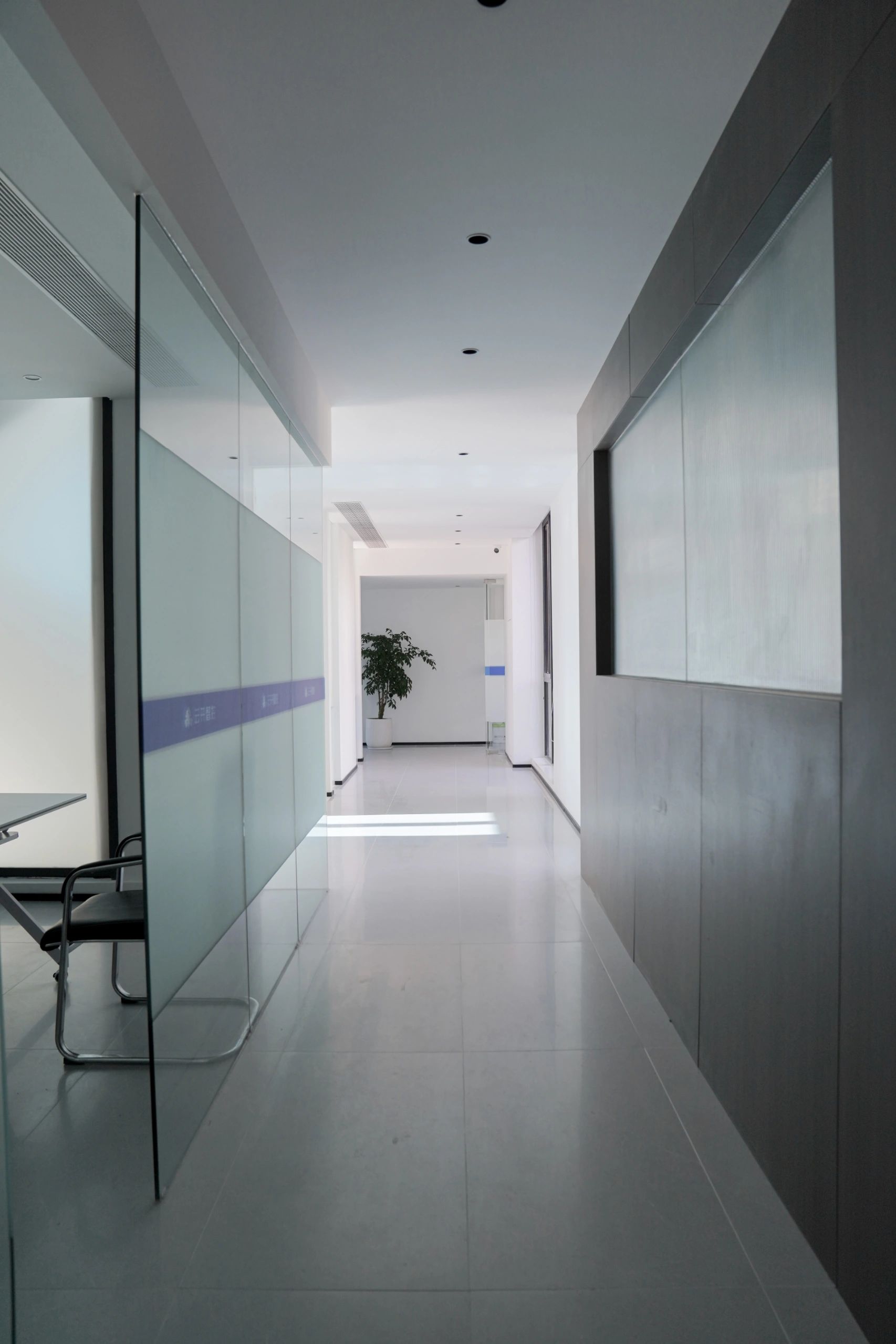 金属的冷硬与玻璃隔断的通透增加了空间扩张感让前台区域不仅是接待处也成为引导视觉探索的焦点