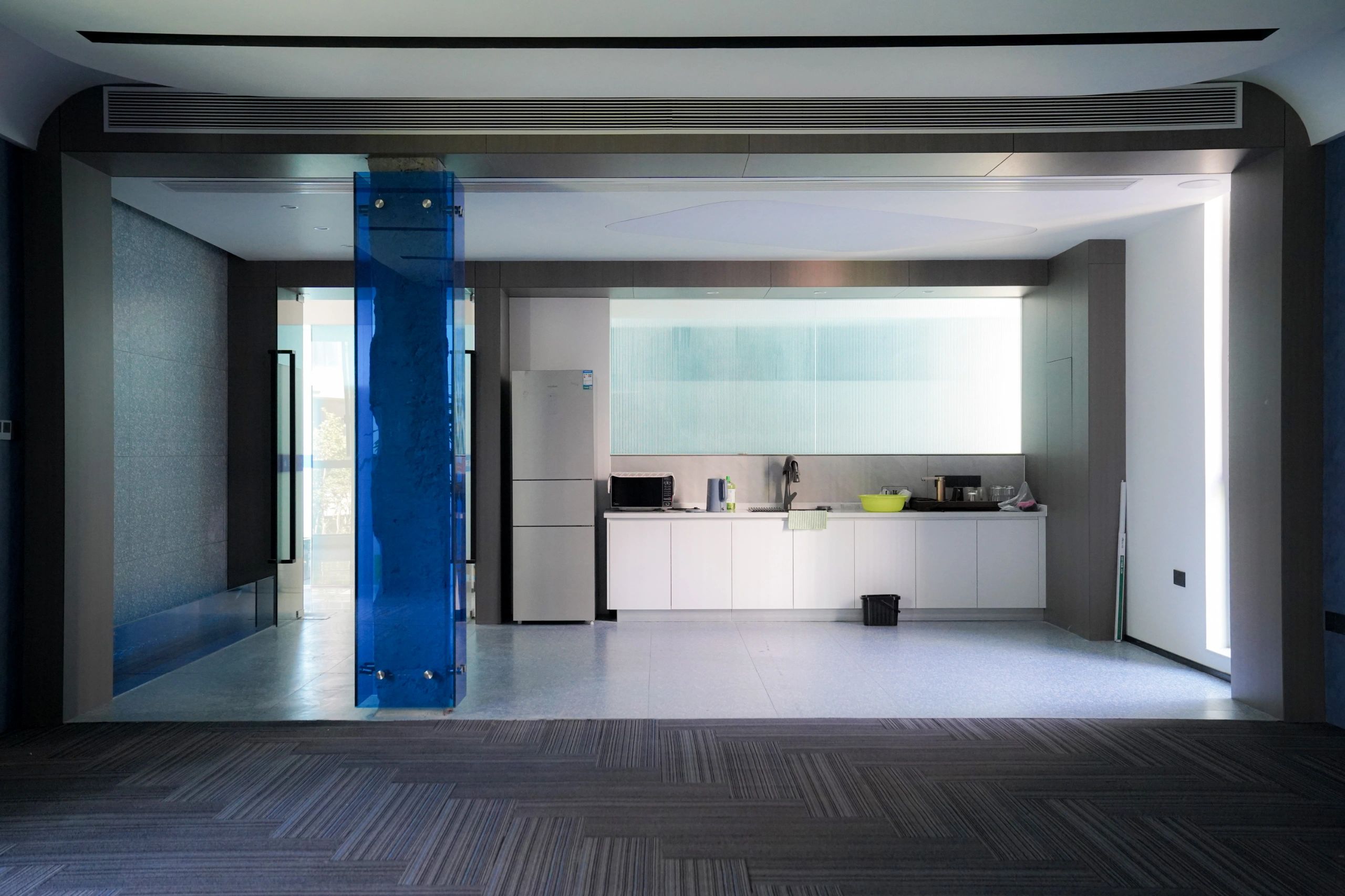 玻璃隔断既保证了空间的透明度也模糊了内外界限仿佛是星球间的轻盈屏障