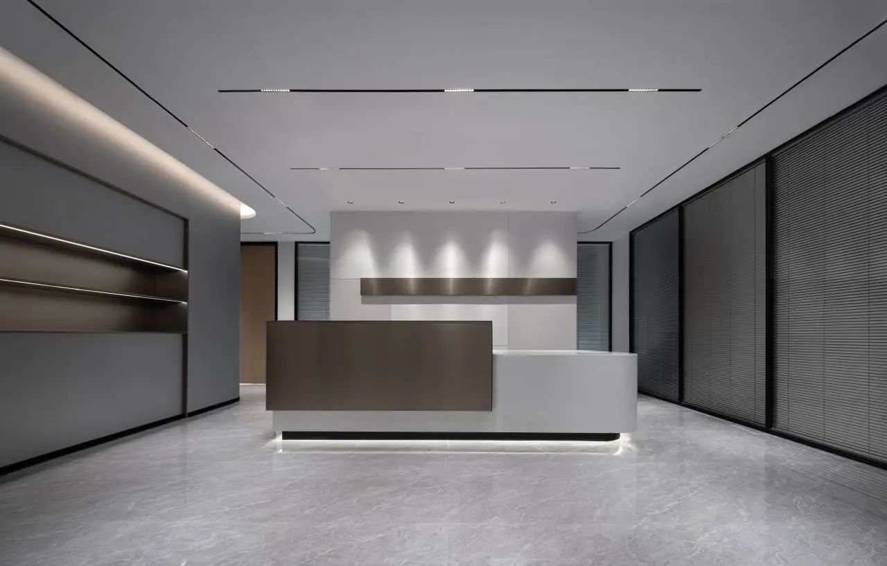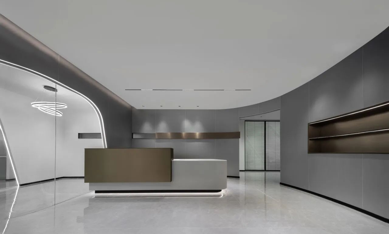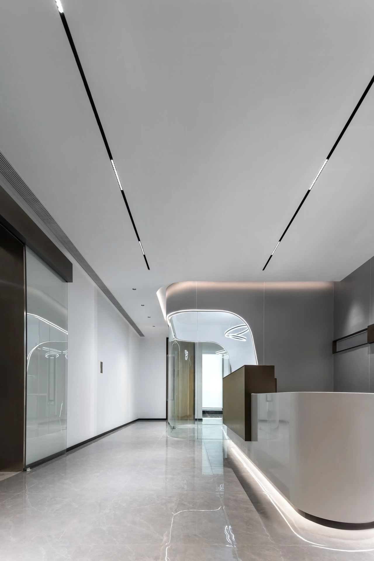空间设计经过精心雕琢将星际的概念巧妙融入现代办公大面积应用的灰白色调大理石以其天然独有的纹理营造出超越时间与空间的静谧感
