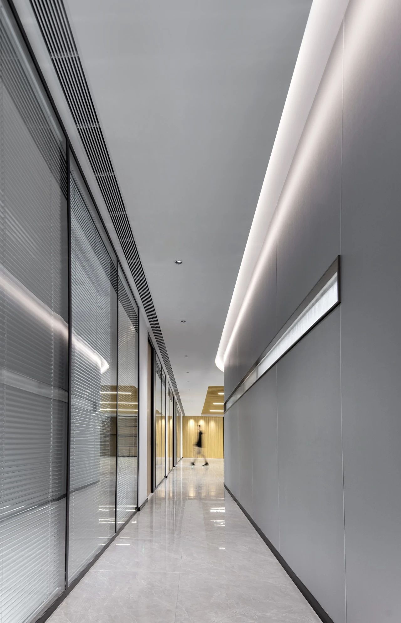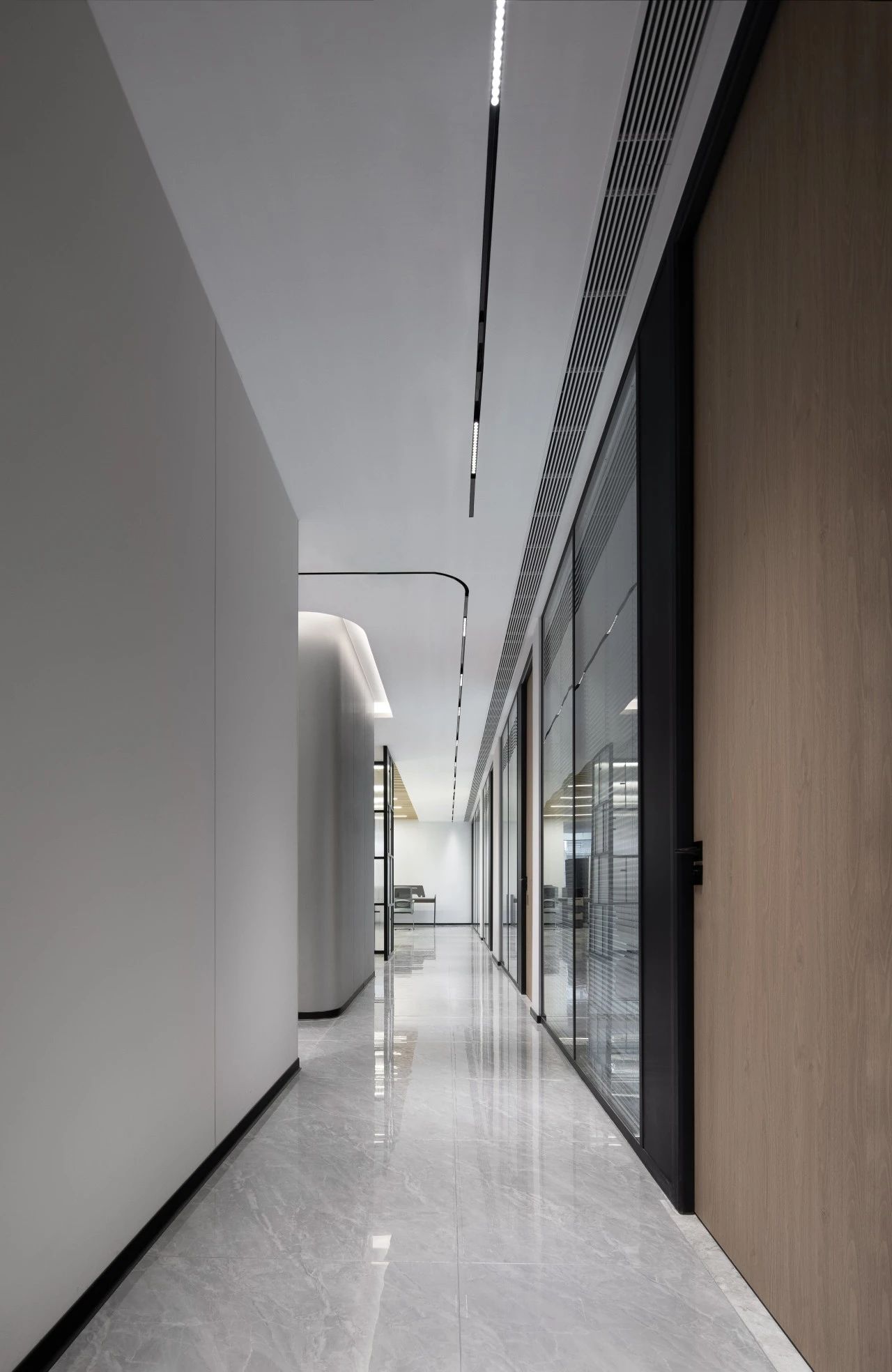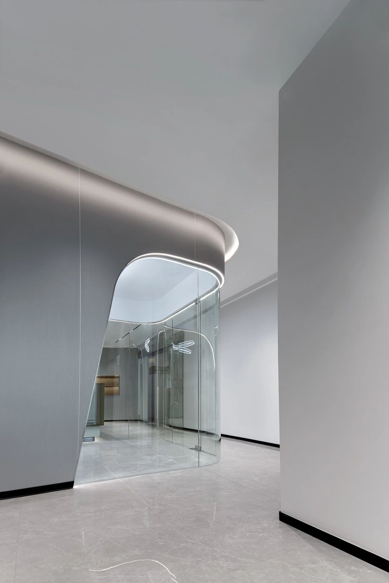 弧形设计的应用不仅打破了传统直线的严格规律也柔化了空间感让走廊动线更加流畅如同宇宙中自由曲折的星光轨迹整体设计通过巧妙的形态运用传达了专业而前瞻的设计理念