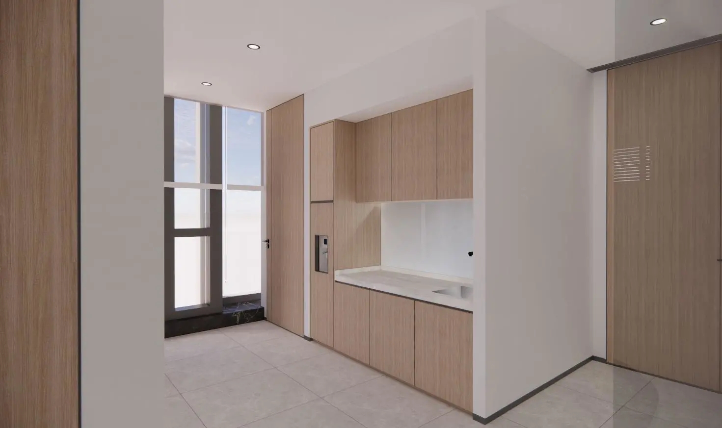 公司总裁的私人翼楼与整体设计理念保持一致,具有大型木盒、金属表达和石材饰面。私人翼楼提供专属办公和休闲设施,包括健身房和餐厅。它还容纳了总统的私人卧室和浴室,以及较小的私人工作区,次级接待休息室和精致的木材包裹的定制细木工茶室。目的是创造一个舒适和功能齐全的环境,既能容纳工作,又有家的感觉。