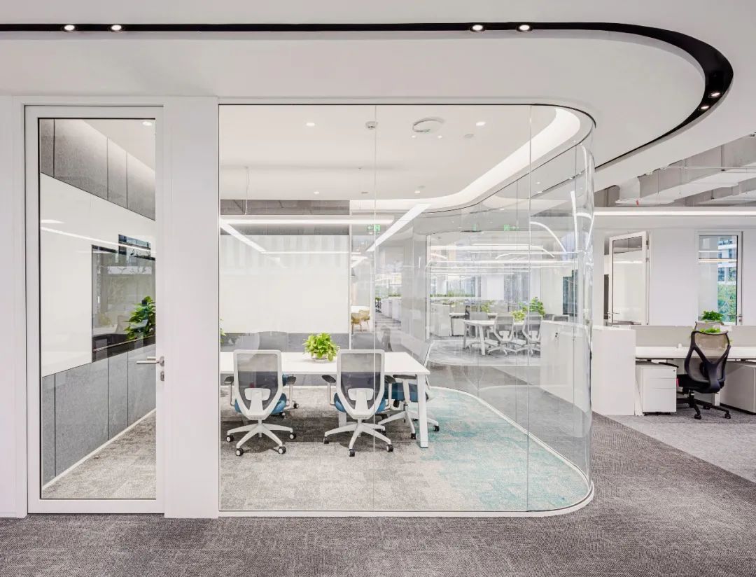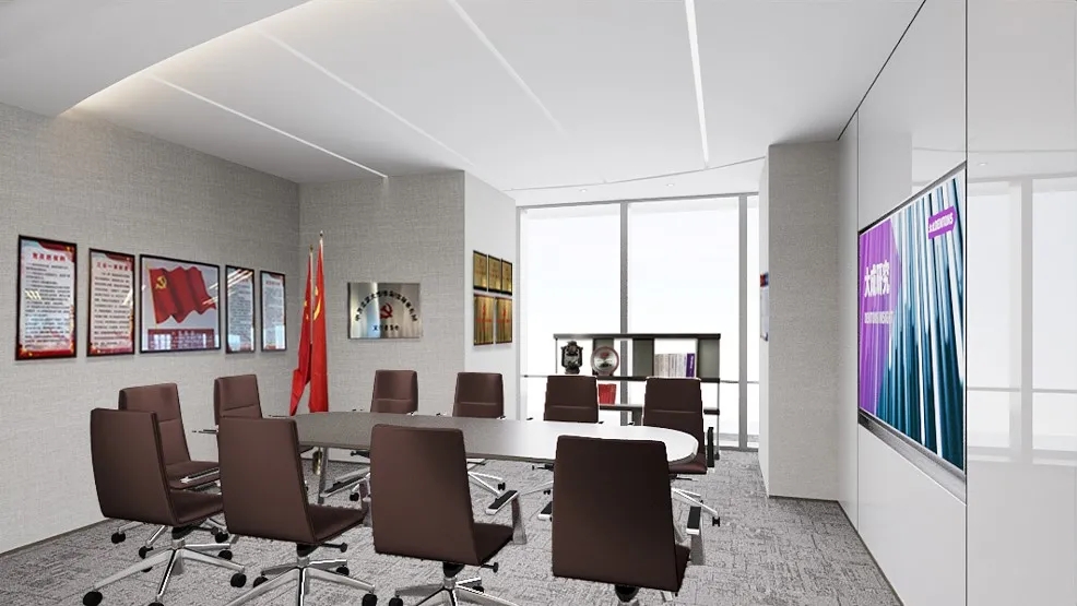 在主要的会议空间功能上,设计团队还延展了更灵活实用的会议空间。具有私密性的商务型洽谈室,十分适合人数不多且快速响应的会议和洽谈安排。同时也设计了高配置的党建室,方便日常党建活动和会议功能。