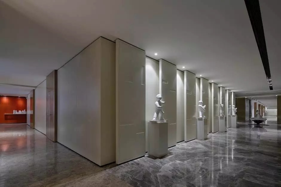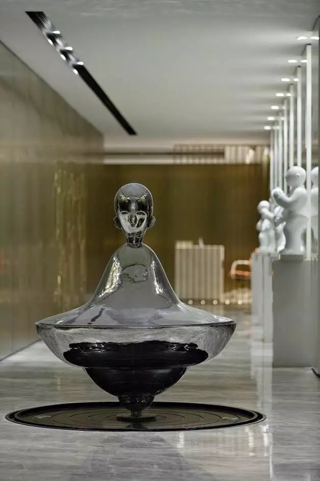 走廊处的八个白色小雕塑,憨态可掬,取自陶瓷艺术家谢艾格的作品“太极S”系列。太极一词在中国古代文言文中的含义是“太空的中心”。