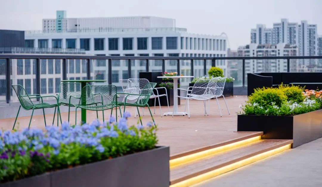“Blue Sky Coming”,蔚来已来,是对美好未来和清朗天空的愿景。办公空间是理性的,对于那些视灵感为生命的创意人士而言,这里需要理性的工作,亦要有愉悦的生活,伴随着绿色的介入,一个静谧而舒适的人性化工作与社交场景徐徐展开。绿色生态以无声的诗意不断重塑着整个世界,“赏一朵花,认一棵树”,潜移默化中拉近与自然的距离。
