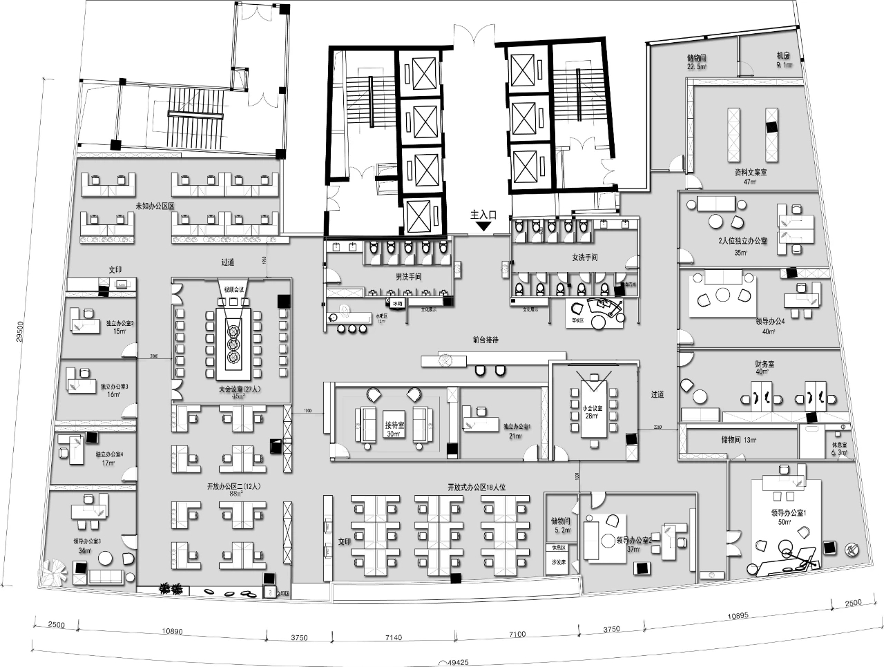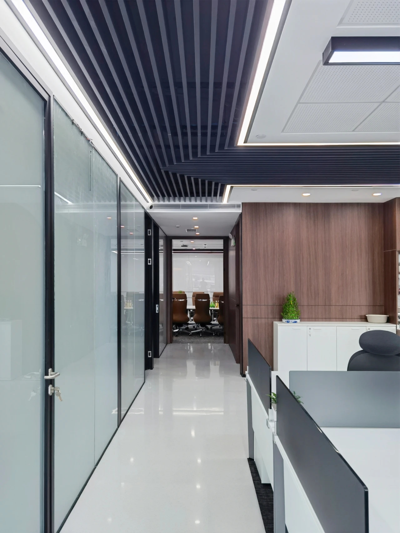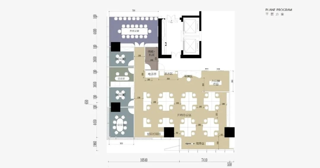 云沐资本作为一个投资公司,在平面布局上更注重商务属性,空间里分布了大大小小四个不同的会议室和洽谈空间,为商务洽谈提供了充足的私密空间。