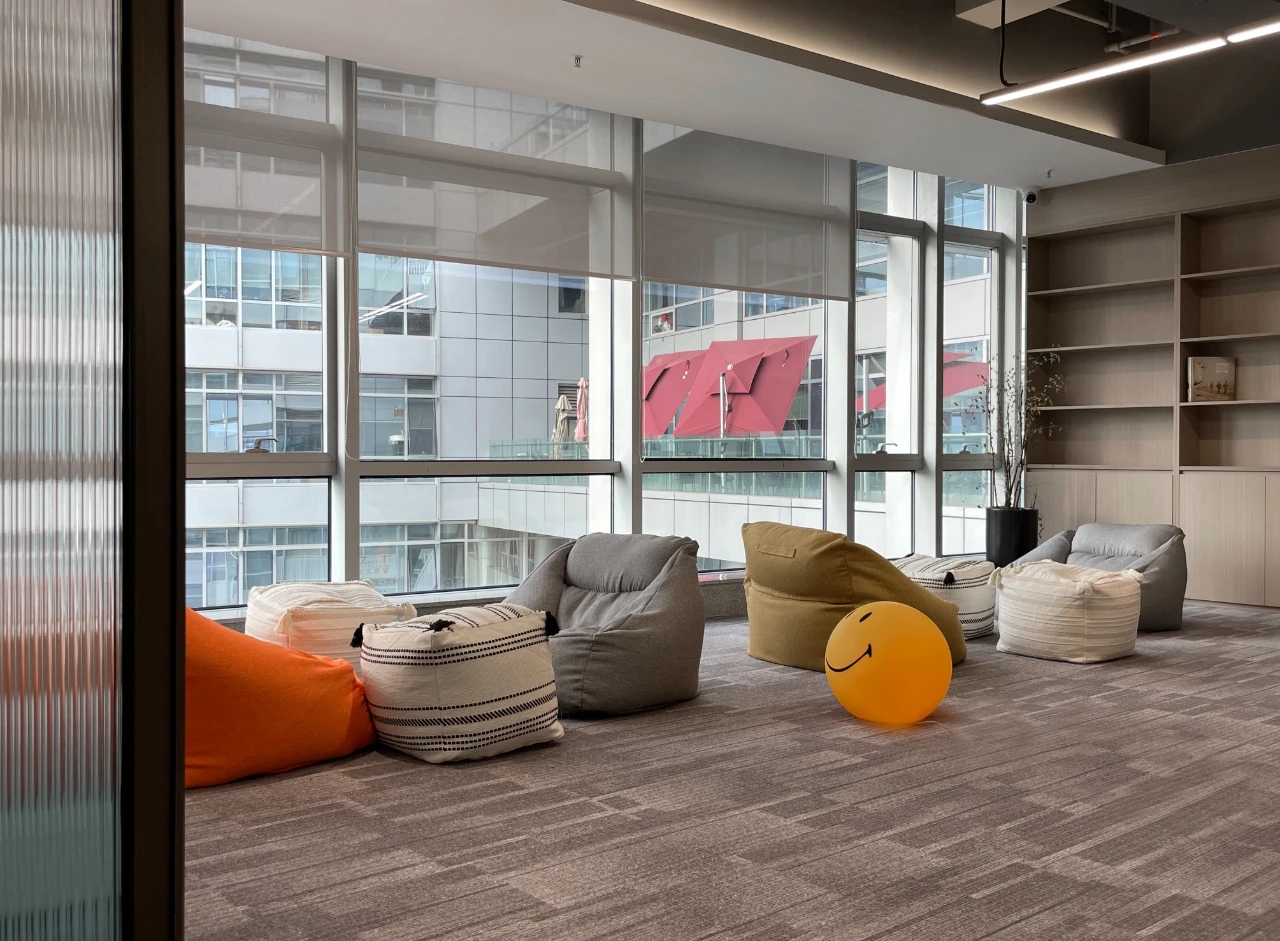 独立的小会议室,这里是休息区、等待区,也是洽谈区,一些简单的商务往来、或新人面试,都可以在这片区域完成。