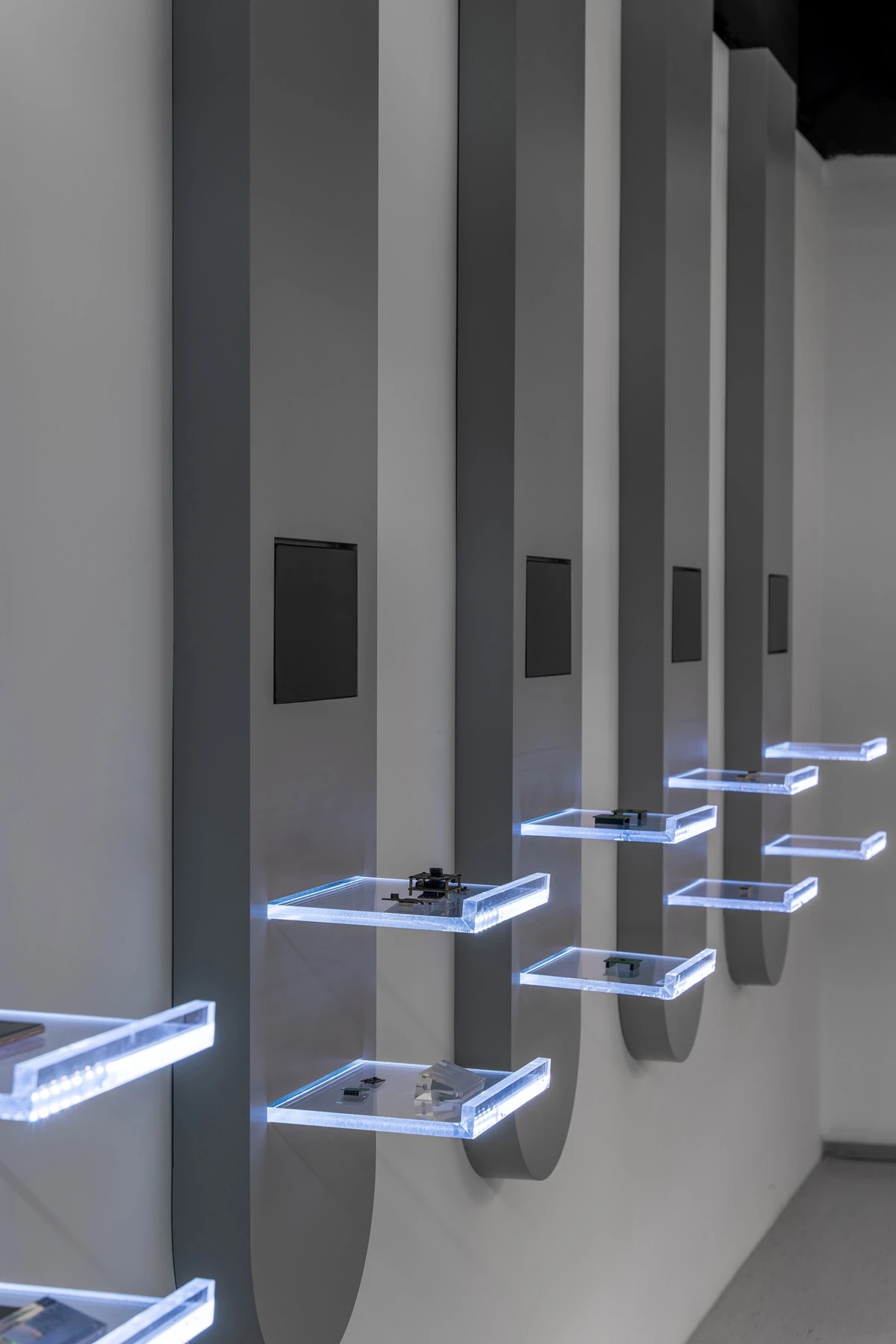 展厅的墙面形式均能很容易地更替展示内容,这样便捷式展陈设计能更好匹配飞速发展的小型科技企业。