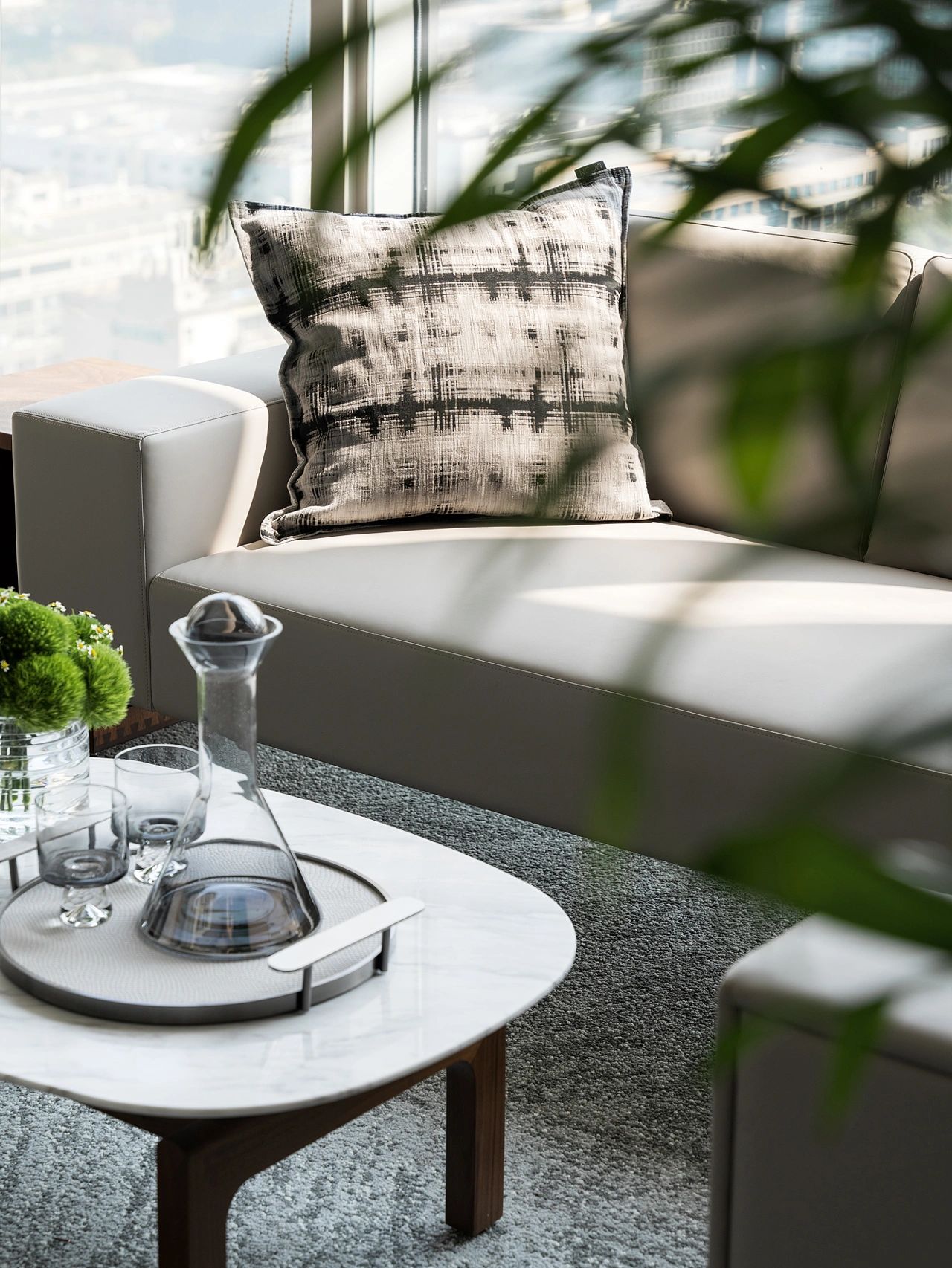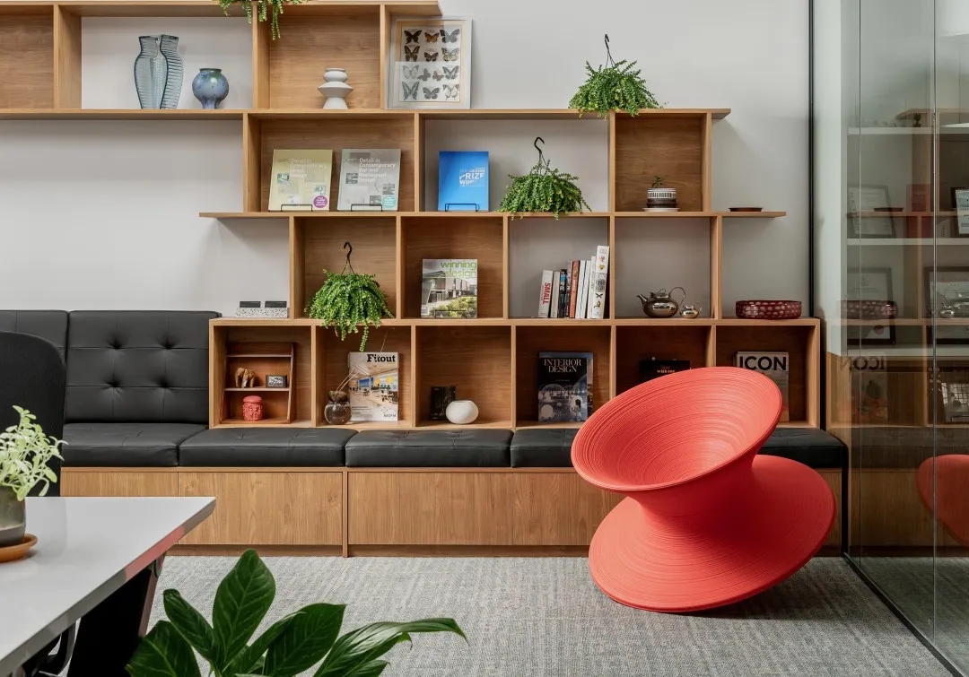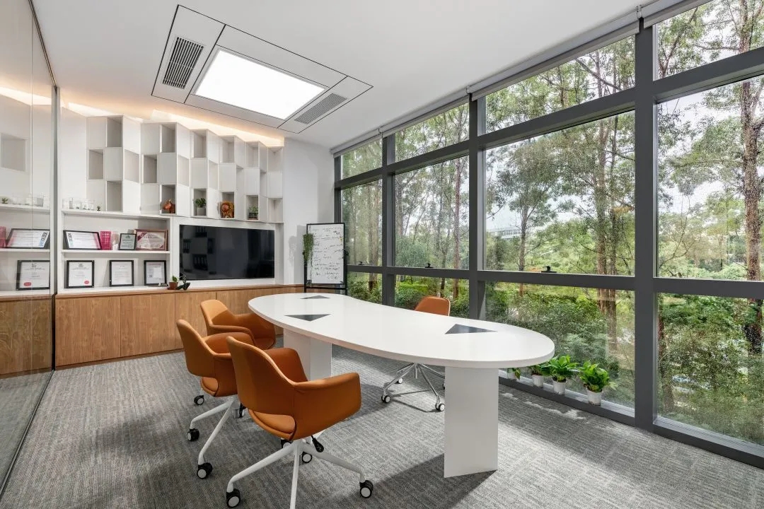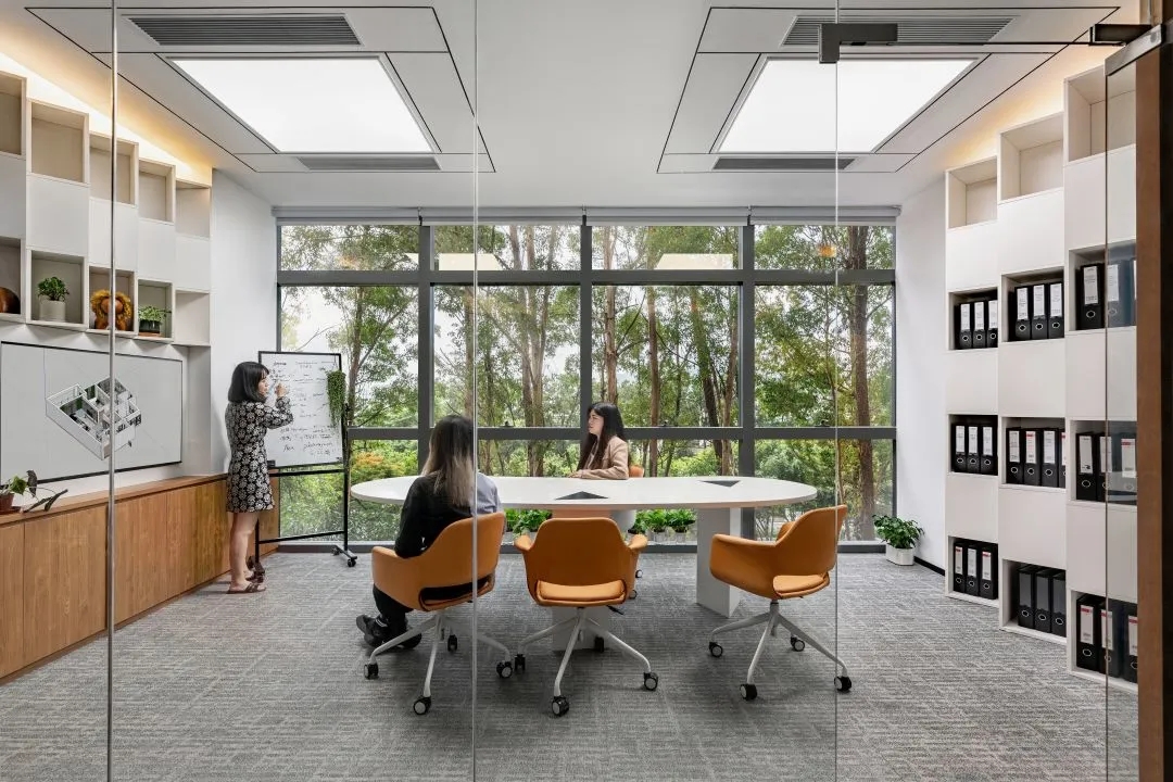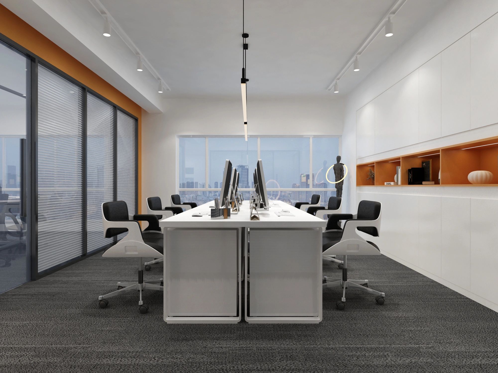 白色作为主色调,为空间奠定了基调;橙色的点缀使得空间更加生动、有趣;而绿色植物的引入则让空间更加自然、舒适。这种色彩构成不仅符合现代审美趋势,也充分体现了品牌形象和文化内涵。