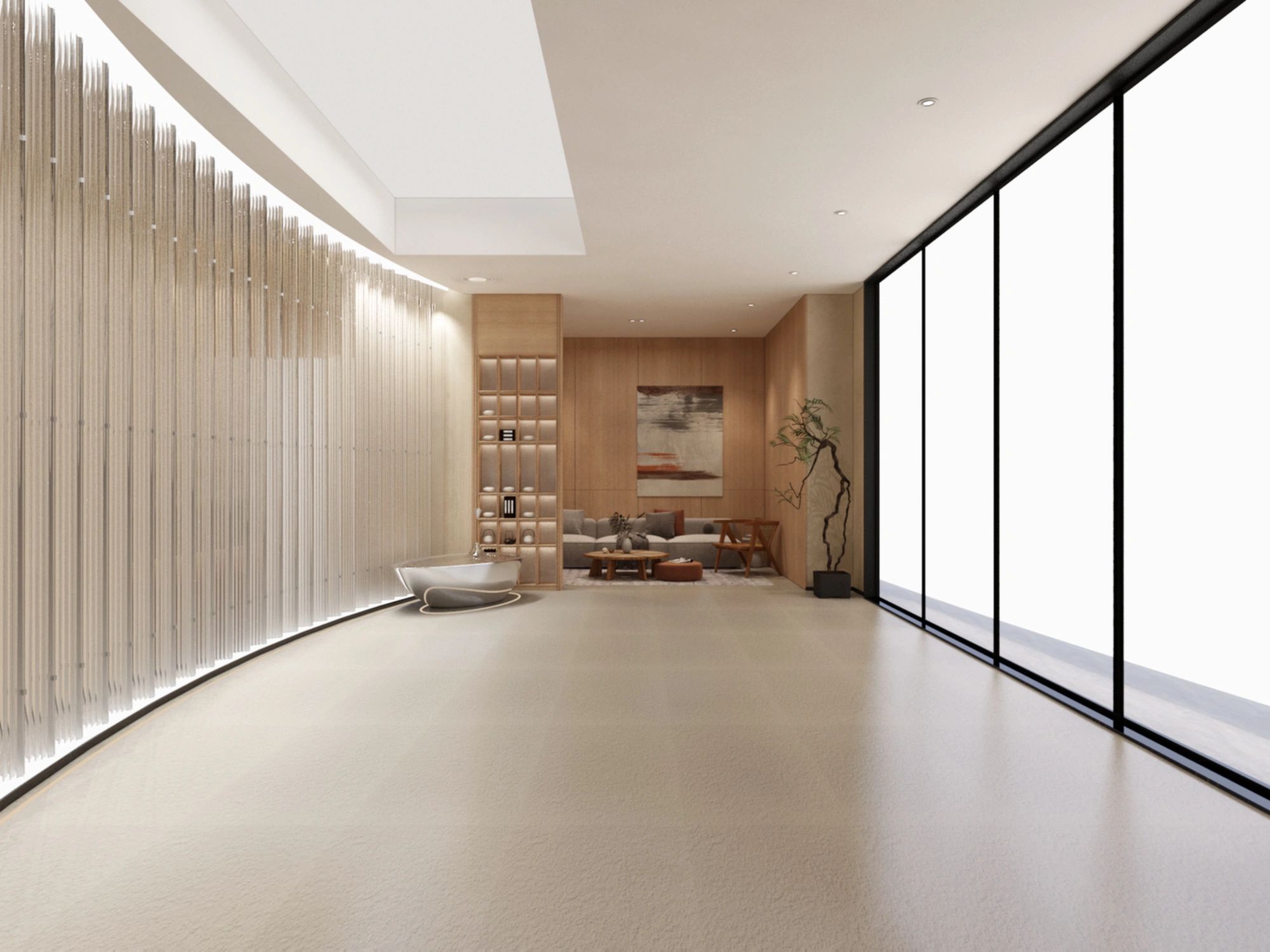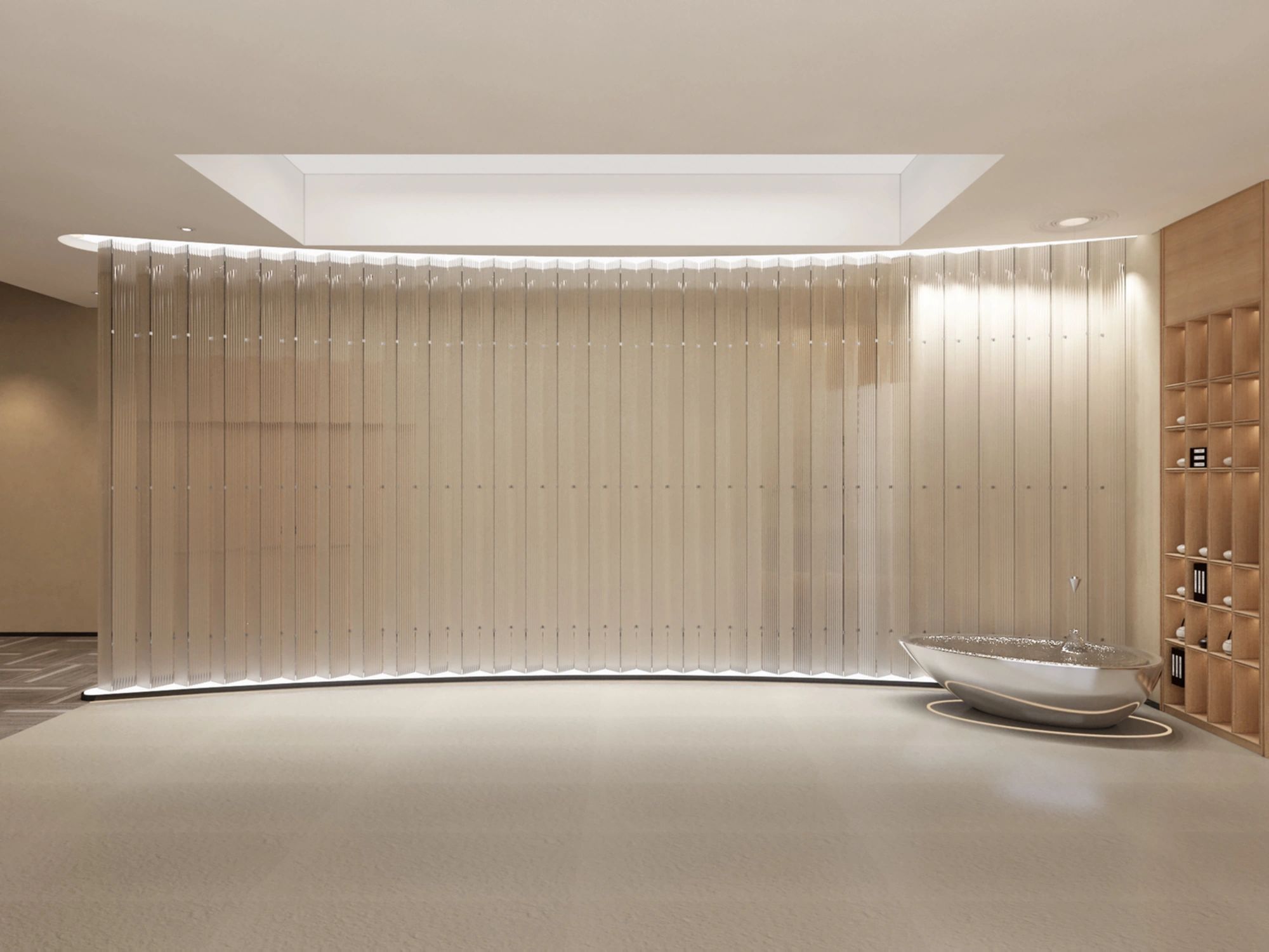 多功能核心区域由接待前台、会客大厅和商务会议室组成,用玻璃隔断,最大限度地引入日光,使空间开阔敞亮。这里可完成日常接待,举行5-25人的沙龙、培训、会务,可也满足相对开放式的洽谈需要。