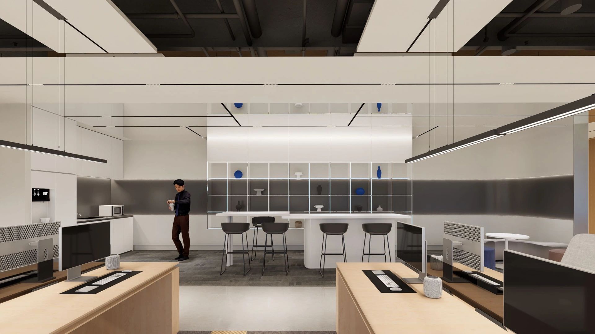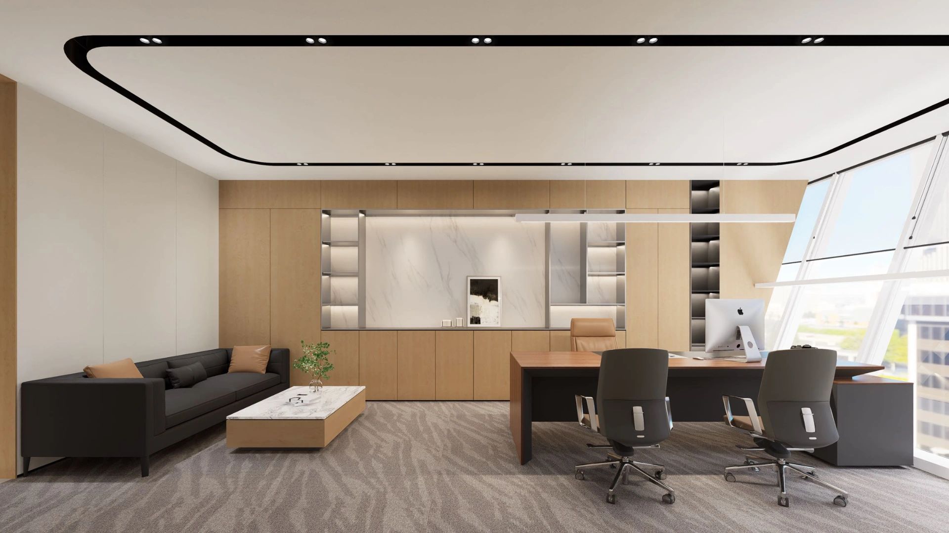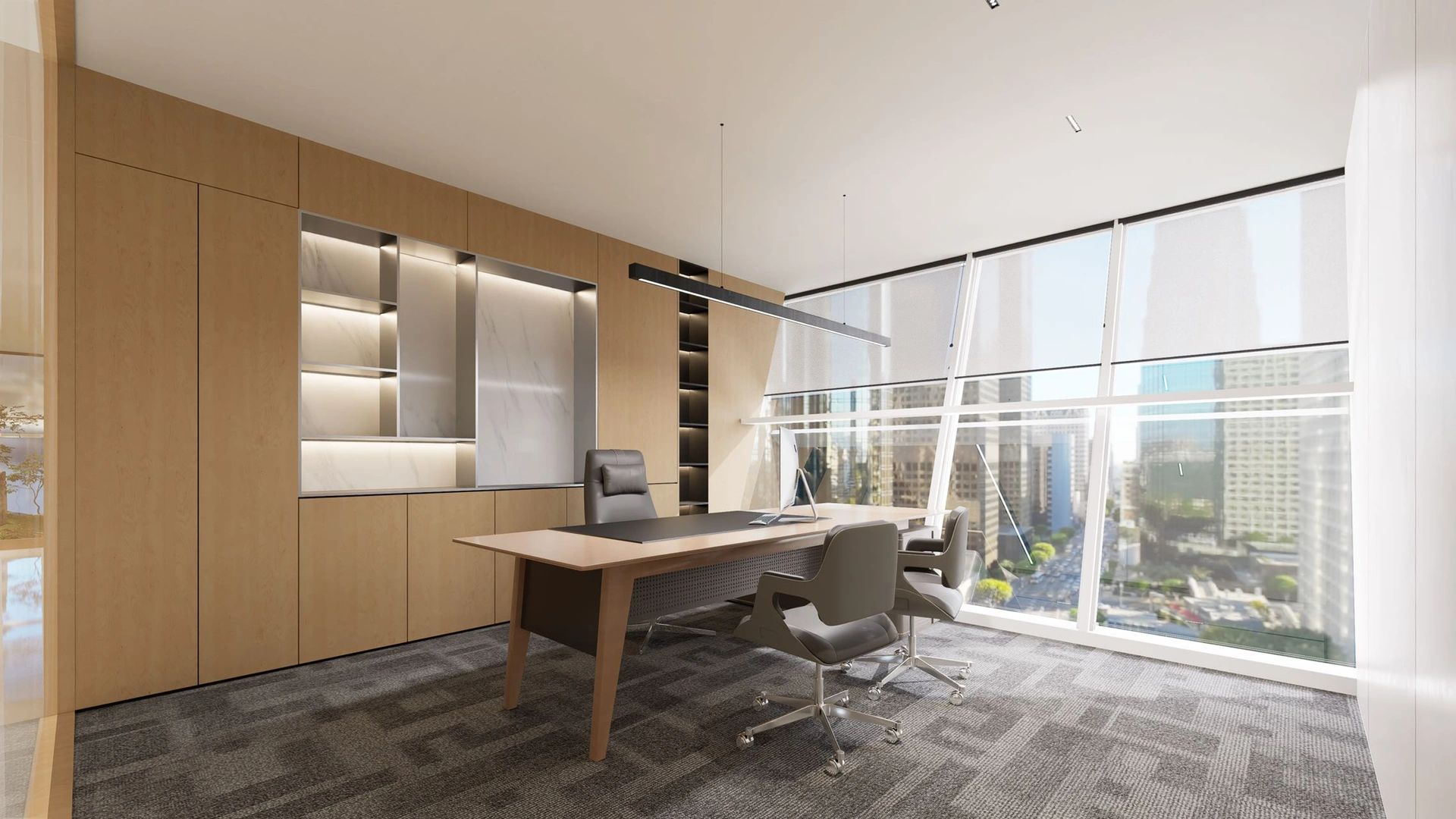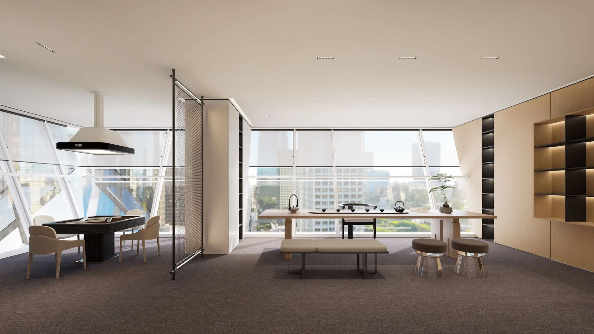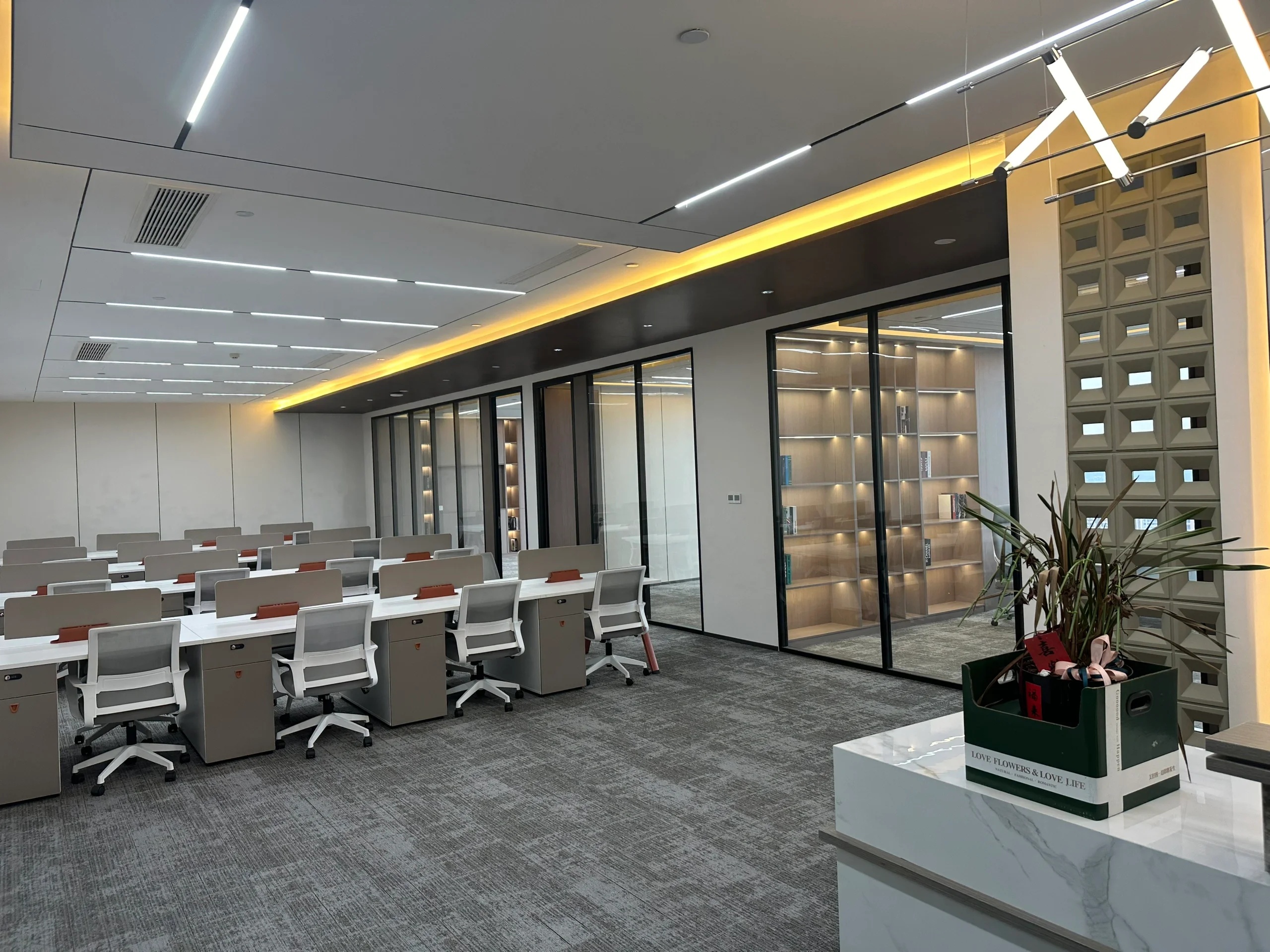 Gurner艺术品经济公司希望创建一个富有創意和張力的辦公空间,体现其企业文化的调性和价值。设计方案采用金属网等非常规材料,作为隔断墙和家具,金属材料的冷峻与木饰面的温润、水泥的质朴形成强烈的反差,并设计暗黑的室内灯光,最终营造了一种性格独特但又和谐的空间氛围。……采用开放灵活的平面布局,创造大小不等的隔断空间,既有完全独立、封闭的区域,也有相对分隔、半封闭的区域,员工可以根据客户和项目实际需求,选择不同的工作空间。……在每一个空间以及空间之间的联结节点,通过艺术品的展示,创造并凸显强烈的艺术气质。