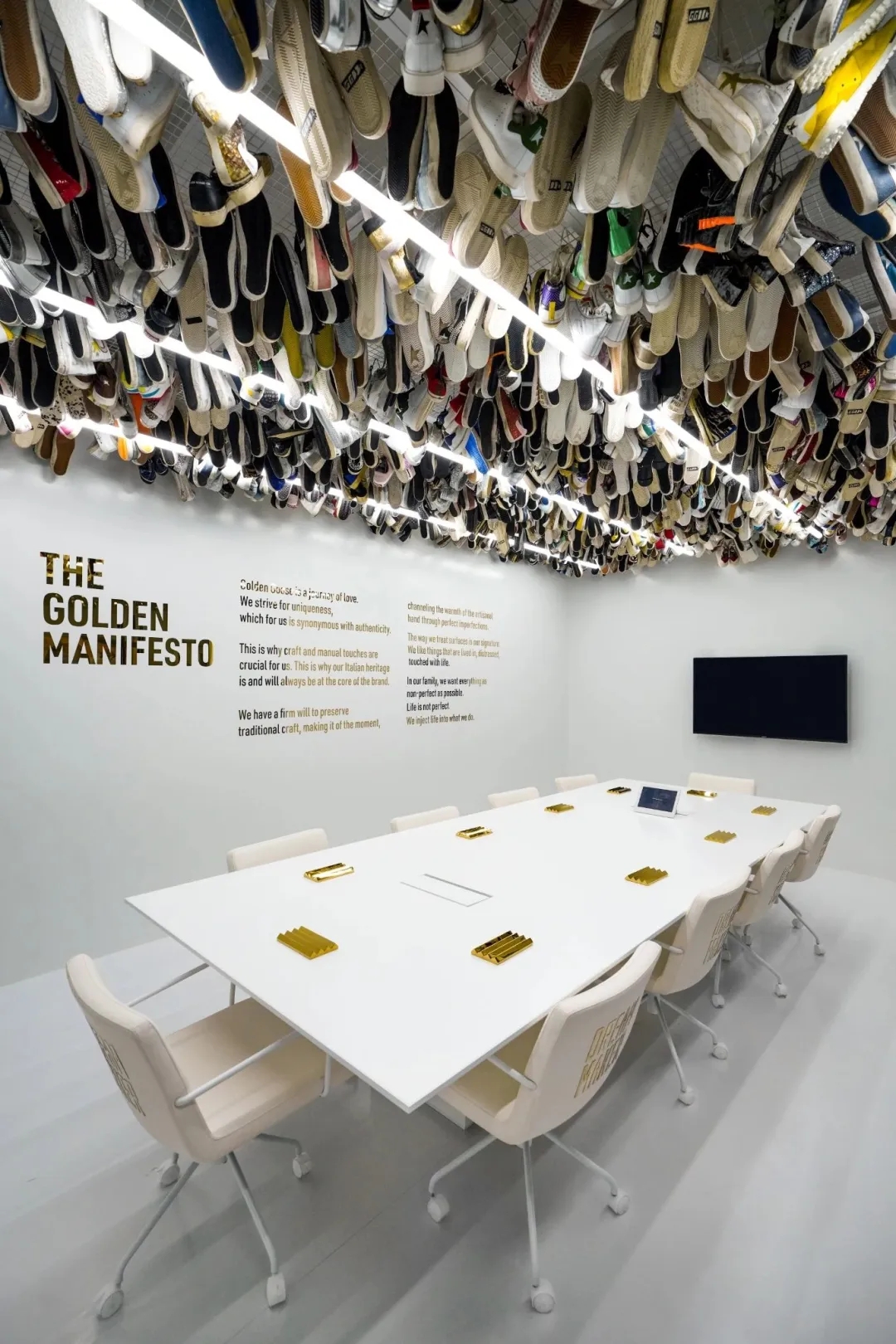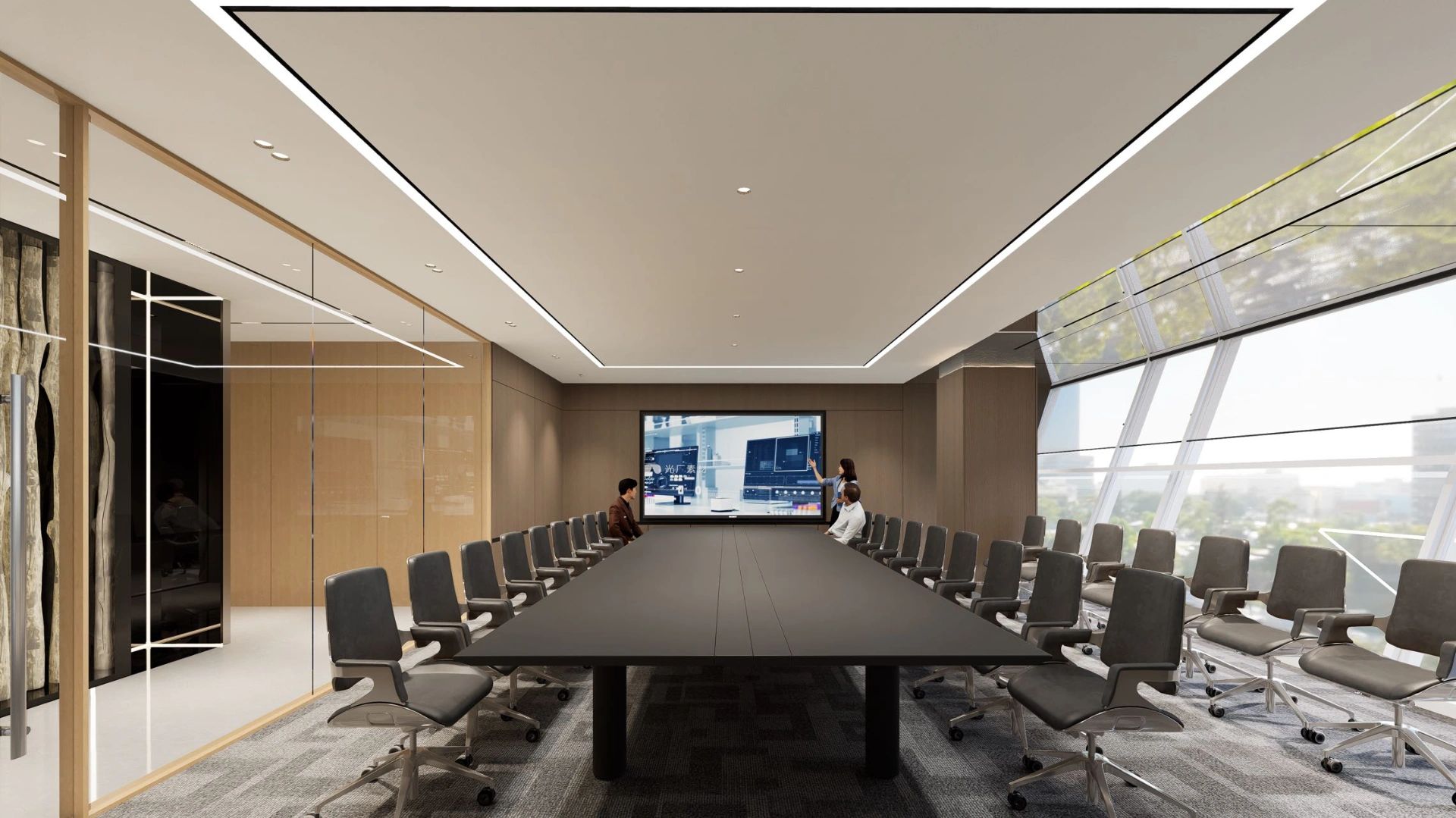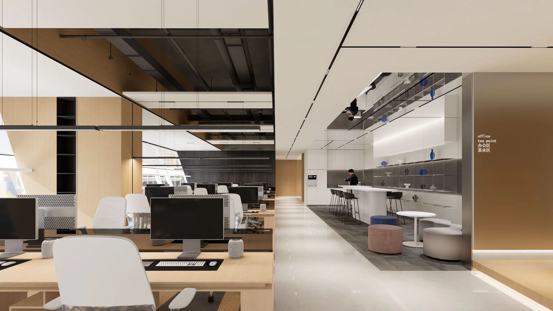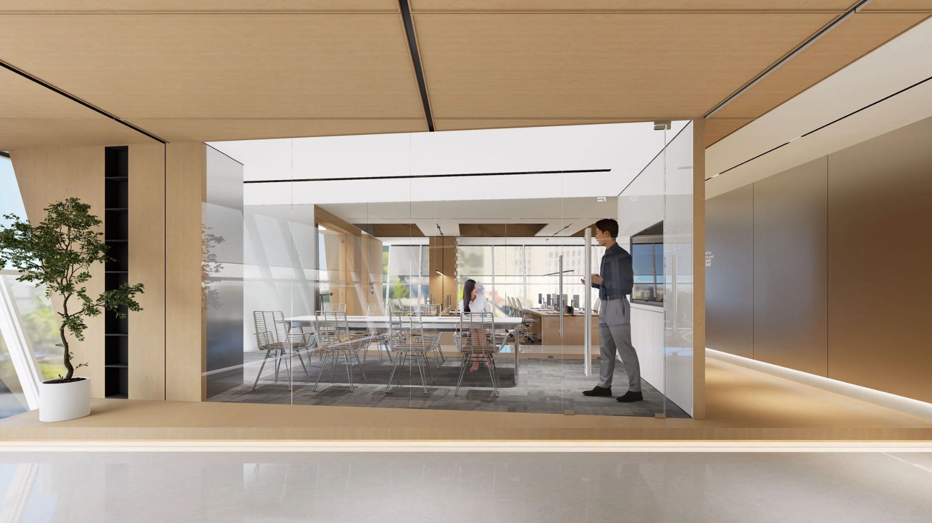 Gurner艺术品经济公司希望创建一个富有創意和張力的辦公空间,体现其企业文化的调性和价值。设计方案采用金属网等非常规材料,作为隔断墙和家具,金属材料的冷峻与木饰面的温润、水泥的质朴形成强烈的反差,并设计暗黑的室内灯光,最终营造了一种性格独特但又和谐的空间氛围。……采用开放灵活的平面布局,创造大小不等的隔断空间,既有完全独立、封闭的区域,也有相对分隔、半封闭的区域,员工可以根据客户和项目实际需求,选择不同的工作空间。……在每一个空间以及空间之间的联结节点,通过艺术品的展示,创造并凸显强烈的艺术气质。