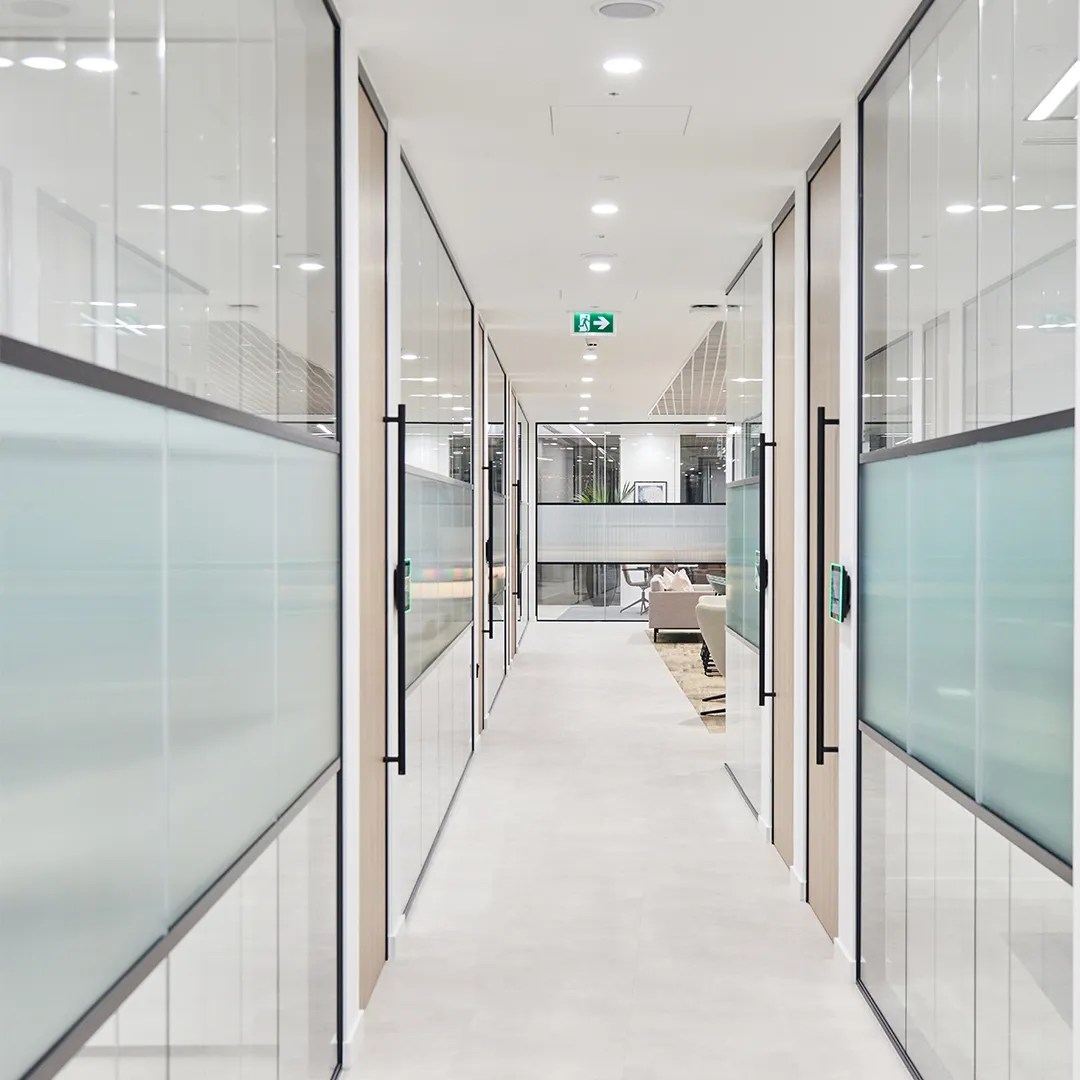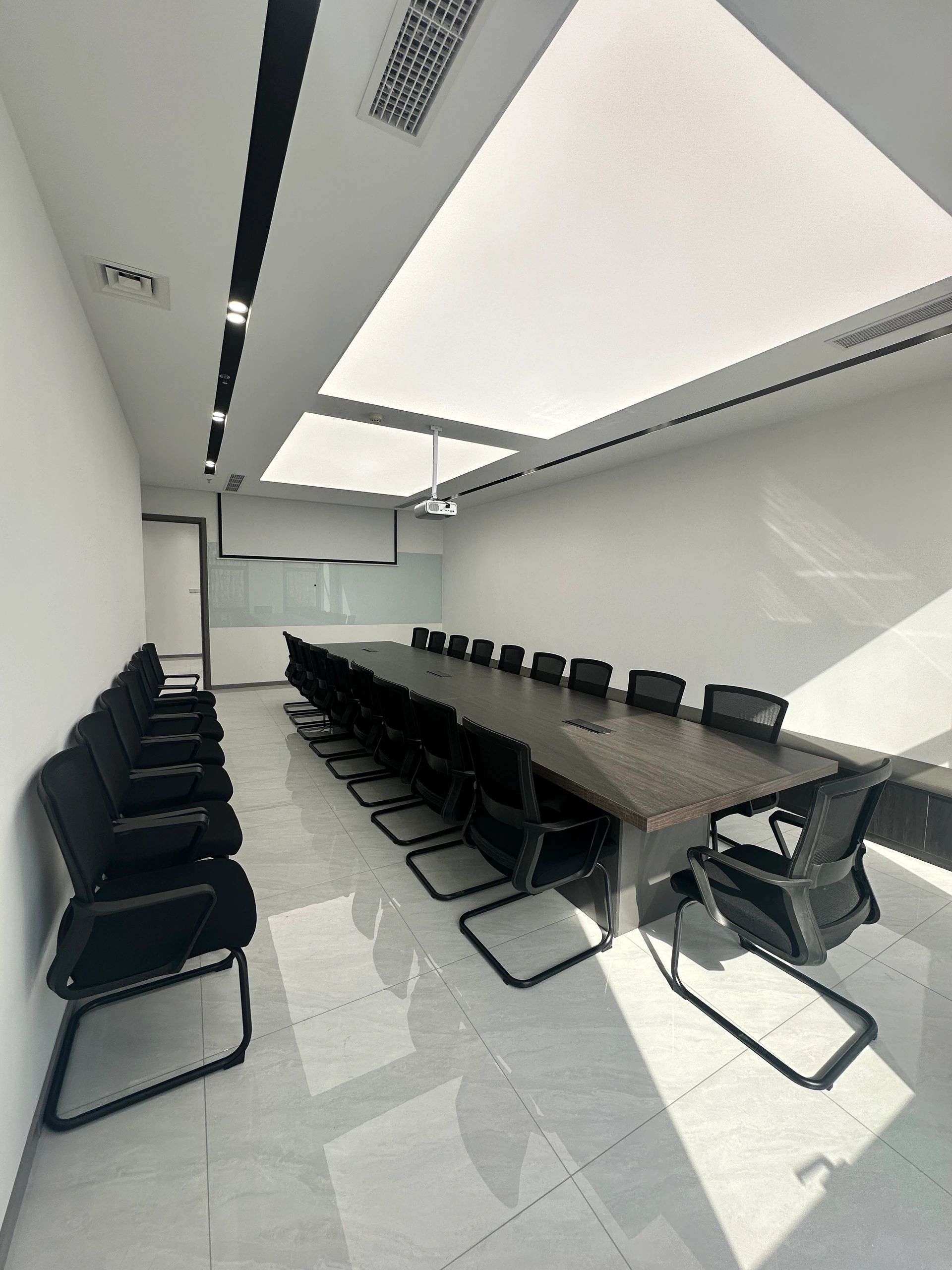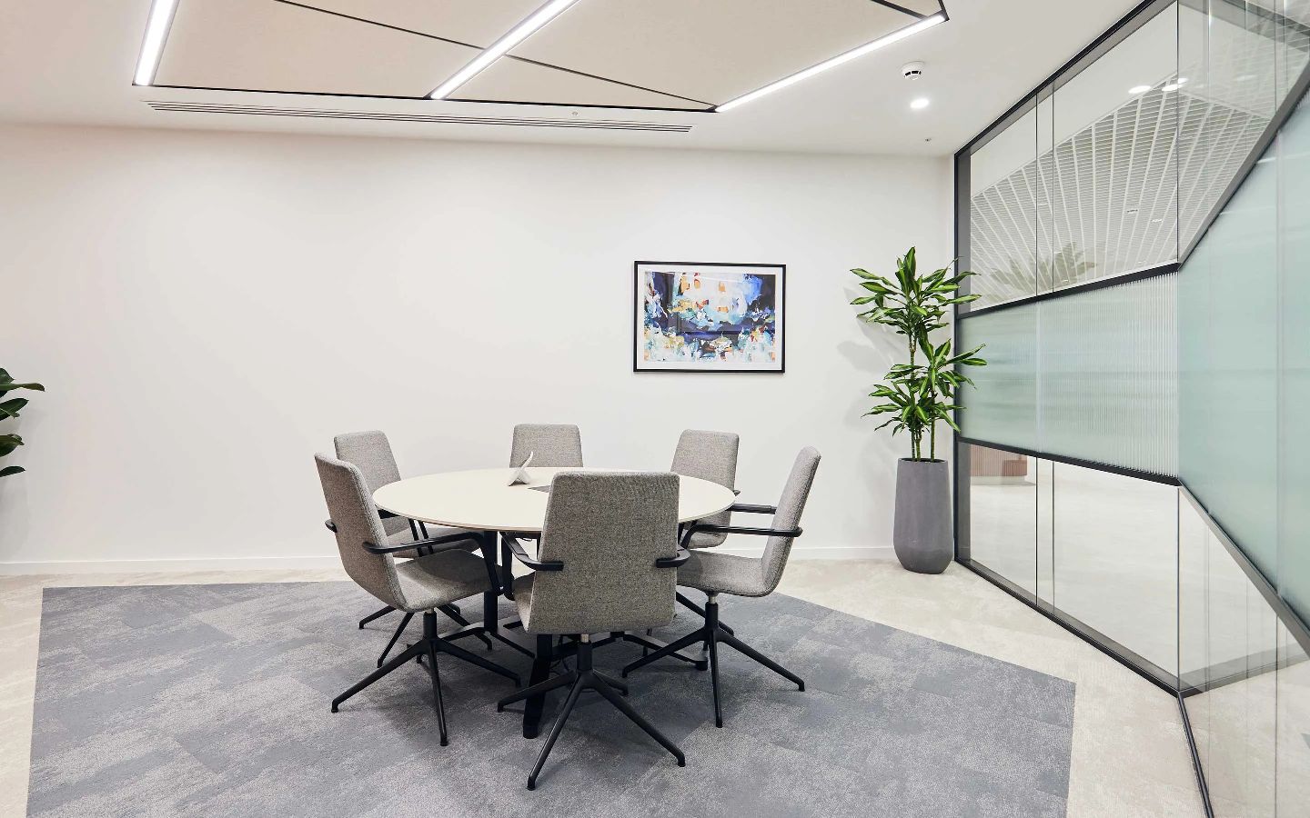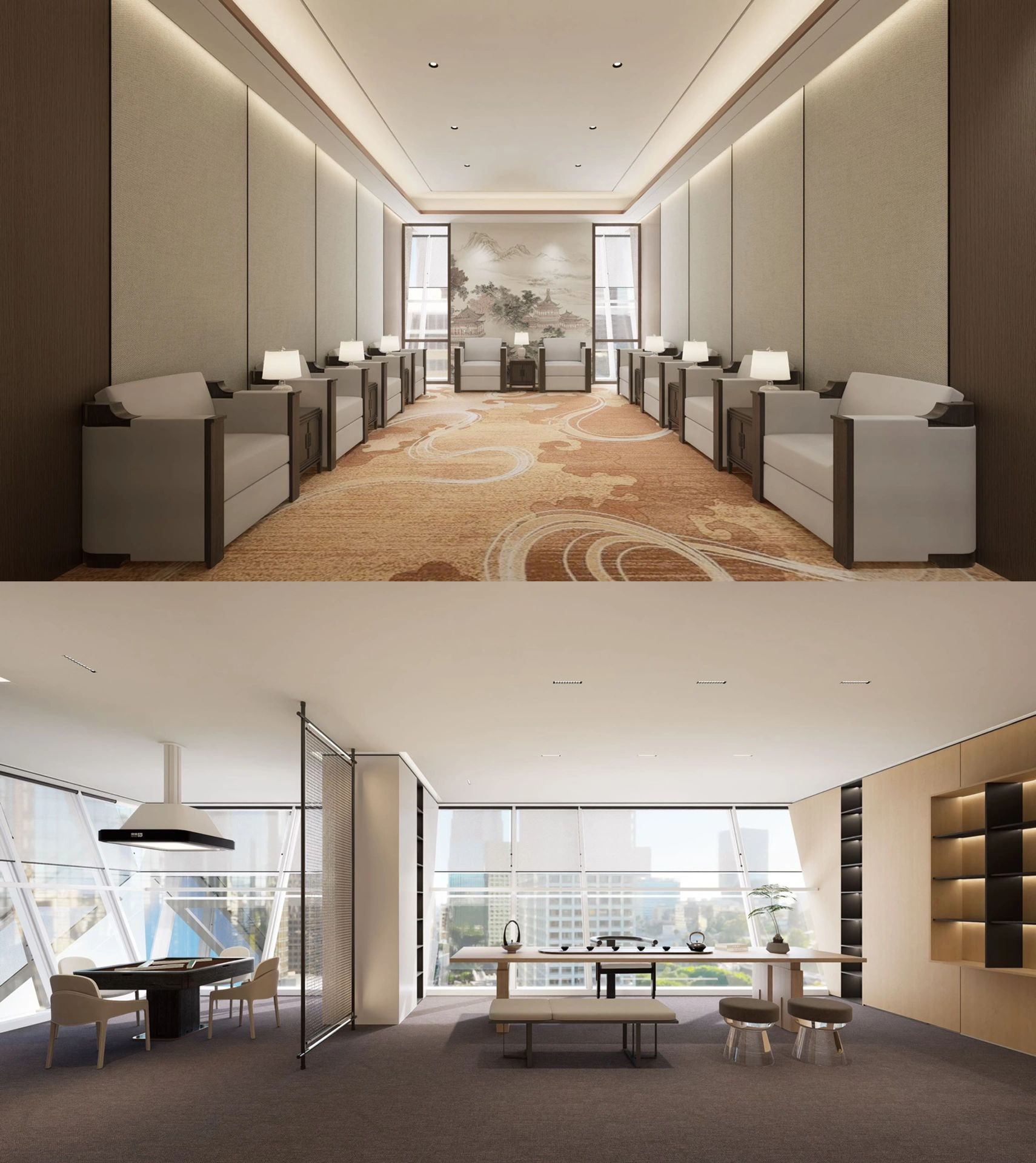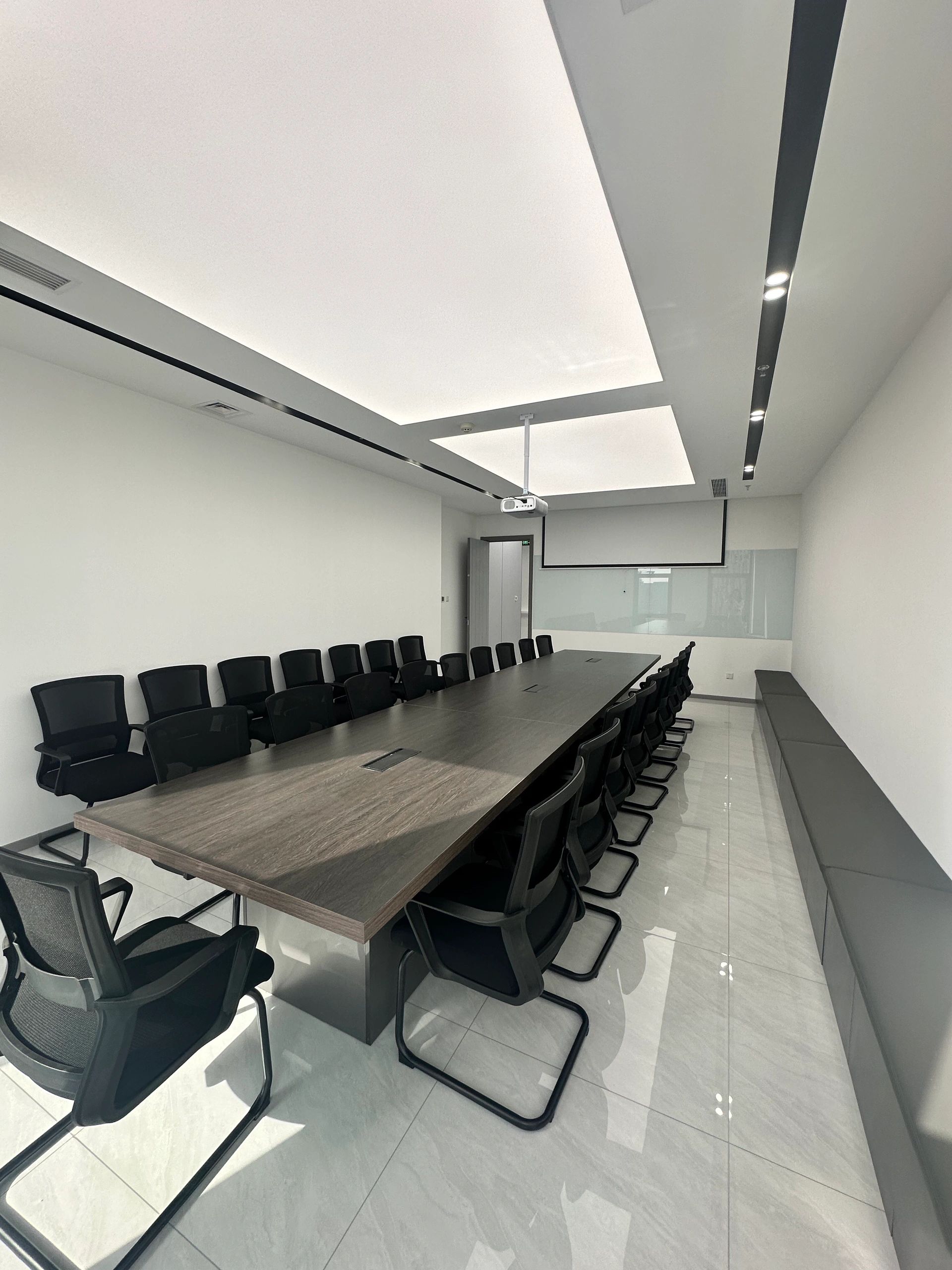 Gurner艺术品经济公司希望创建一个富有創意和張力的辦公空间,体现其企业文化的调性和价值。设计方案采用金属网等非常规材料,作为隔断墙和家具,金属材料的冷峻与木饰面的温润、水泥的质朴形成强烈的反差,并设计暗黑的室内灯光,最终营造了一种性格独特但又和谐的空间氛围。……采用开放灵活的平面布局,创造大小不等的隔断空间,既有完全独立、封闭的区域,也有相对分隔、半封闭的区域,员工可以根据客户和项目实际需求,选择不同的工作空间。……在每一个空间以及空间之间的联结节点,通过艺术品的展示,创造并凸显强烈的艺术气质。