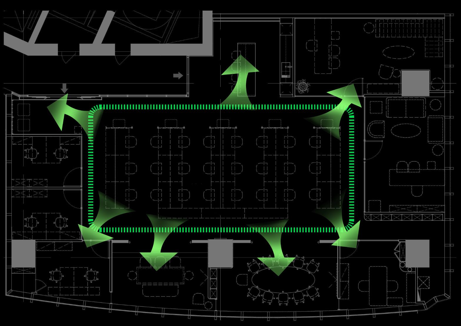 茶水区域的设置提供了一个额外的聚集点,方便员工们在工作间隙或休息时间聚集交流,或短暂休憩。同时,该区域增加了空间的灵活性和多样性,为整个开放工作区增添了一份生机和活力,呈现了别样的层次感。