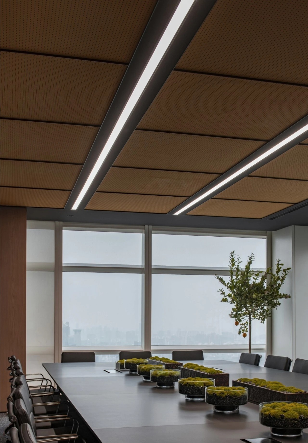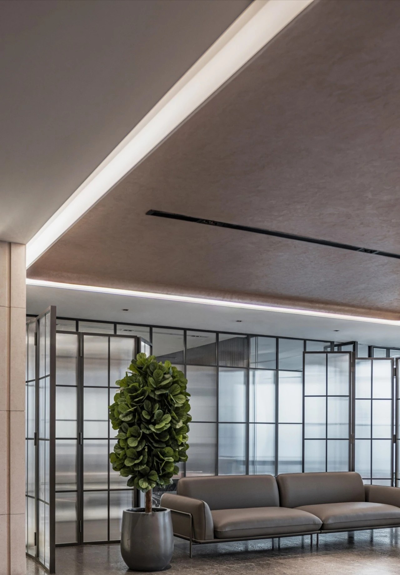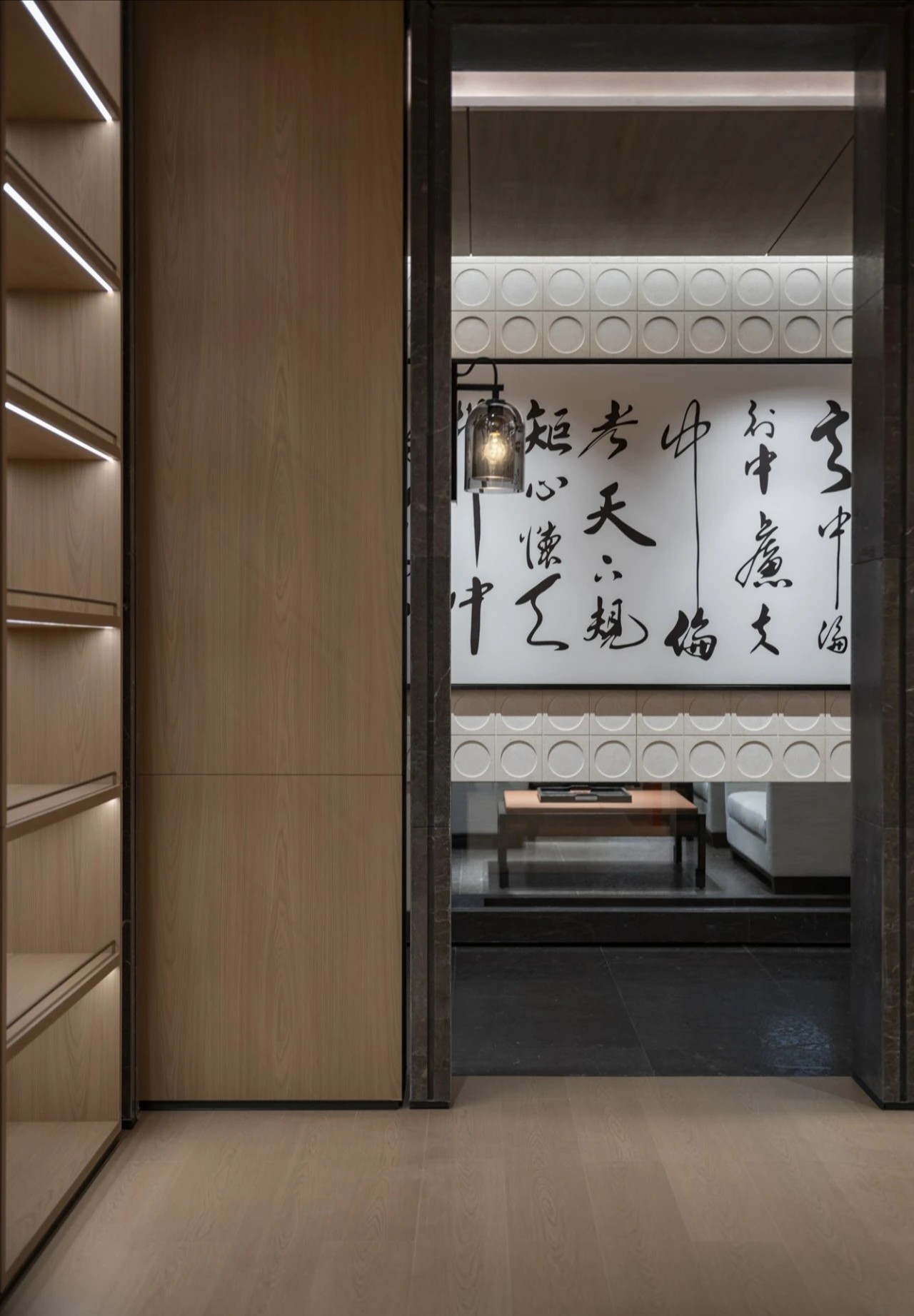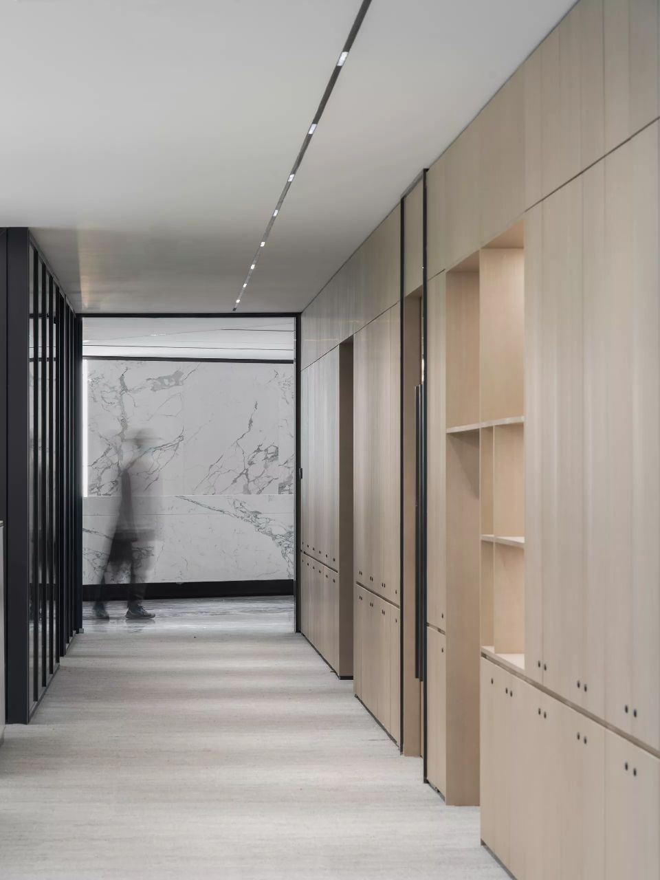 通过有价值的艺术品陈列有效提升了设计品味和空间档次。让空间更有温度,即使是严谨的法律业务也可以闪耀人性的光辉。落地玻璃让都市景色成为不断变化的空间装饰。