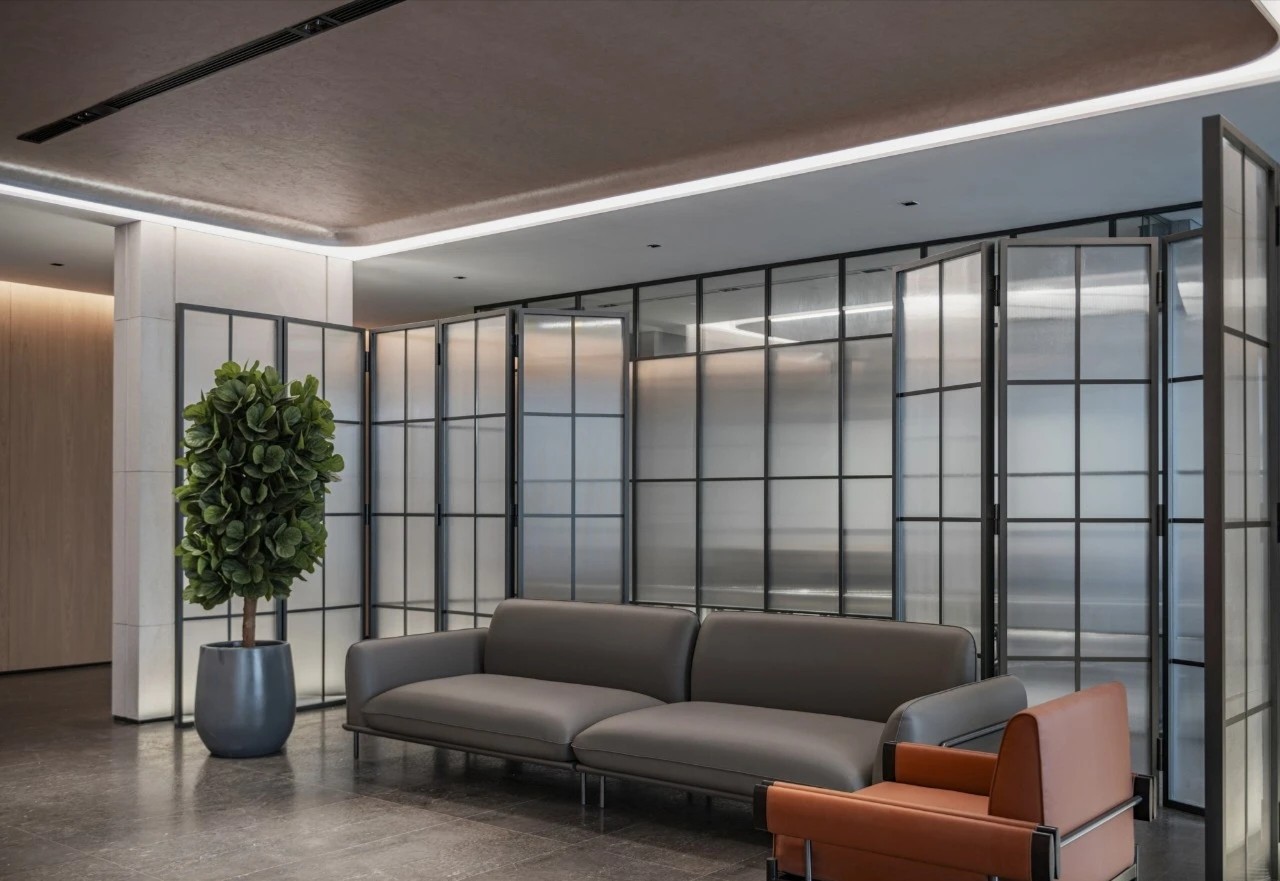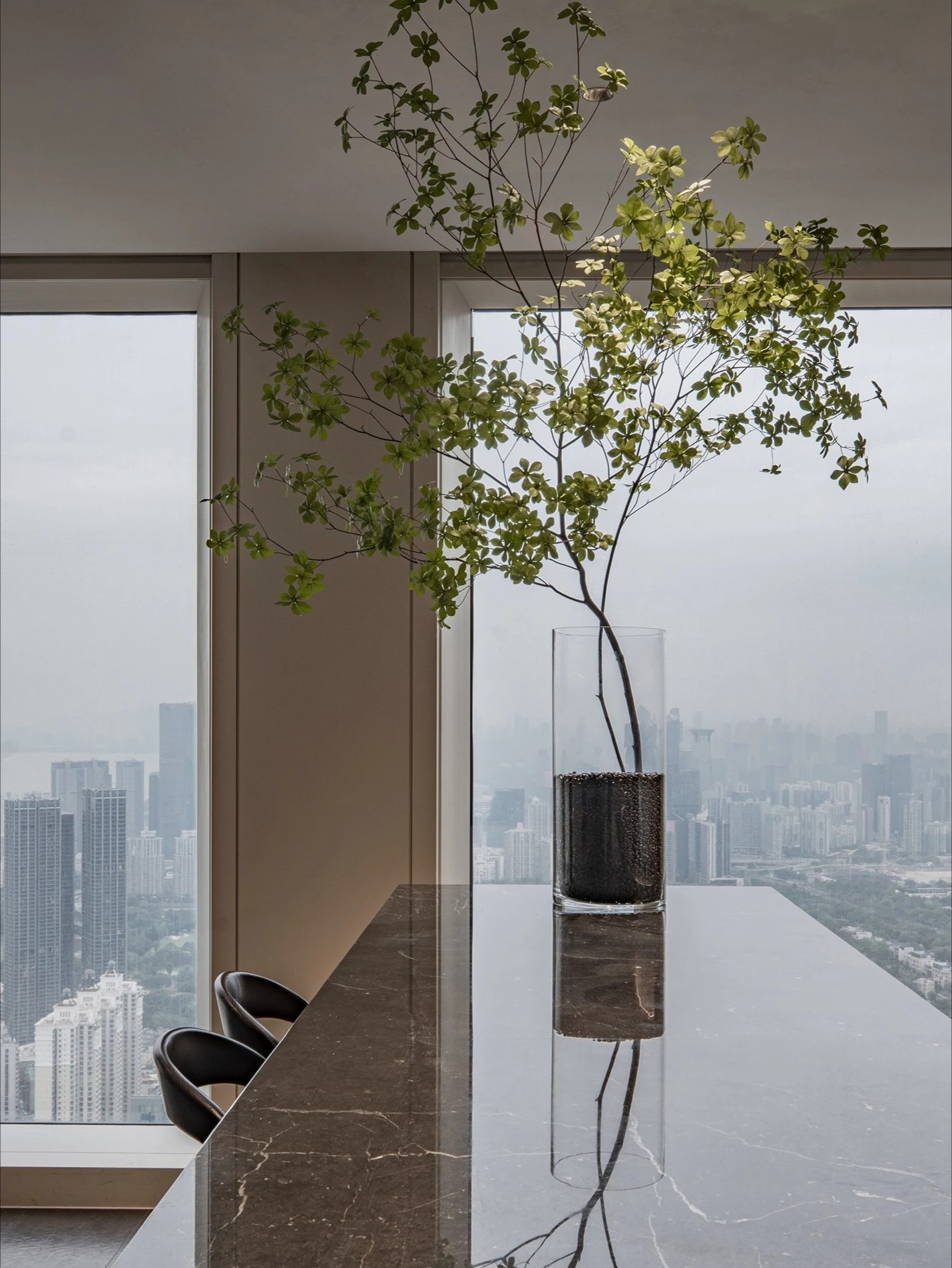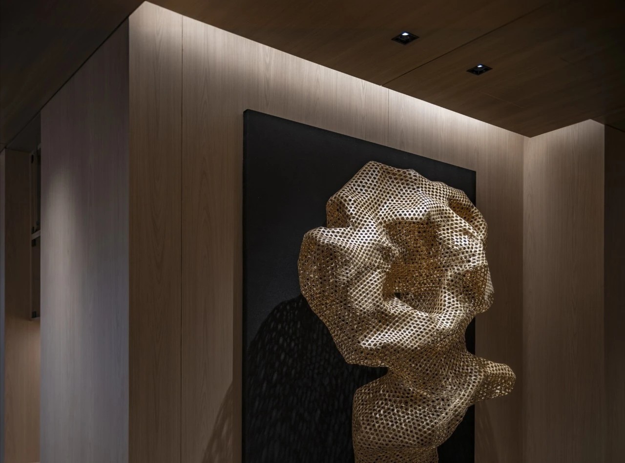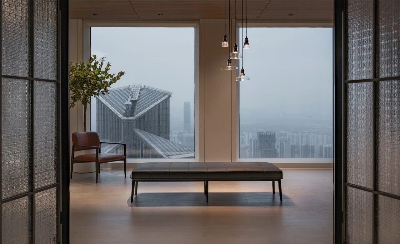 通过有价值的艺术品陈列有效提升了设计品味和空间档次。让空间更有温度,即使是严谨的法律业务也可以闪耀人性的光辉。落地玻璃让都市景色成为不断变化的空间装饰。