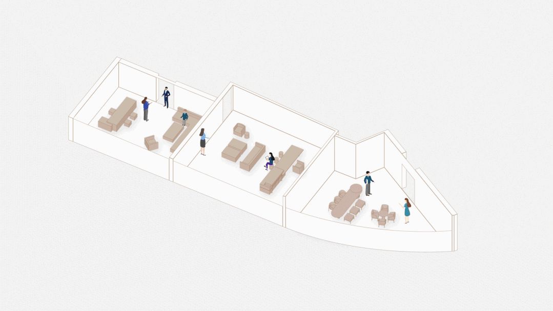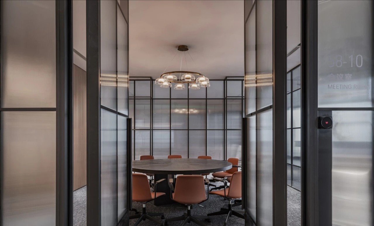移步另一层,首先看到的是接待区,玻璃间隔让空间更通透。大小不一的会议空间,设计不落俗套