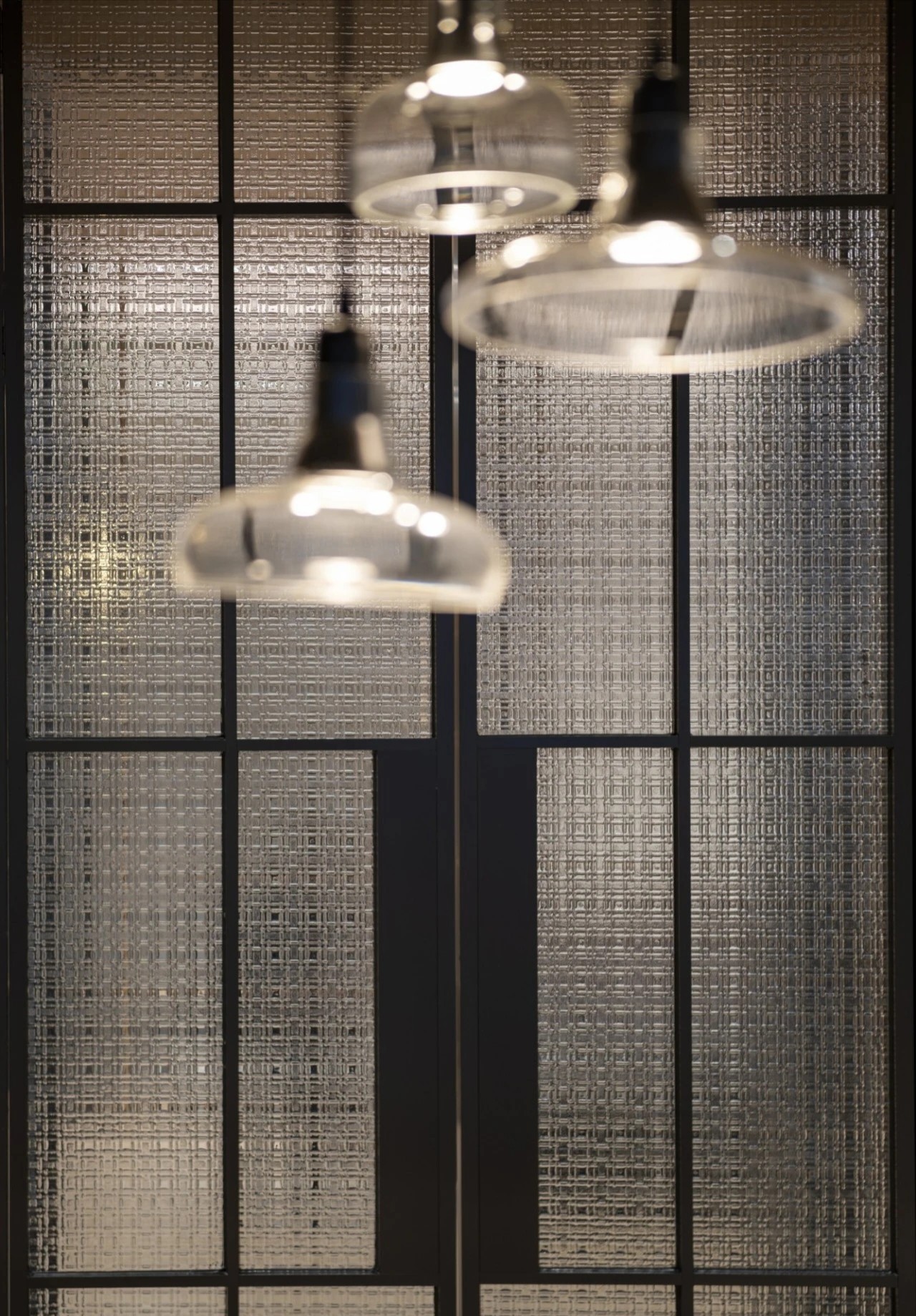 民国建筑常见的压花玻璃和带有油画框的黑白照片为空间增添了怀旧氛围。
