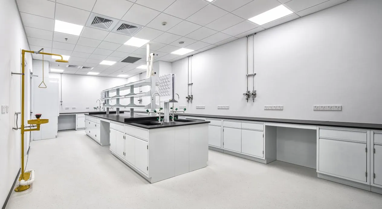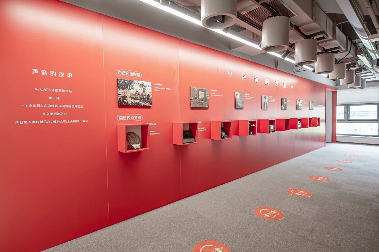 地面为清爽细腻的白色人造环保石材,镶嵌上黄铜造型圆盘,寓意首个冲出太阳系的人造飞行器——旅行者1号携带的金唱片,为人类带来世界上传递距离最远的声音。