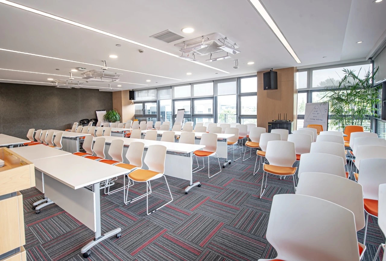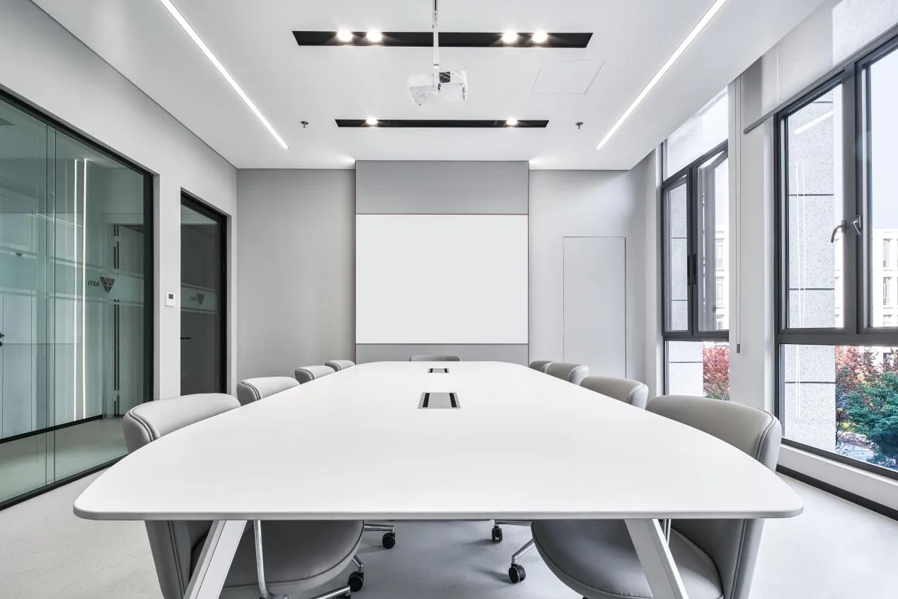 会议室空间延续设计的主色调,用红色点亮空间