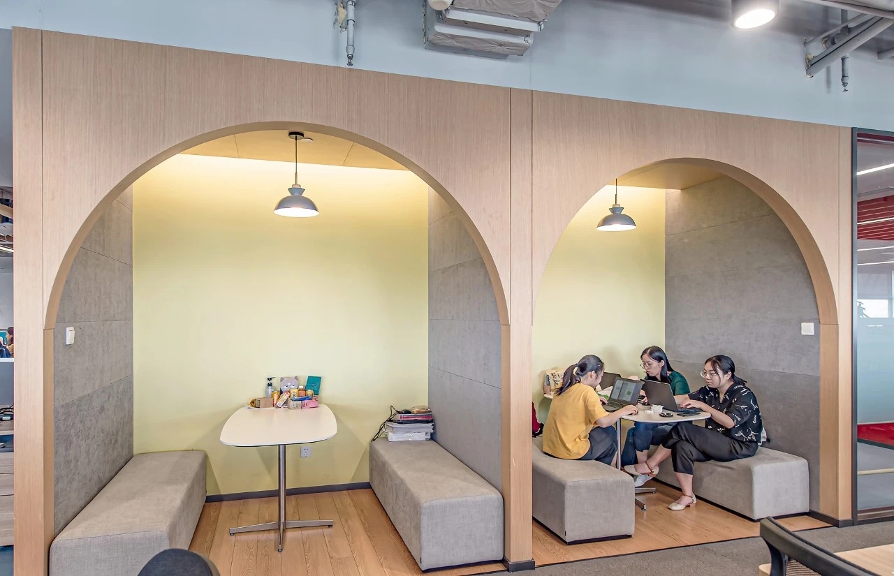 一改传统的格子间办公室,通过多元的家具组合与半月门的包容装饰出一隅温馨的团队独享空间,能够帮助团队更好地沟通与交流,加强协作力度的同时,也大大提升了工作效率。