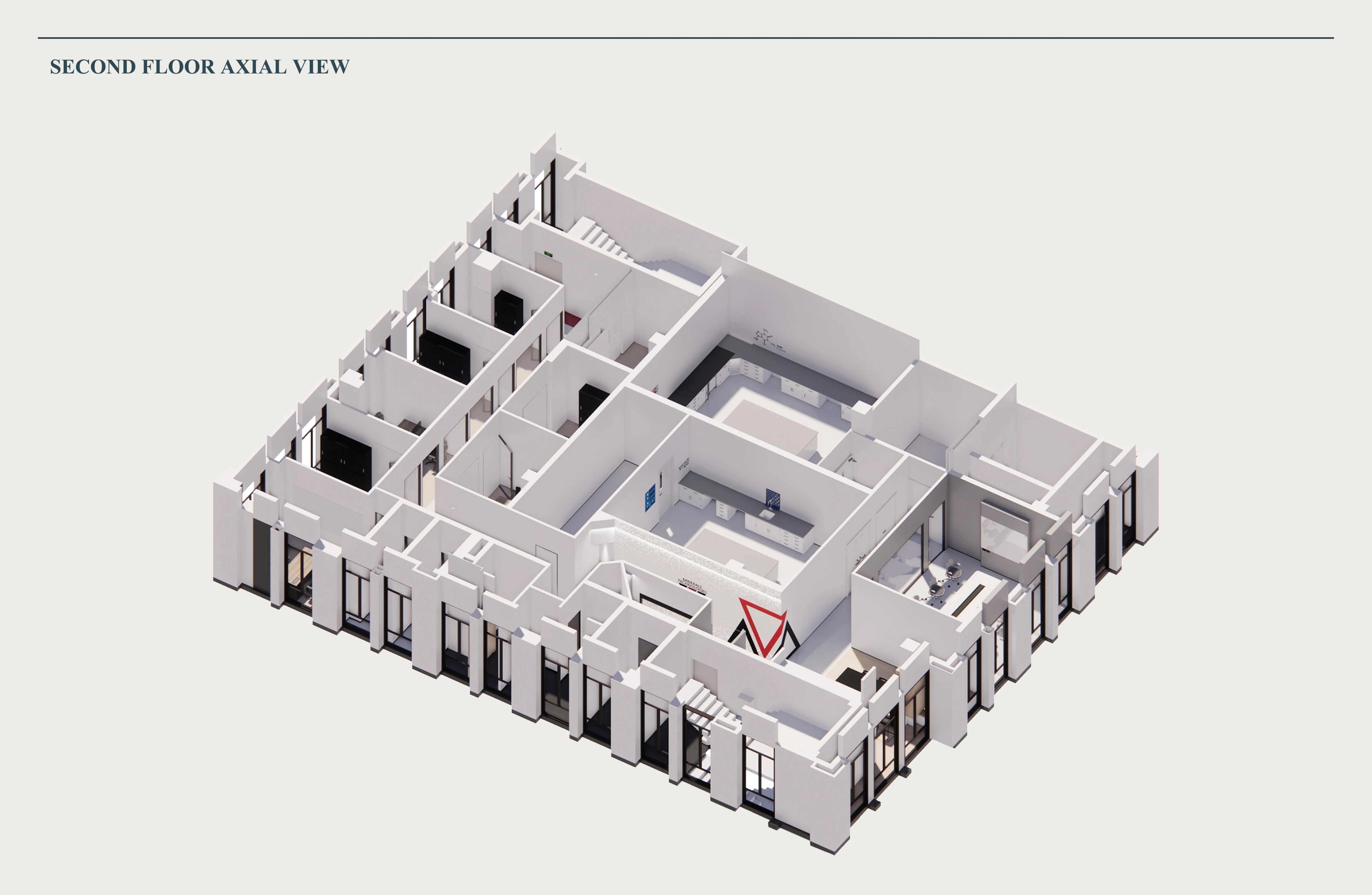 从企业的LOGO作为源起,从一个点,发散到整个项目;我们把logo的三角形打散,从空间门厅的划分,以及立面的视觉表现,都加以演变 应用,把企业的特性衍生出具象的展示,让整个项目的整体性更强;