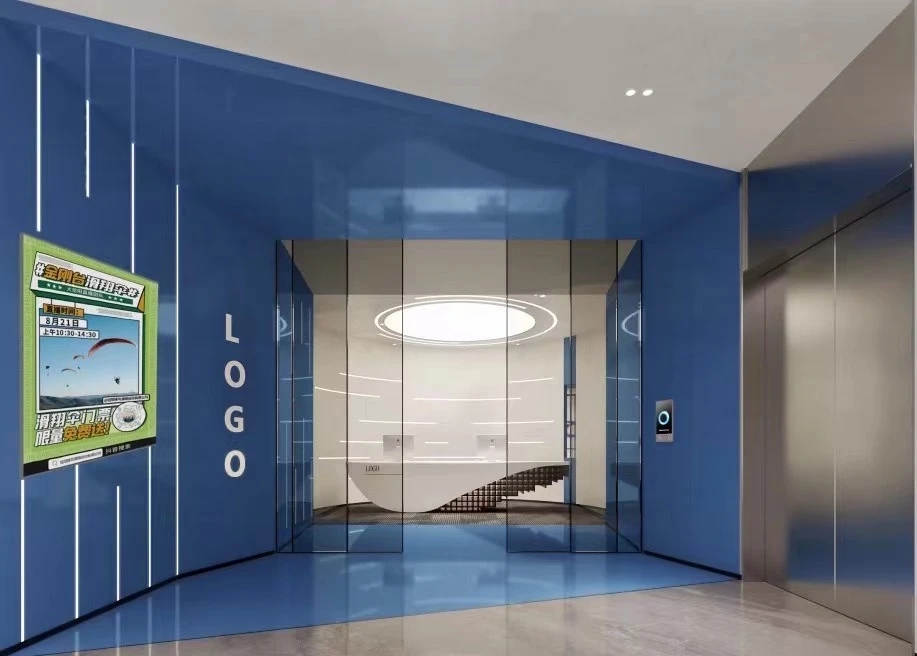 设计师将蓝色作为门厅入口的主色。运用蓝色所包含的深远意境,铺叙空间美学。线型灯装饰灯带与曲线的前台互映,灵动而不失细节美感,完美地融合在沉静内敛的空间氛围里。将空间的艺术性,激发出曼妙奇境。