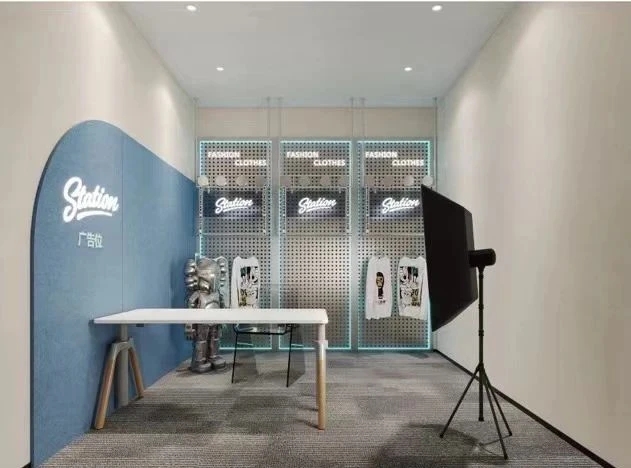 设计团队平衡了网络直播的轻松活泼氛围与办公空间的严肃氛围,舒适色彩与柔性灯光的功能组合,构成了一幅幅充满趣味性和想象力的“理想艺术创作”场景。在这里可以随时随地进行直播或是拍摄。