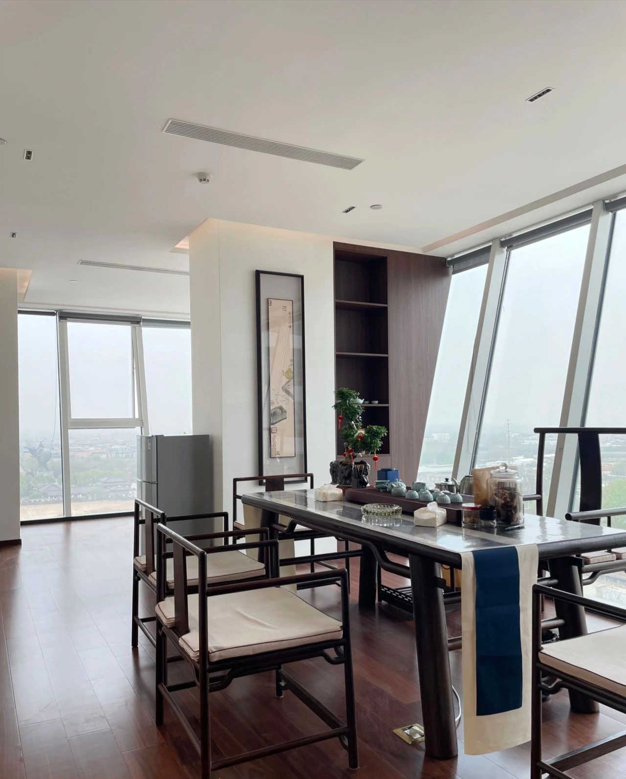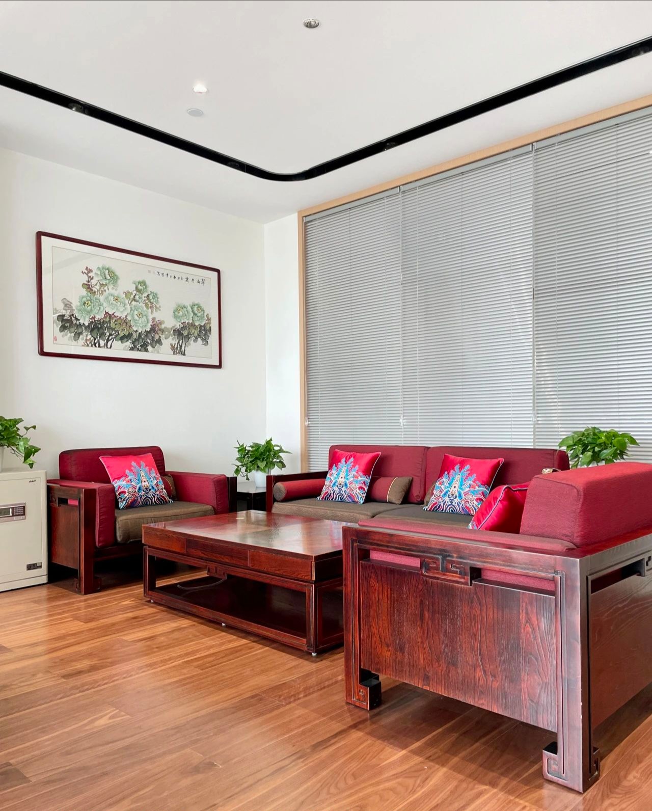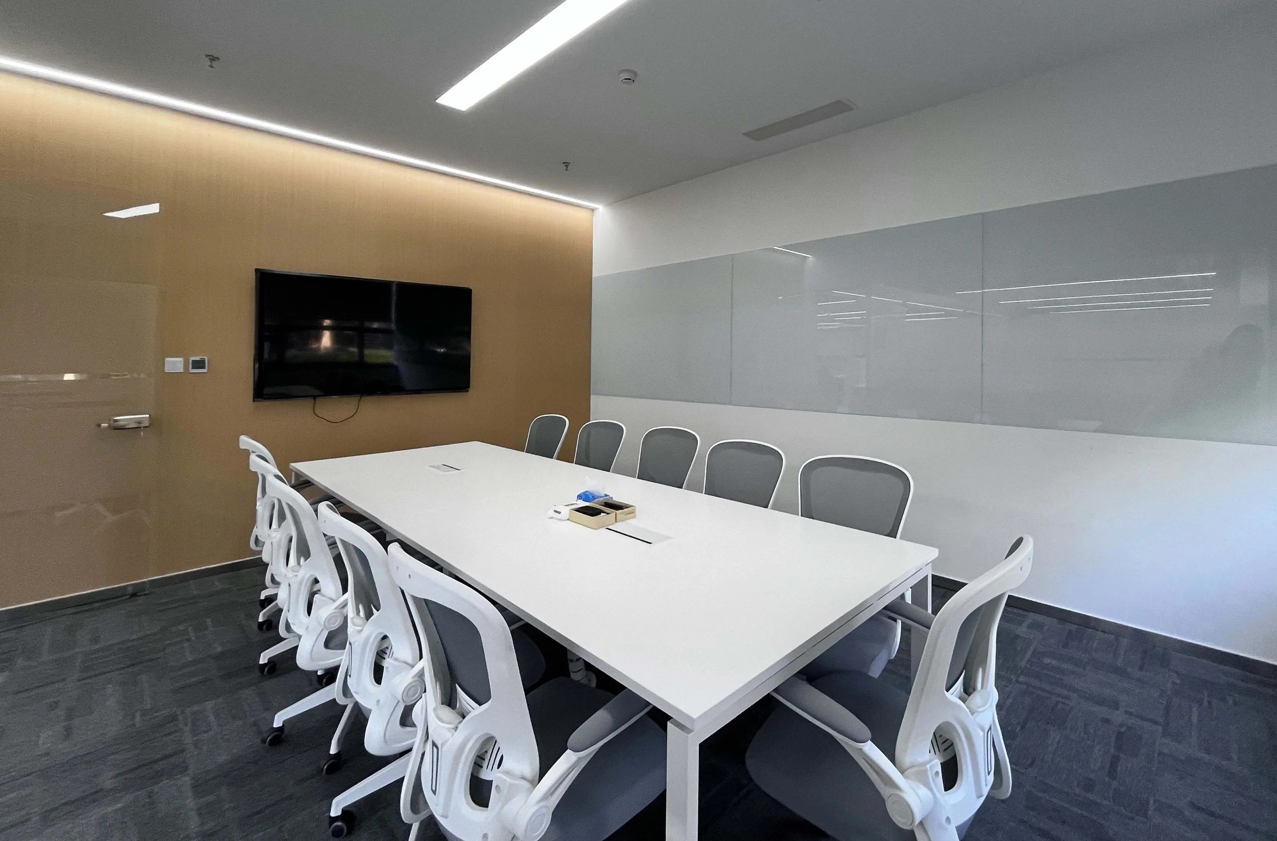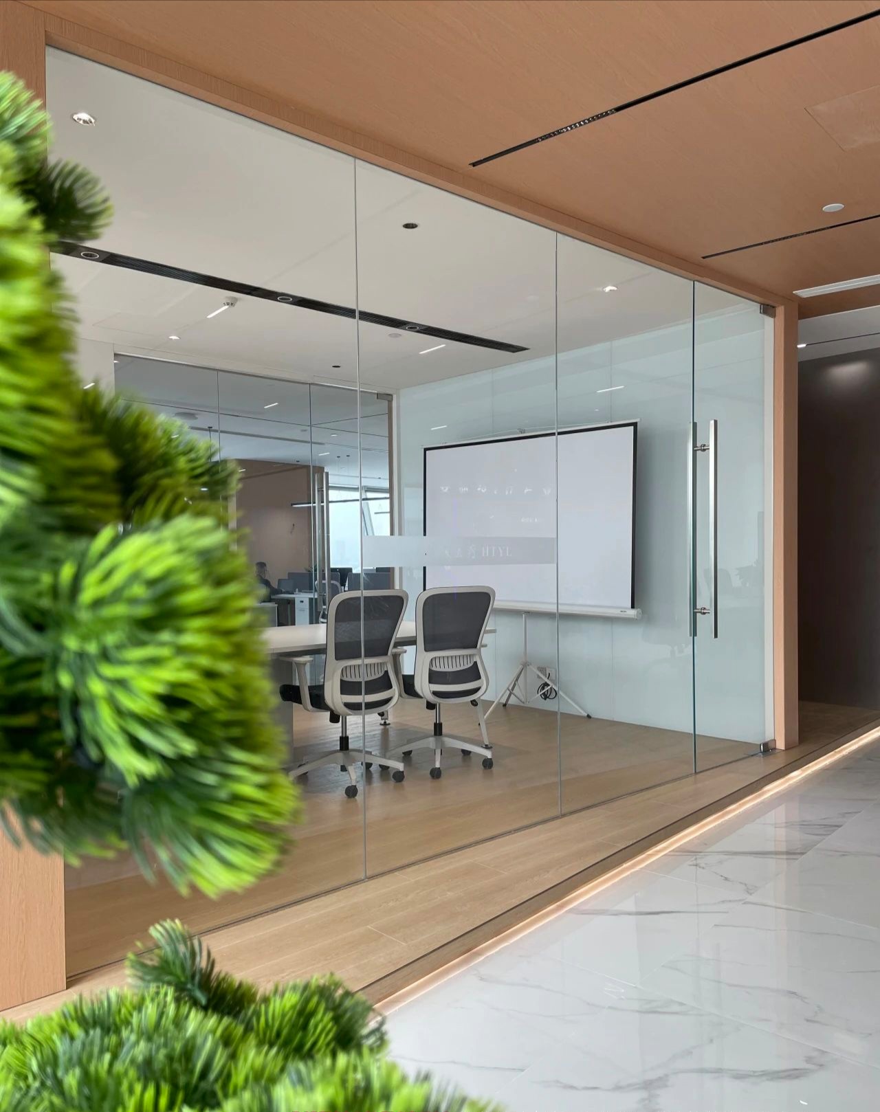 没有过多装饰的会议室,棕色的会议桌,平静的木地板,以确保与会者能够专注于会议内容,于是形成了一个现代与简约风的空间