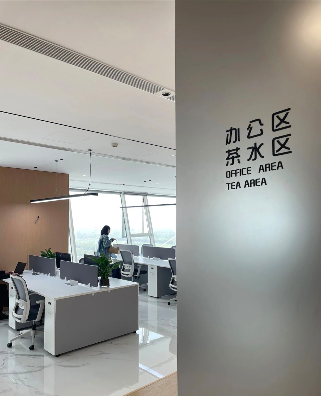 本案消除原有空间封闭感,同时获得开放通透的互动视野。脱离办公室的刻板框架,采用流行元素极简主义风格,打造舒适自由的空间,大面积纯色空间,增加了空间的通透性,营造出开阔明亮的办公空间。
