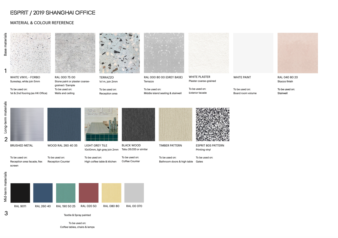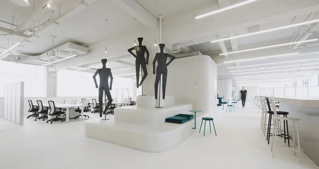 该项目的设计理念非常明确,以简单的策略构造简洁的空间,室内空间干净又生动。厨房、会议室和展示墙等开放性空间和中央封闭室等私密空间,由不同高度和材质的体块加以区分。整体空间明快而鲜亮,反映了Esprit积极向上的企业精神。建筑二层靠近窗户的两侧区域为员工的日常办公区域,注重隐私性。中心区域还设计了开放的交流场所,方便左右两区的员工在中区互动和头脑风暴。