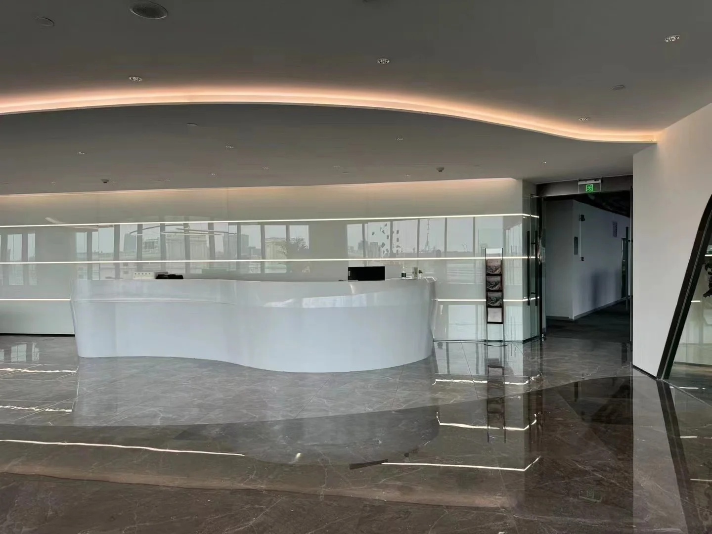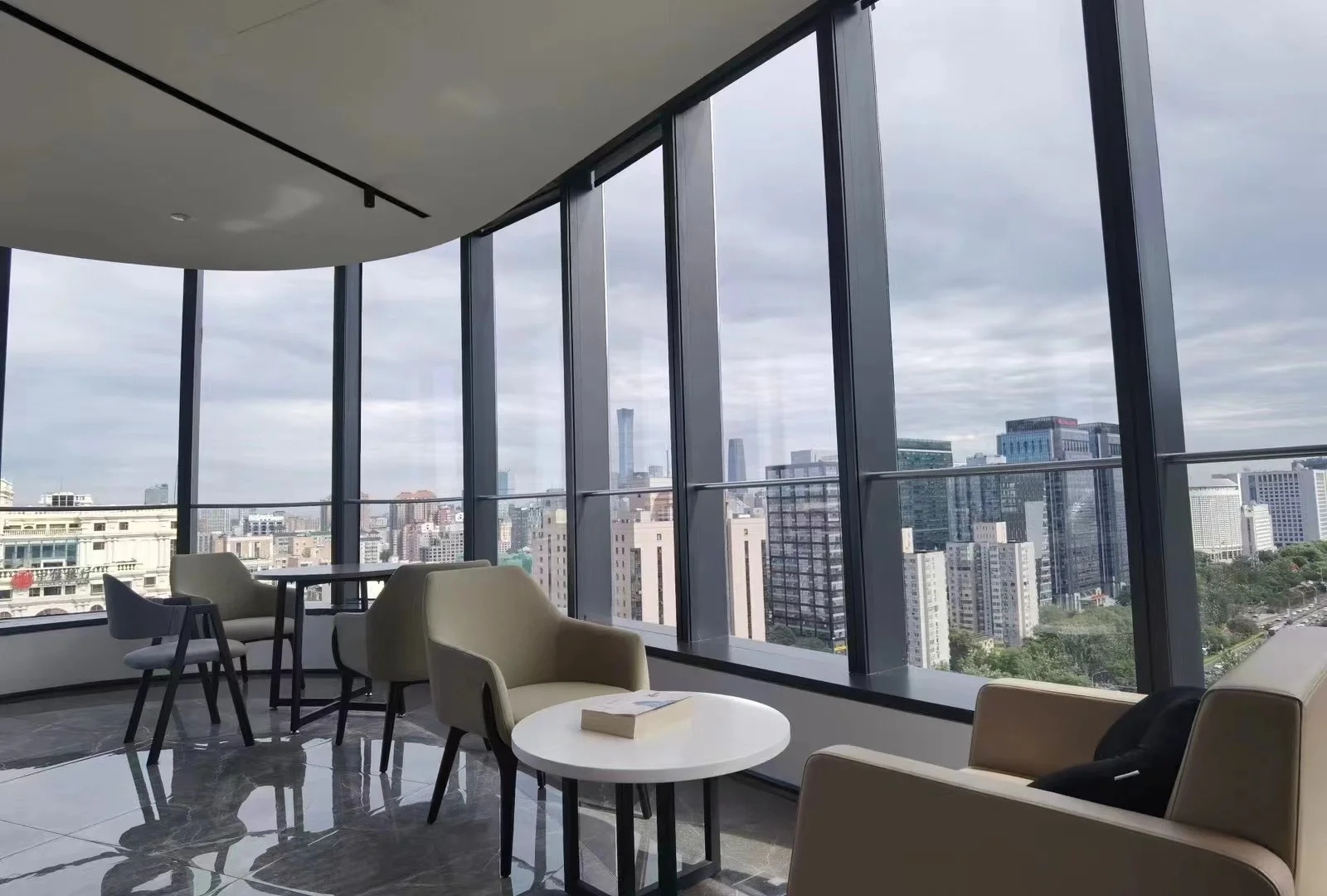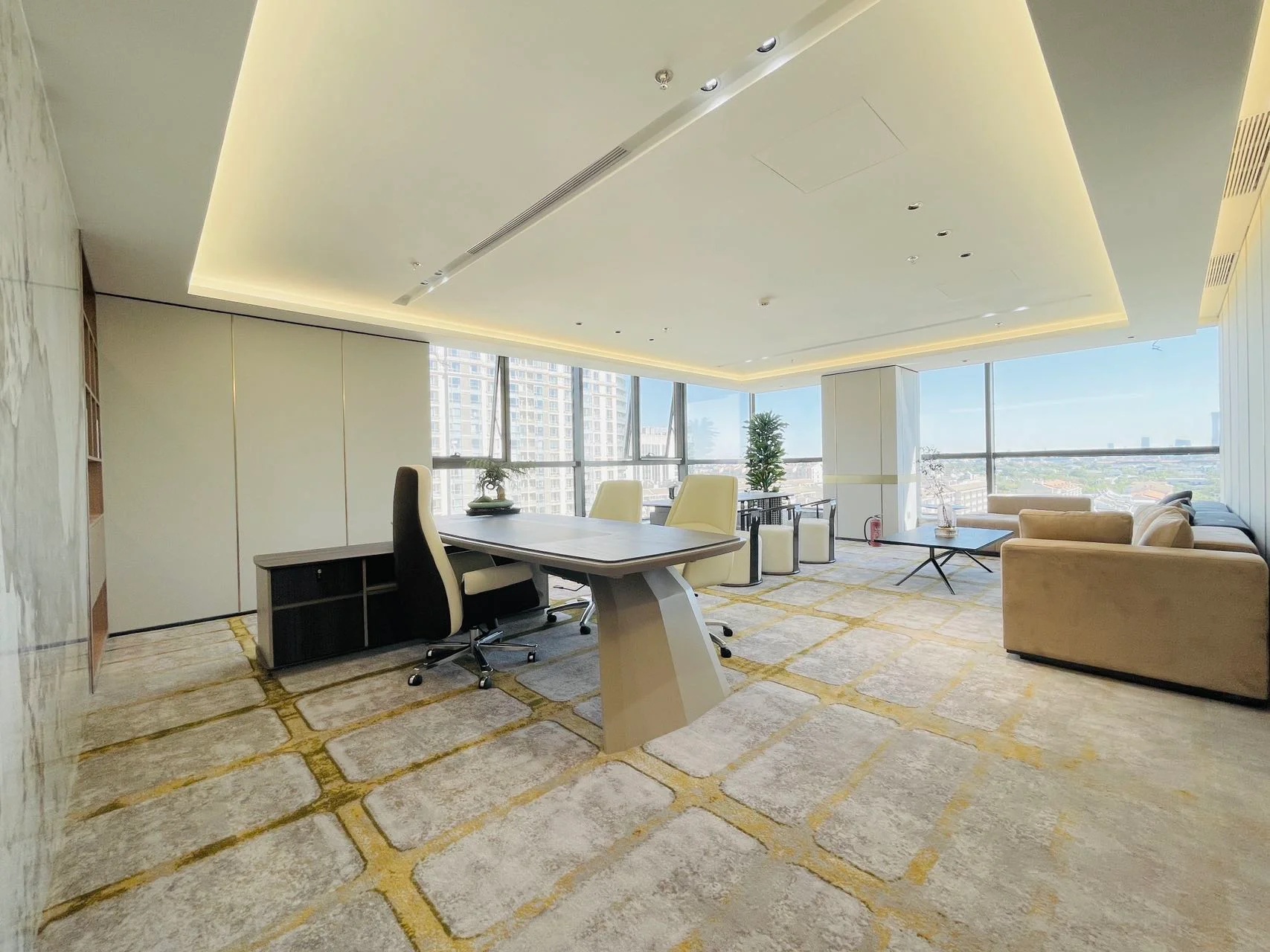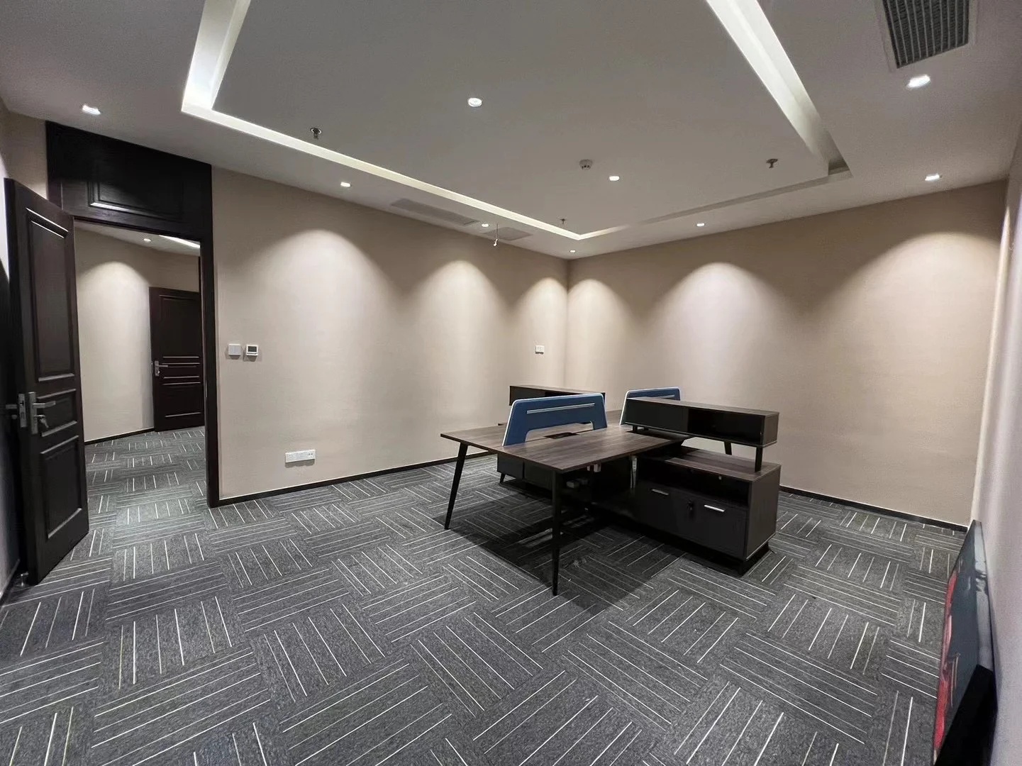 接待区连接办公区和会议区,我们引入了木材这种自然的设计元素作为墙面的装饰材料,营造出亲切舒适的观感。办公室全境禁烟,在多处设有空气质量检测仪,配备的新风系统具有电子除尘和纳米杀菌功能,确保室内空气质量。