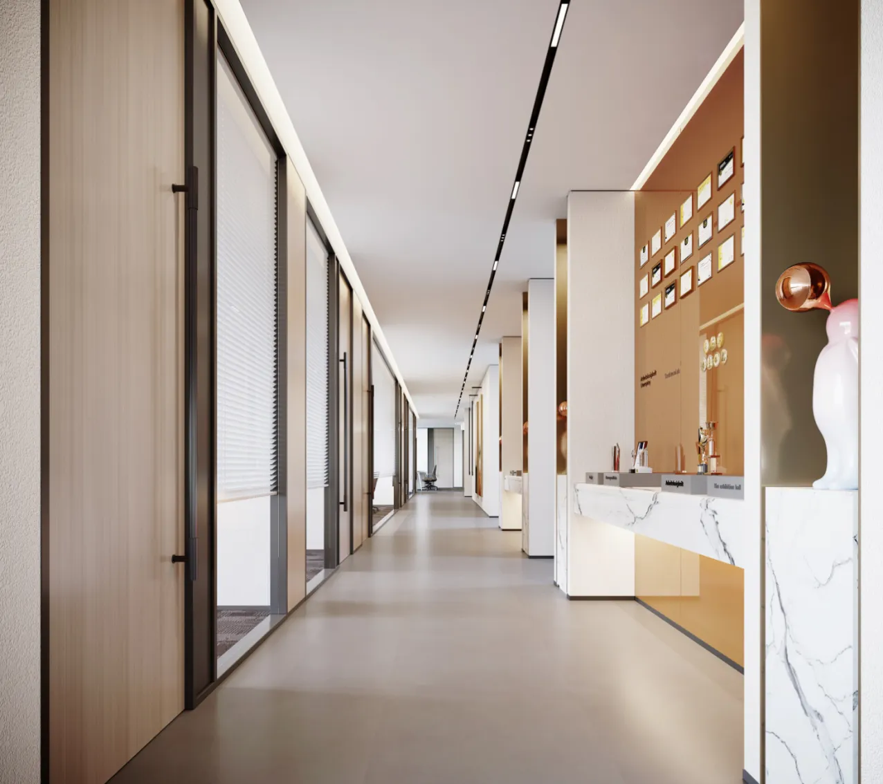 在有限的空间呈现企业品牌的形象和力量,不仅仅是一个办公场所,更是通过设计手段打造符合品牌形象及具国际范的办公空间及展示空间。空间整体氛围打造为现代商务、时尚简约、生态科技、国际风范为一体的办公空间。