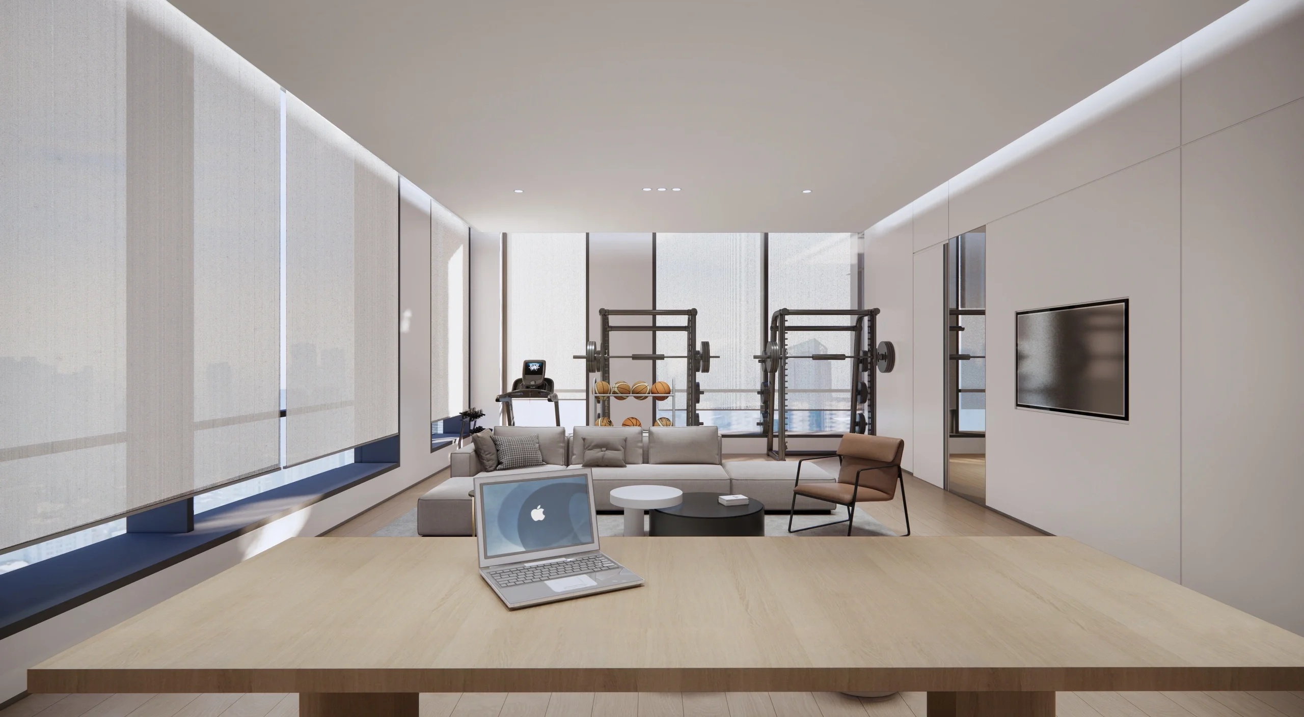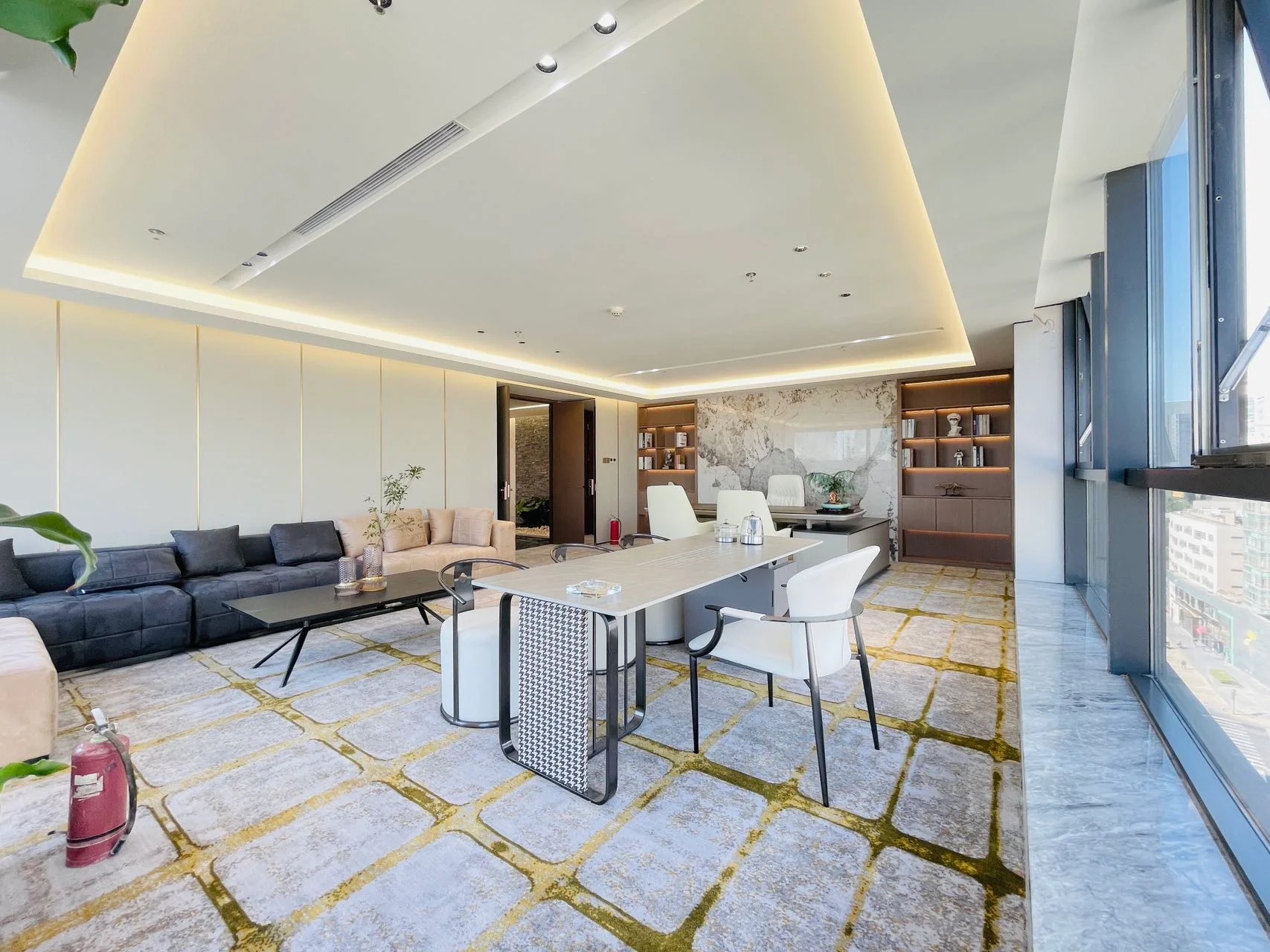 颜色的组合有许多种,在空间里配以少量黑色及铜金色来丰富空间细节及提升整体品质,创造出强烈的冲击感。