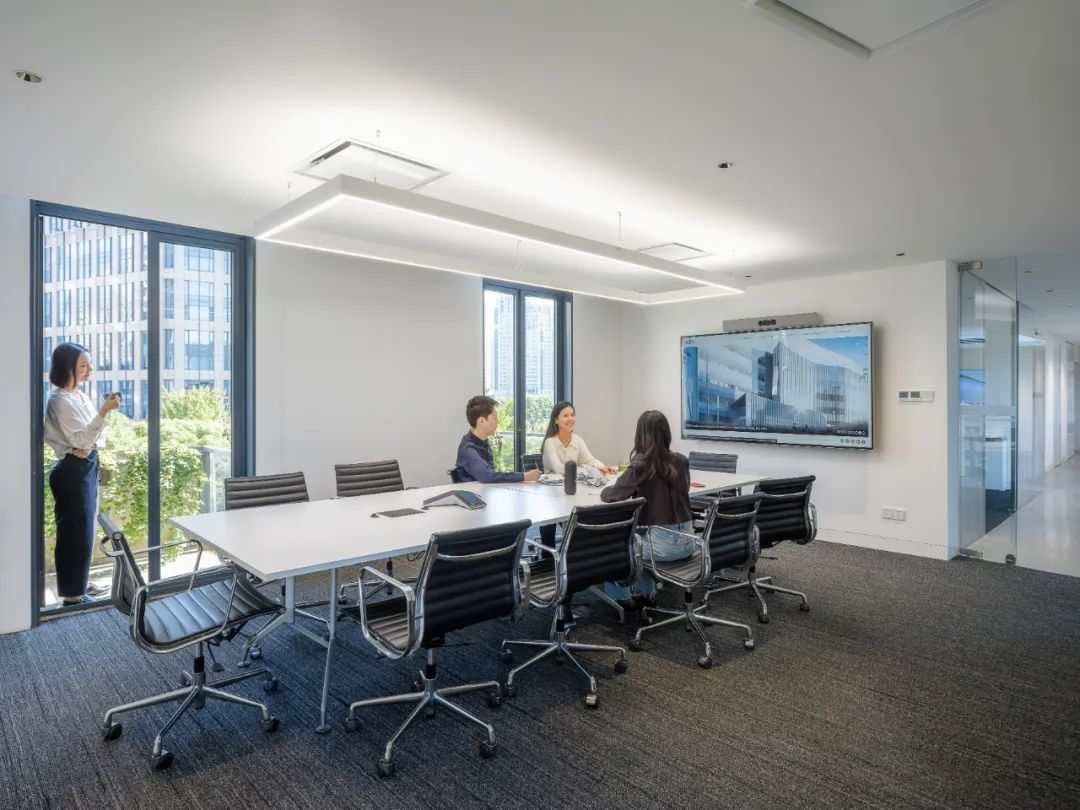 办公室内的会议空间从设计策略上来说满足了大家在各种场景下使用需求,无论是正式的还是非正式的会谈,不同规模的会议空间分散在办公室各处,都拥有独特的景观视野,并且配备完善的会议系统,满足线上线下结合的复合会议模式。