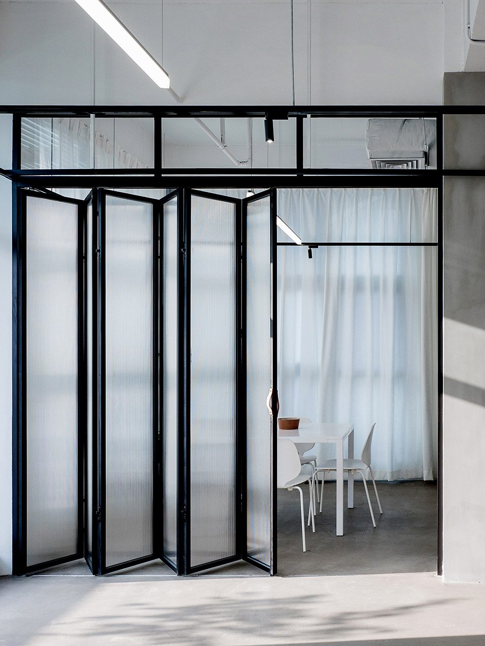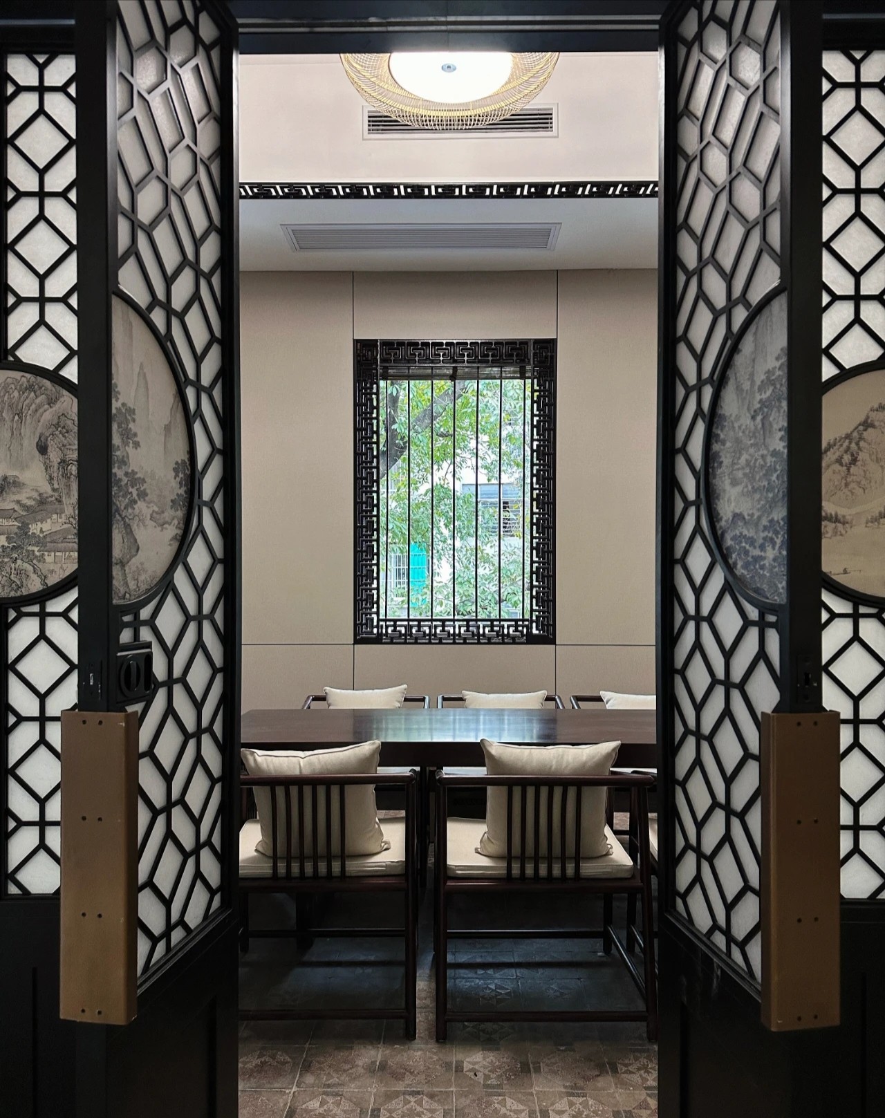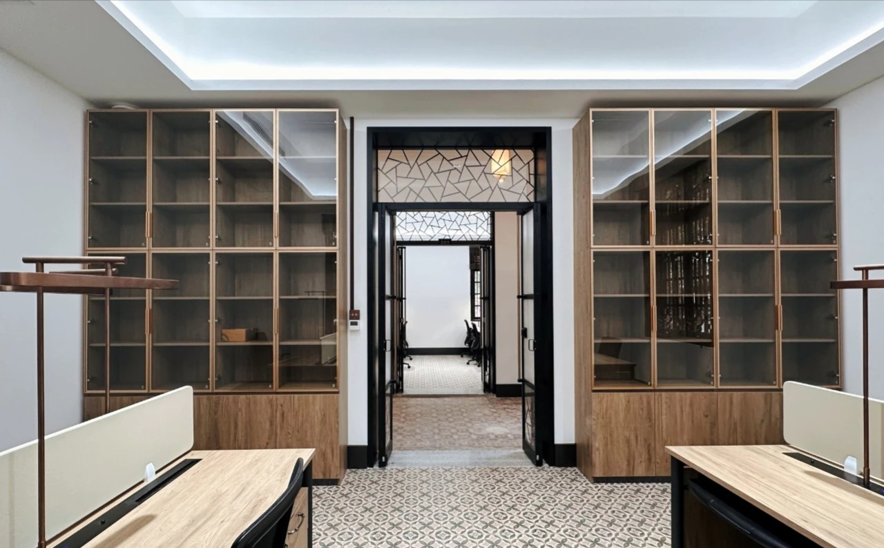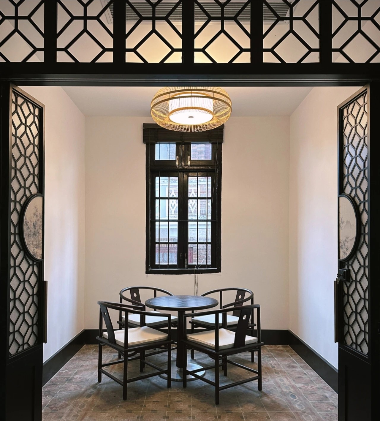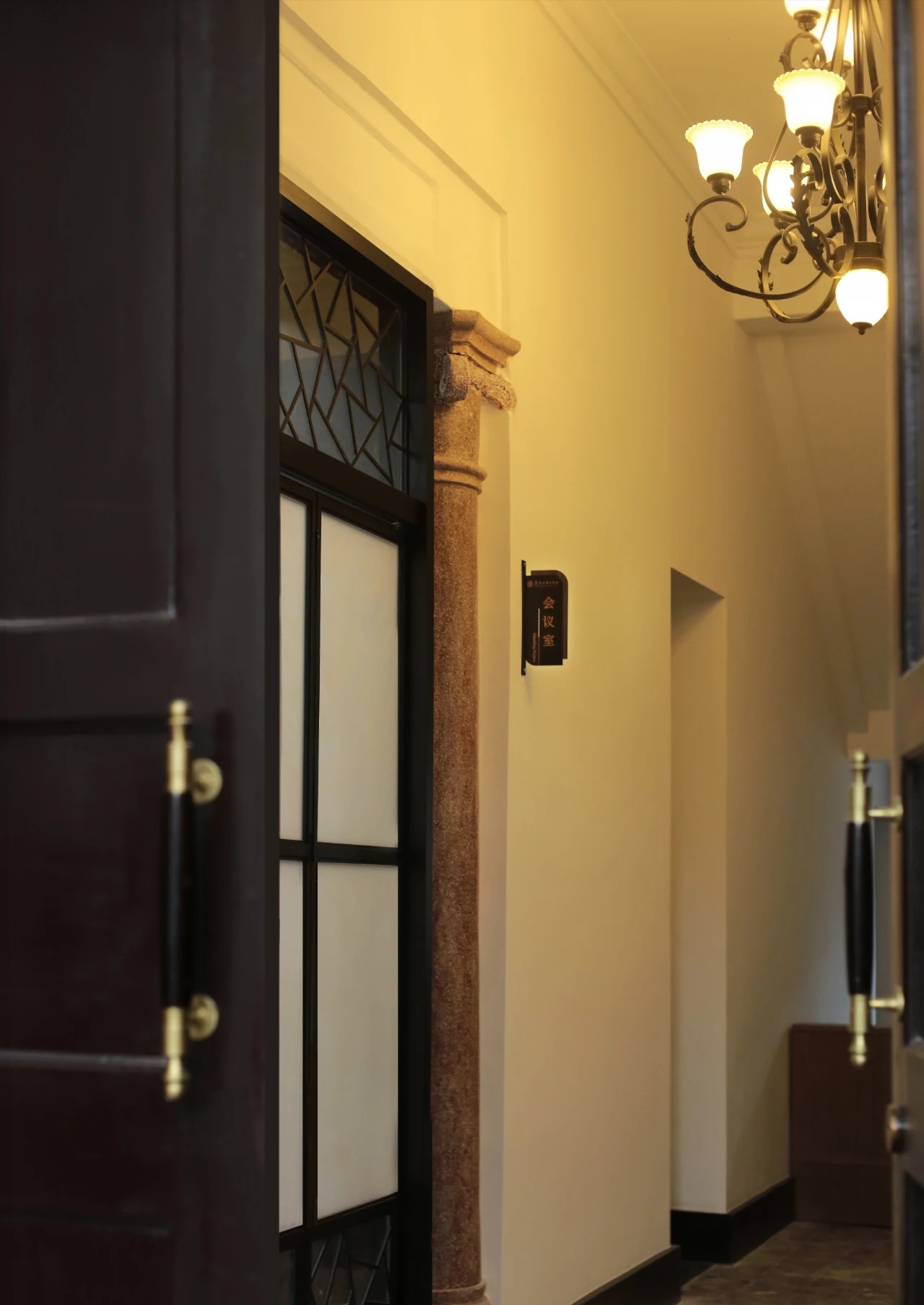 秉持修旧如故的原则,建筑修复保存西式栏杆、拱券、花阶砖等传统特色构件和工艺。室内设计聚焦在门窗和家具设计上。创研社开发了一系列融合满洲窗纹样和岭南书画的门窗屏风,通过将它们间插于在老洋楼走廊之中,在实用性上增添文化韵味。