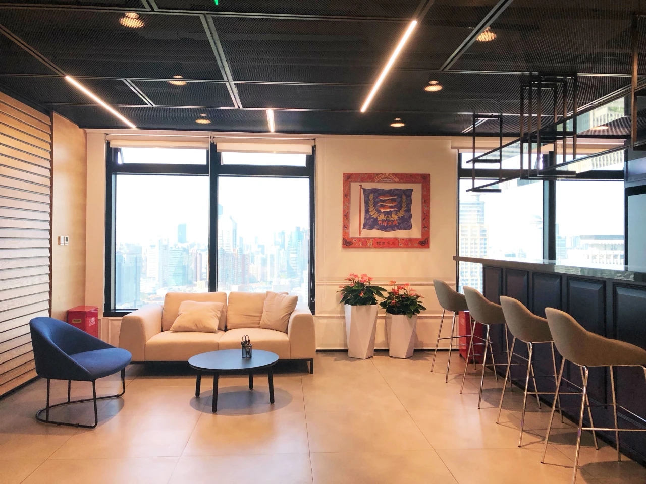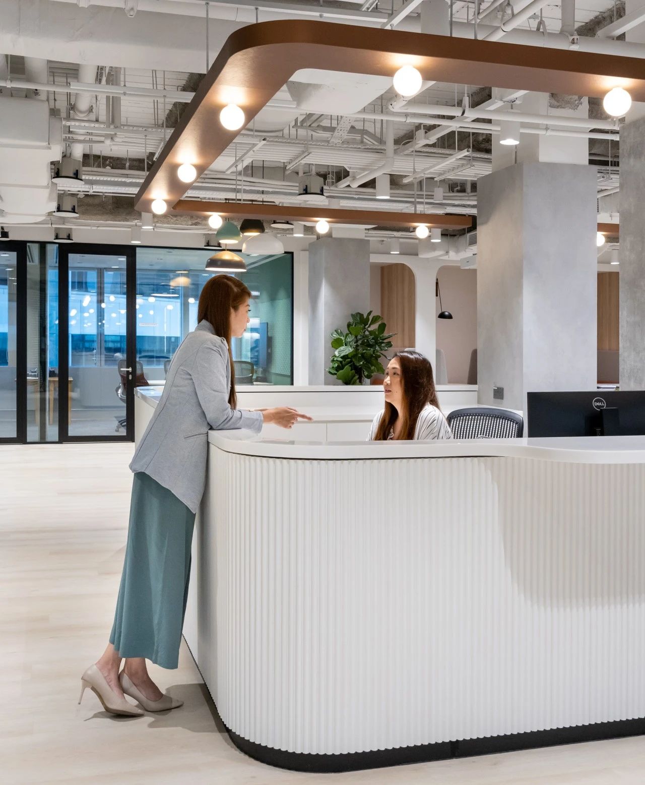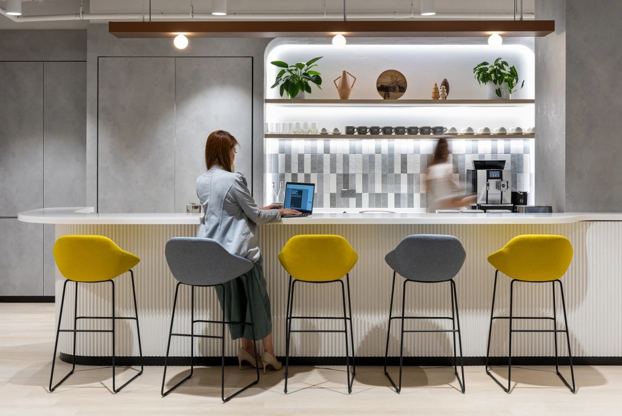 我们的设计理念是将"热情款待"与"工作"相融合 — 这一理念不仅从酒店行业中获取美学创意,还从酒店行业提供的体验中汲取灵感。在美学方面,我们利用了建筑风格,打造了平静舒缓、简约的外观等元素,而在体验方面,我们的设计侧重于让人一进门就能感受到宏伟的到访体验,并提供多样化的空间选择。