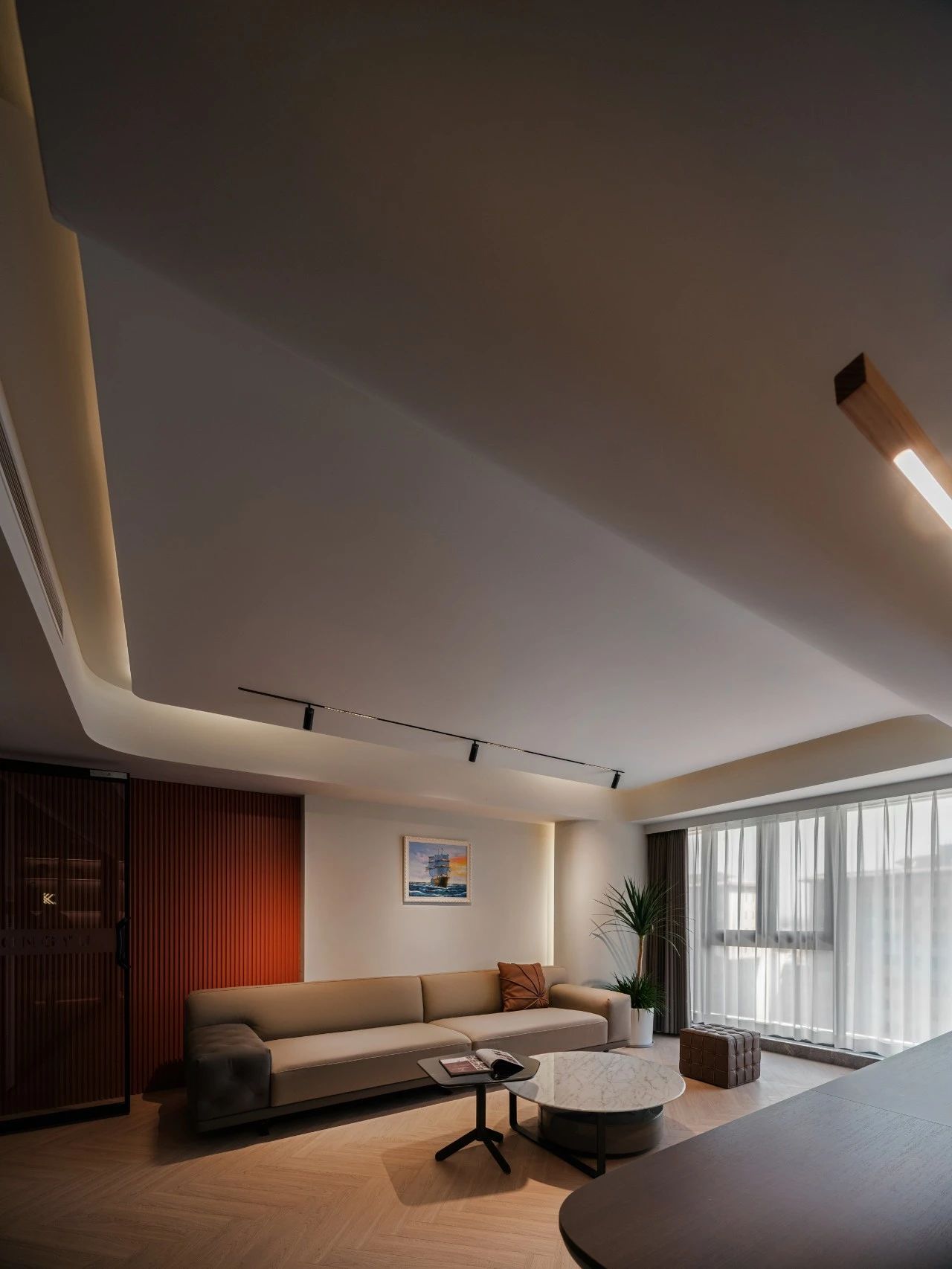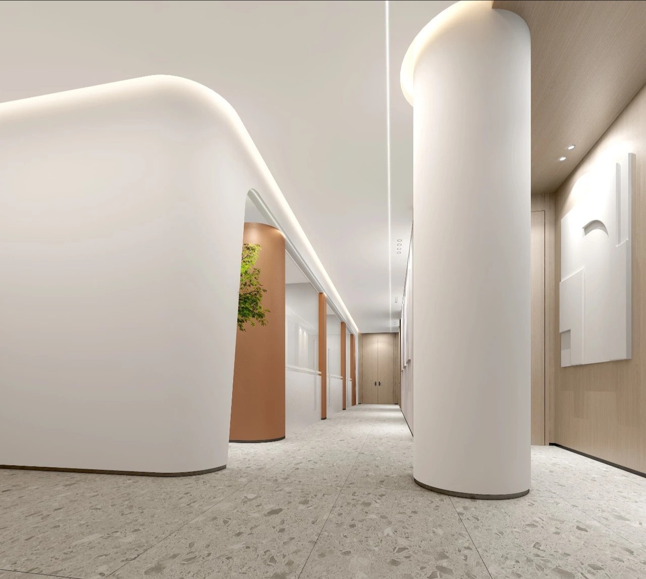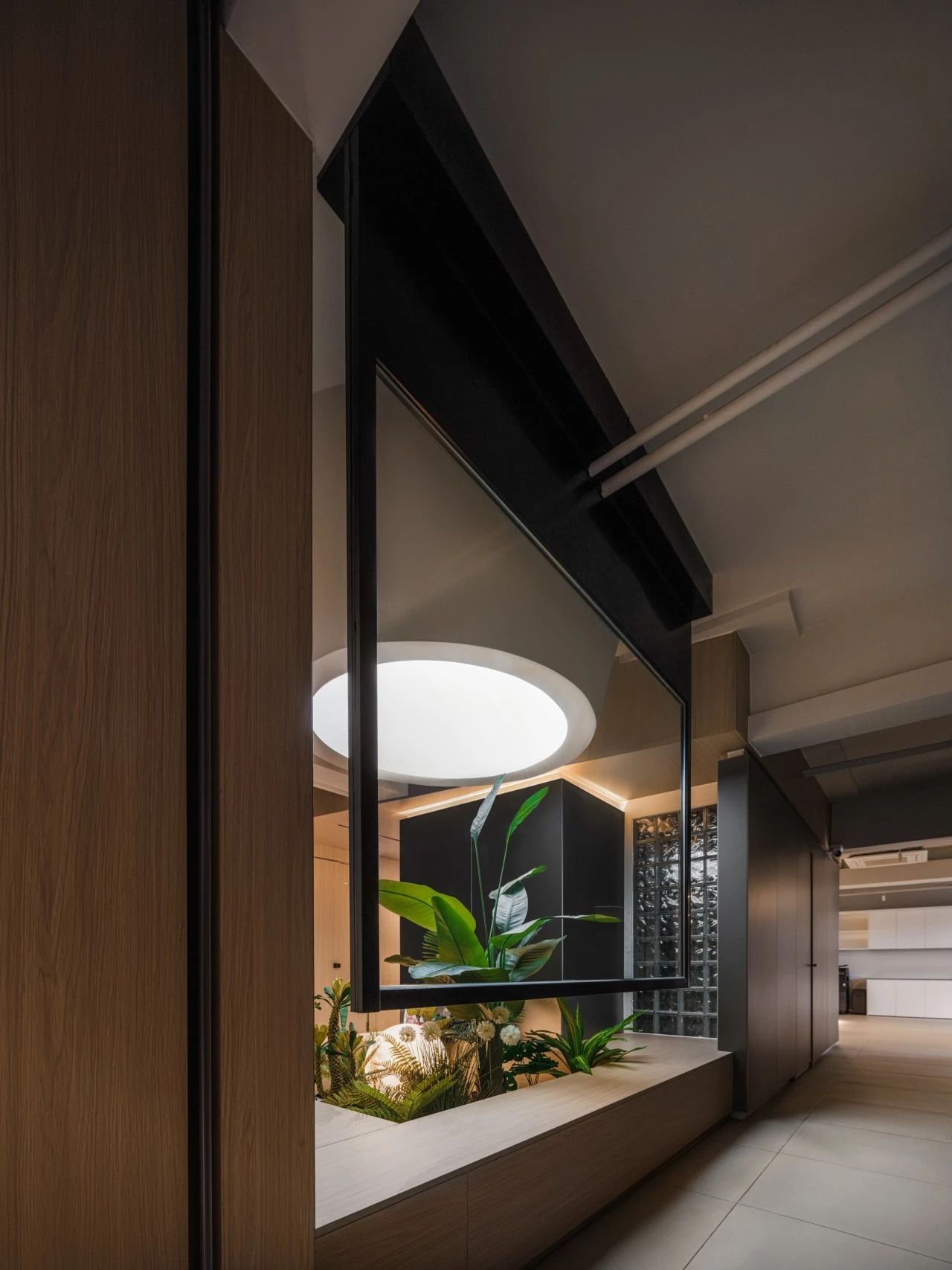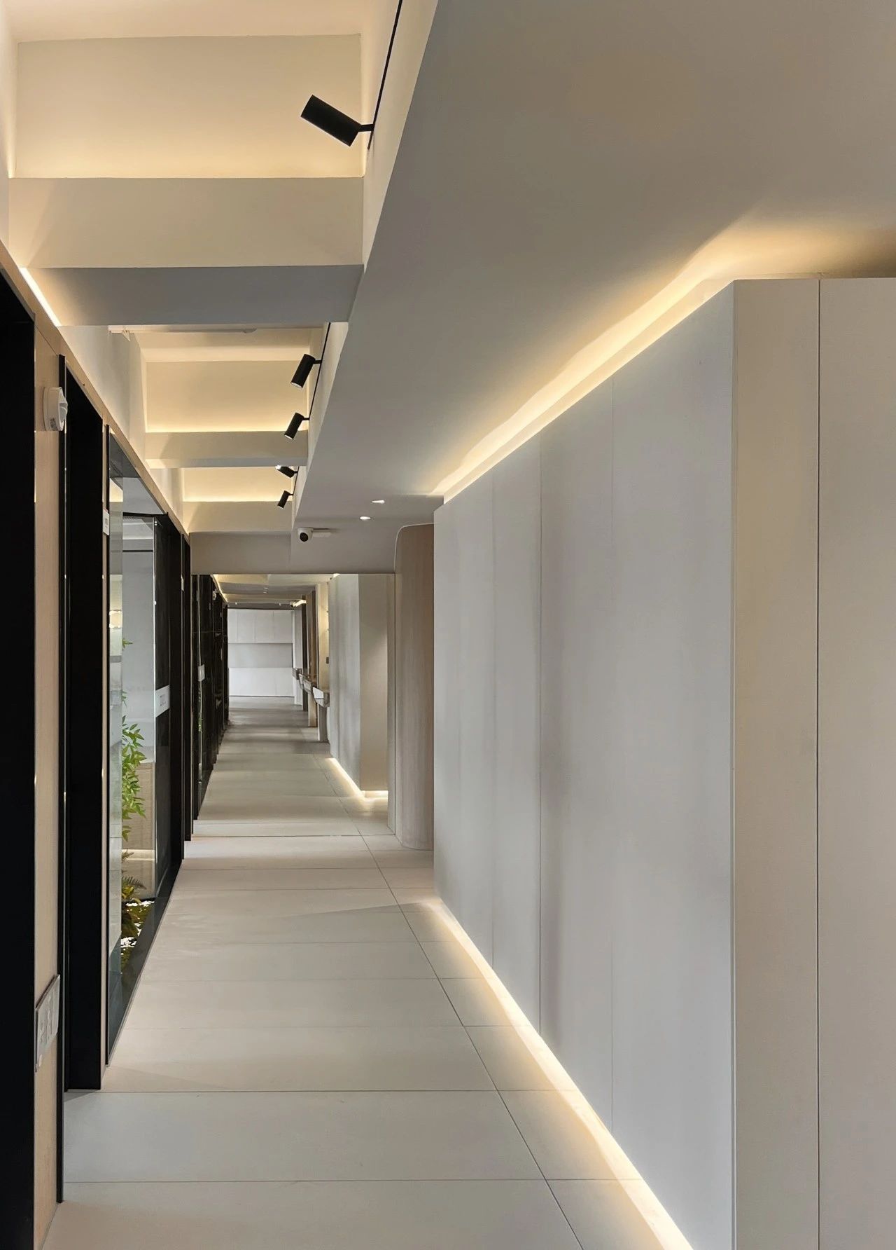 从电梯入口开始设计师巧妙地设置了一个过渡空间这个空间不仅是实际意义上的通道更是情感上的桥梁它象征着一种“先抑后扬”的设计理念,让每个人在进入工作状态之前,都有一个缓冲的过程。过渡空间的设计既开阔又充满变化,让人在移动中感受到空间的韵律。这些端景如同点缀在空间中的艺术品无论是一幅壁画、一个雕塑还是一处特色植物区每个端景都是为了让人们在日常工作流中随时能获得视觉上的愉悦和心灵上的慰藉处处有景意味着每个角落都有让人驻足欣赏的理由