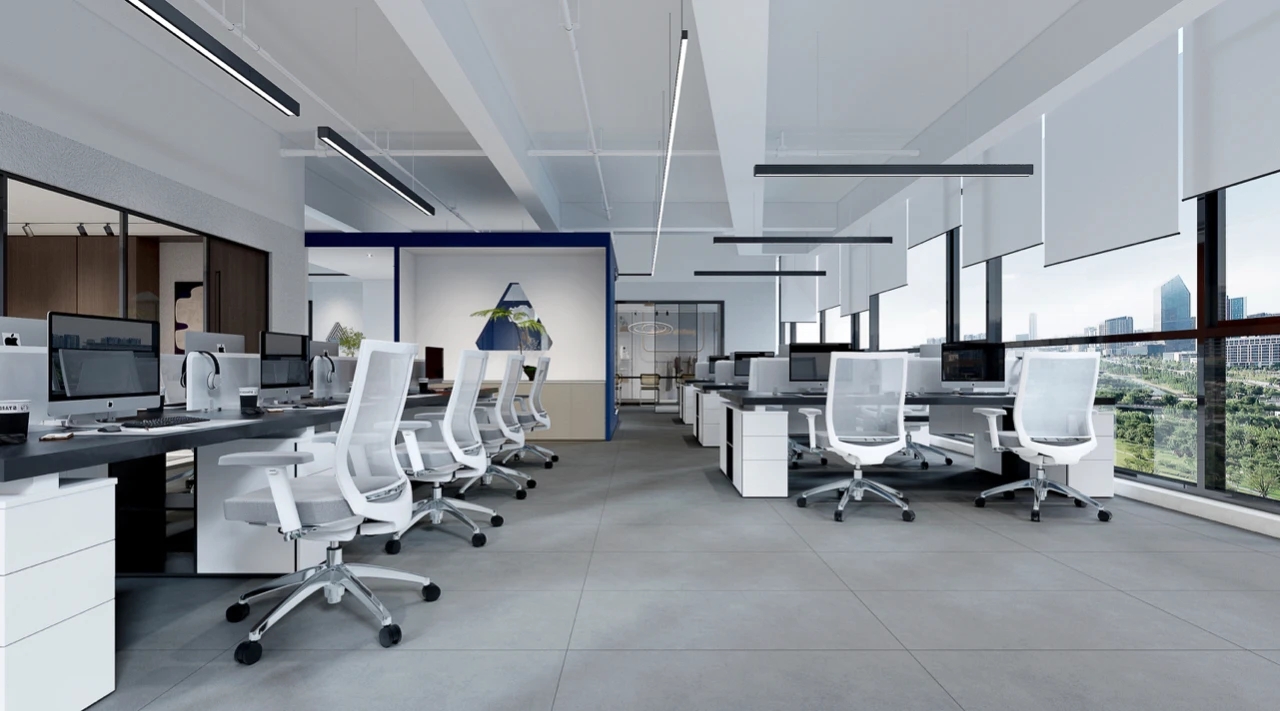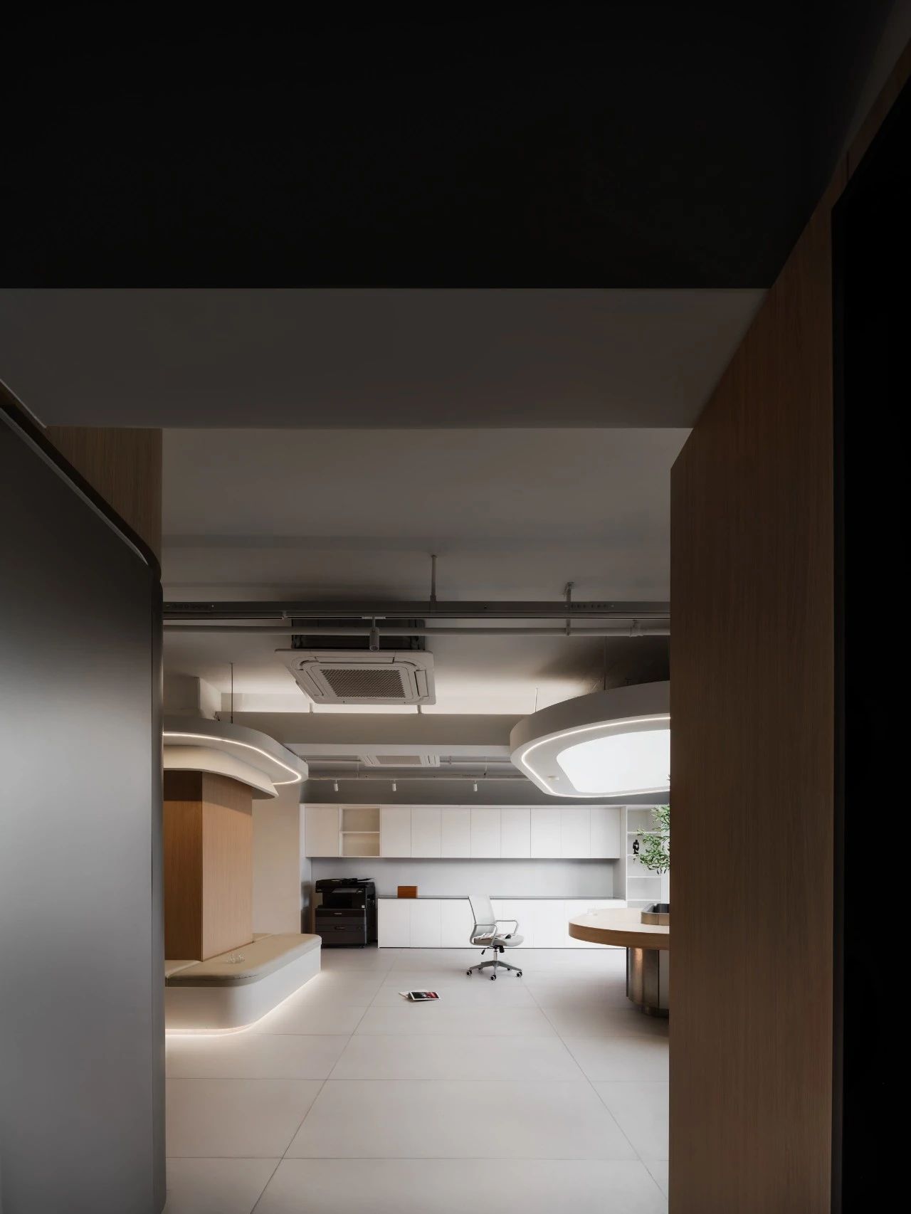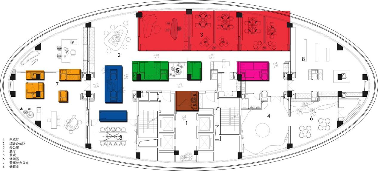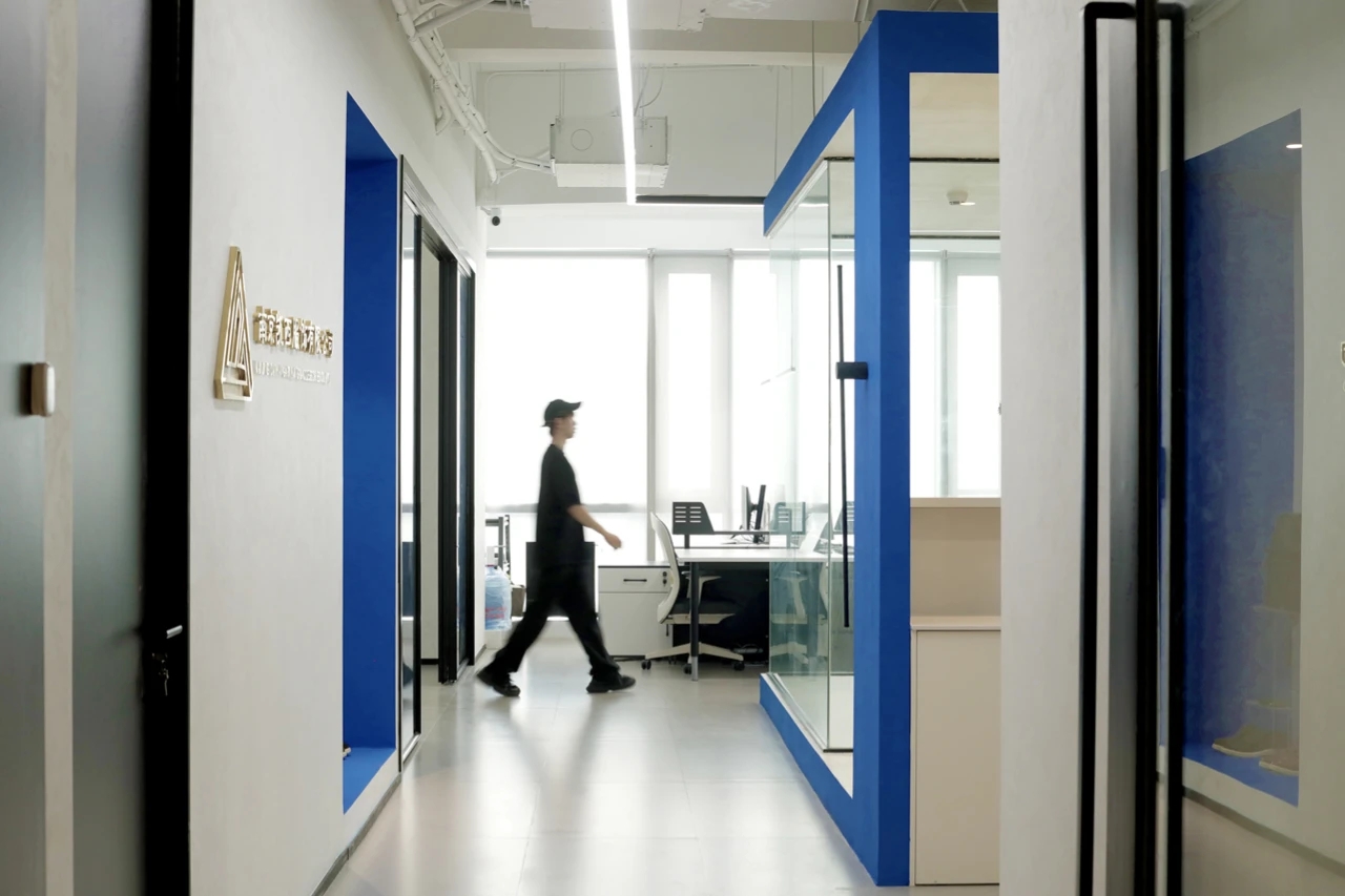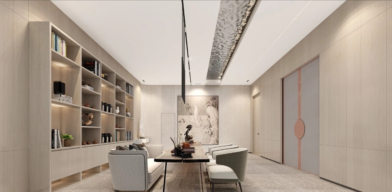 进入办公楼的主体之前,设计师特意设置了一个退让的玄关处这里摆放着干景。不仅增添了空间的美感,亦在无形中缓解了人们的心理压力。办公区域:由一系列工作空间组成,包括开放式办公区、独立办公室和团队协作室。设计上追求高效与私密性的平衡。