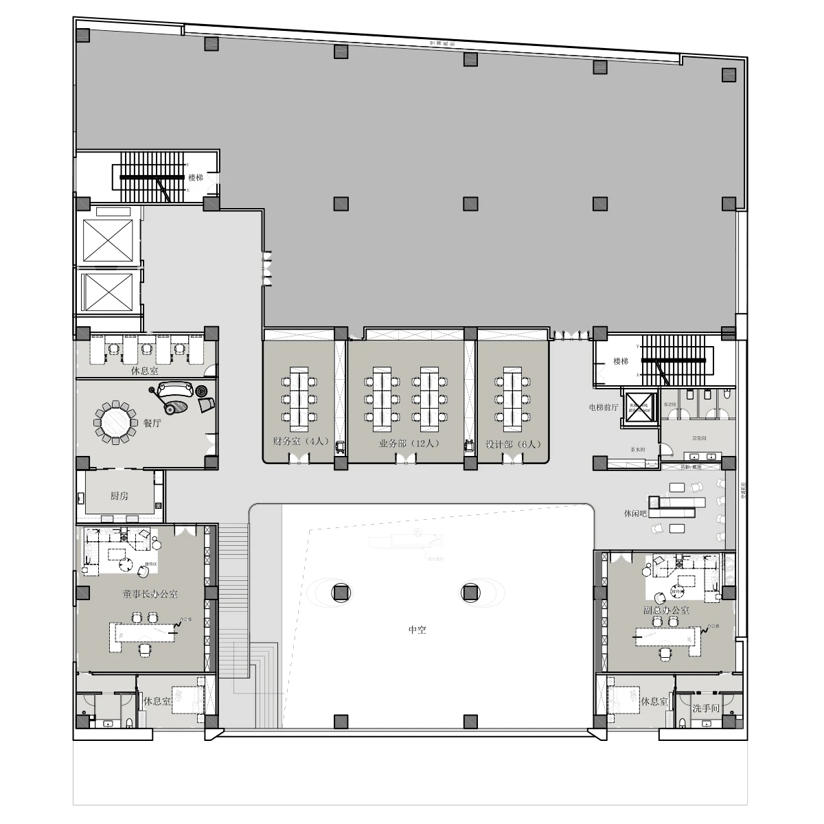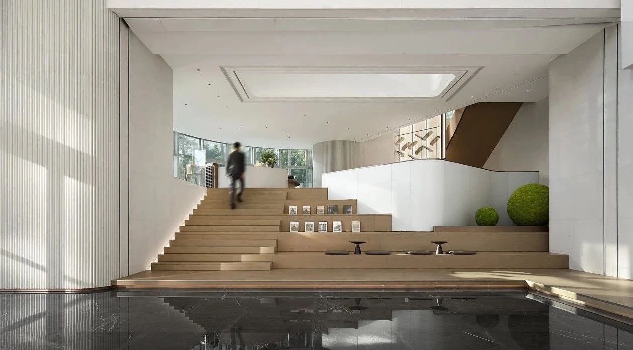 当我们跳脱出习以为常的审美习惯回溯过去,找寻文化的源头根脉总有源源不断的新灵感设计师融汇书法美学和空间语言开展一场关于传承与探索的思考二层为敞开休息区健康办公工位的植入也点明我们愉悦办公的设计理念天花的镜面板似空间更有延伸性