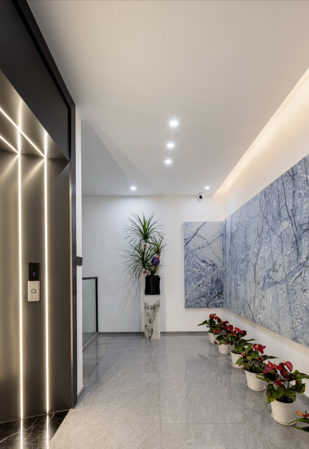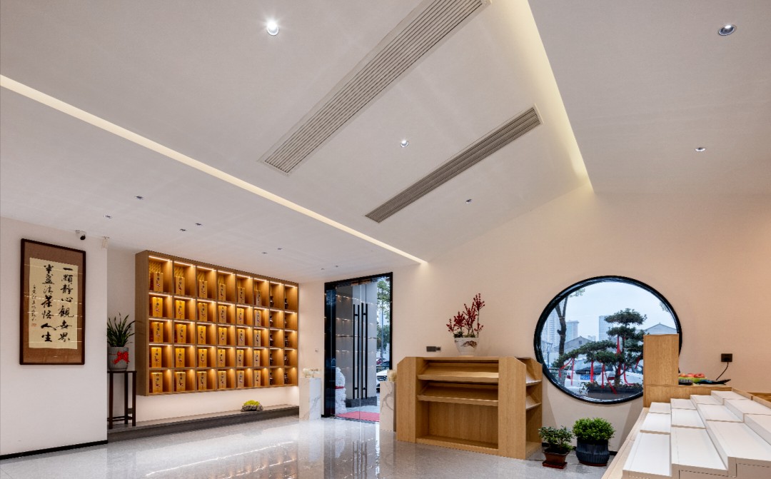现代的建筑立面与玻璃幕墙,塑造起大气、严谨、沉稳的企业形象,谐“祥”而来的石雕大象妆点门楣,暖色灯光由内而外温暖释放,引导着访客的轨迹。