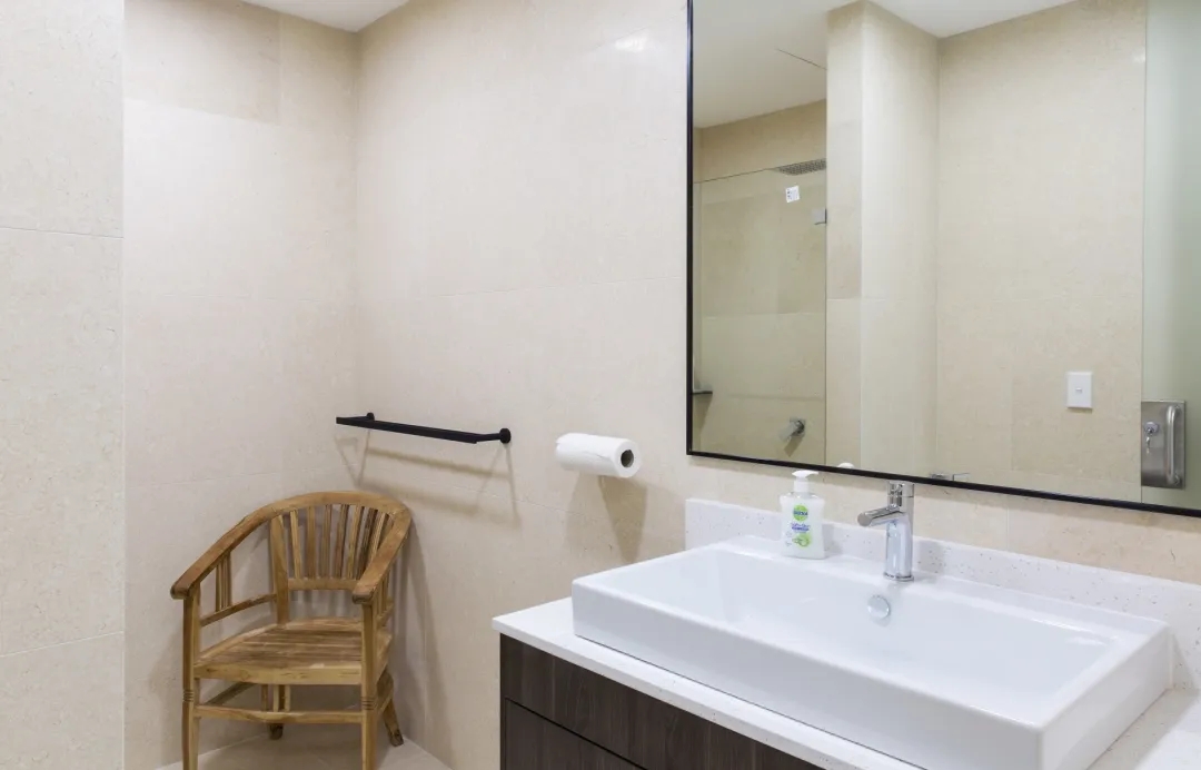 整体空间以简约白色性冷淡风为主高饱和的亮色软装点缀穿插让整个空间的秩序美感更丰富充满现代感与人文气息的大厅,视觉上极度舒适地面使用大理石花纹瓷砖展示出来的效果豪迈又很有质感