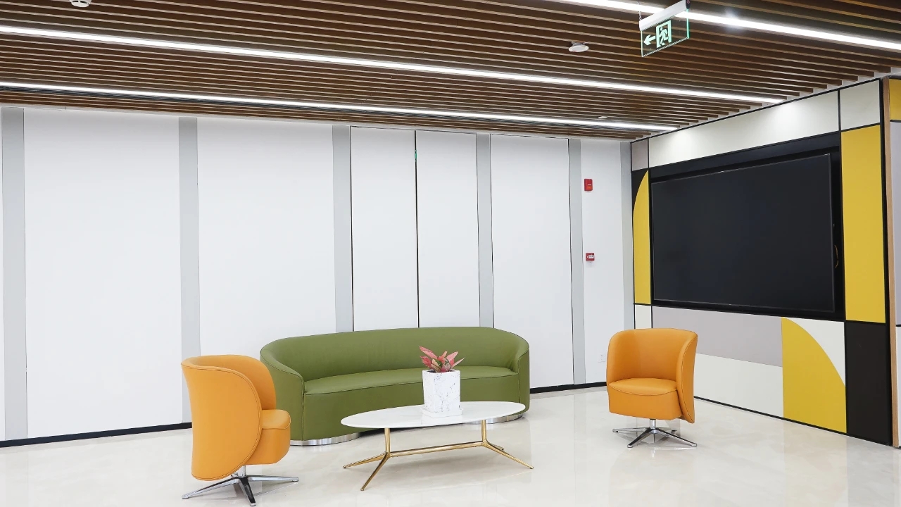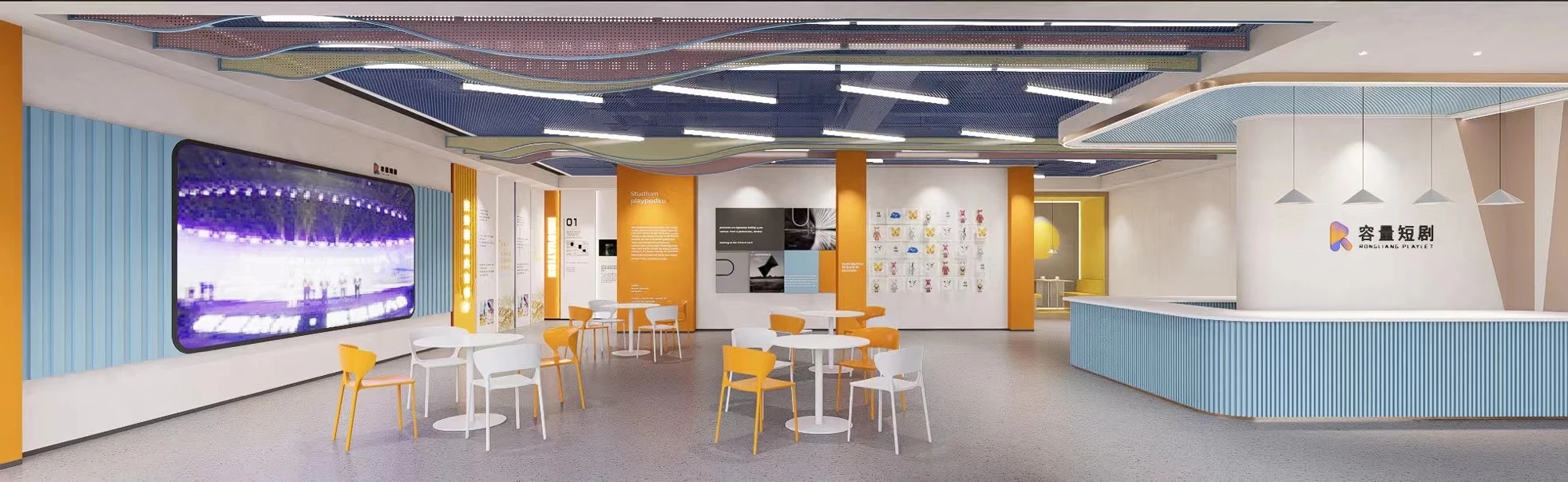 色彩关系是本案的核心体现,始于前厅。室内第一视觉焦点尤为重要,而蓝色给人耳目一新的感觉,因此被大面积使用于前厅区域,醒目且质感十足,营造轻松欢快的接待环境。