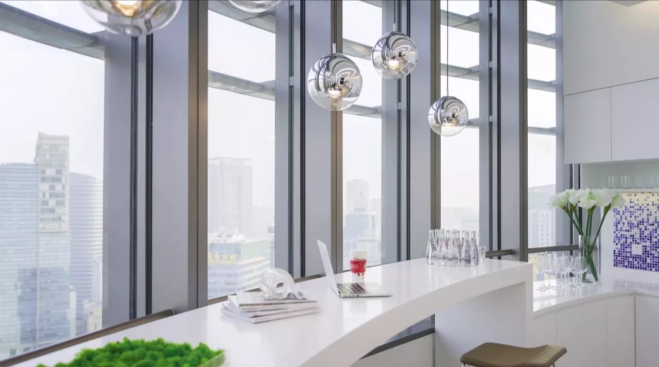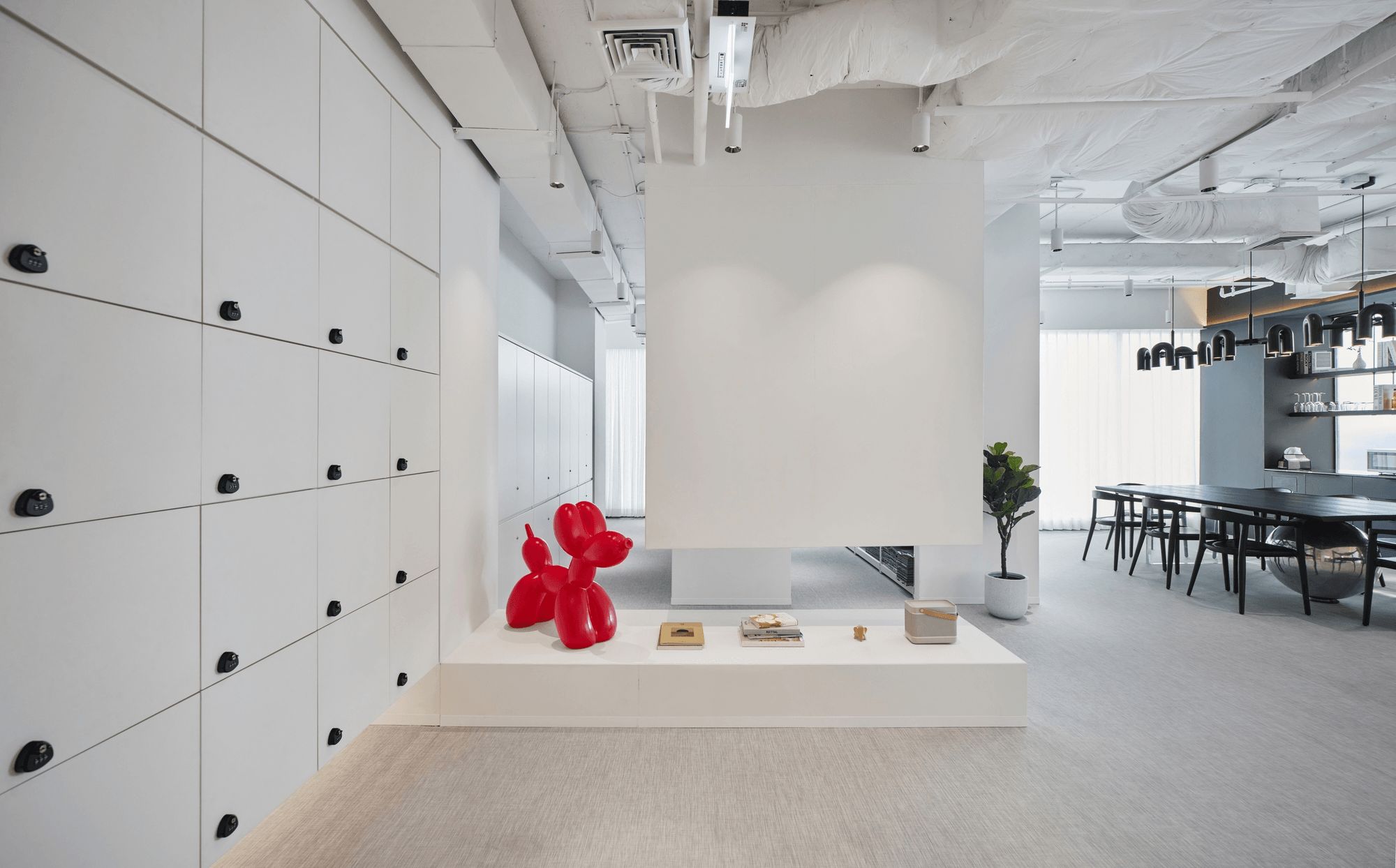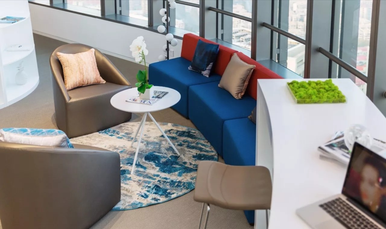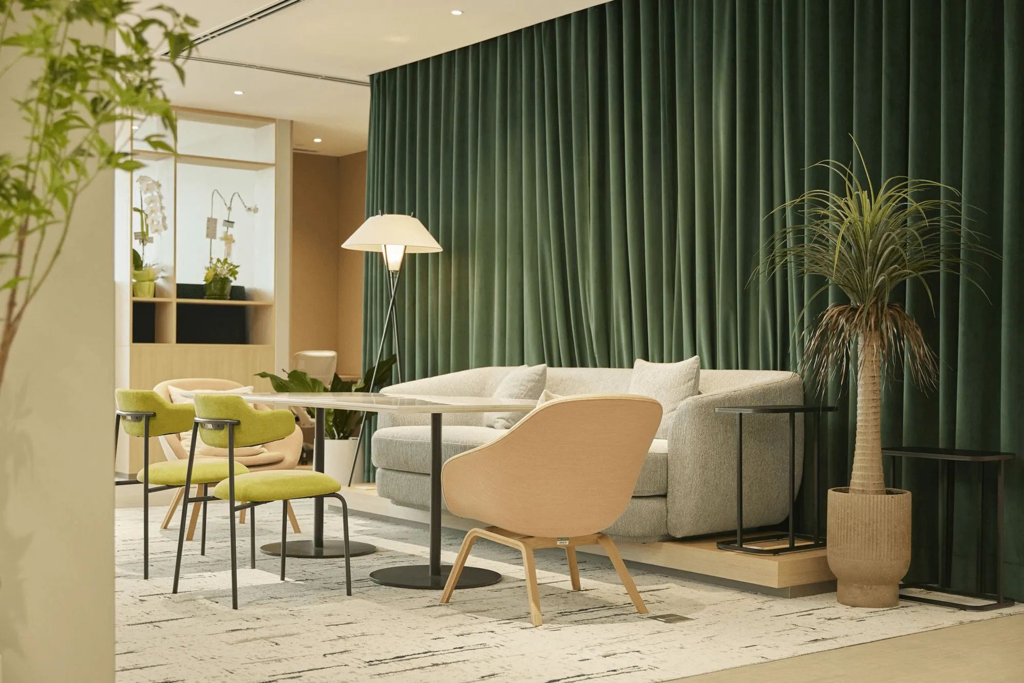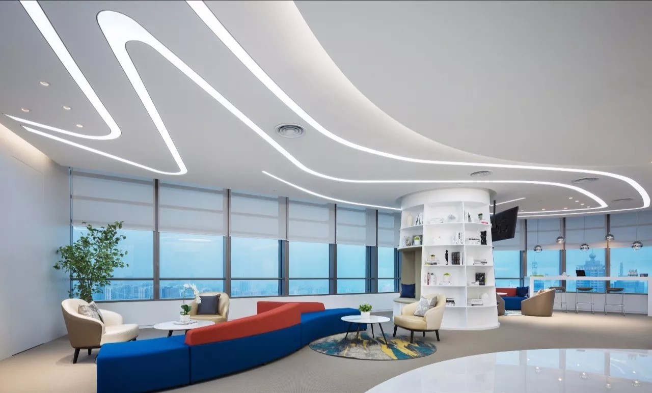 值得一提的是,设计师将前台设计为形成弧线的引导,很自然地将人们的视线导向一旁的综合休息区。舒适的沙发,随意摆放的休闲座椅,既有自由开放的公共空间,也可以供1-2人安静地交流思考。你可以取一杯香茗,也可以泡一杯咖啡,或优雅、或俊逸。无论是聚会,还是庆功,或是一段头脑风暴的思维碰撞,总能留下几个时刻让你难忘。