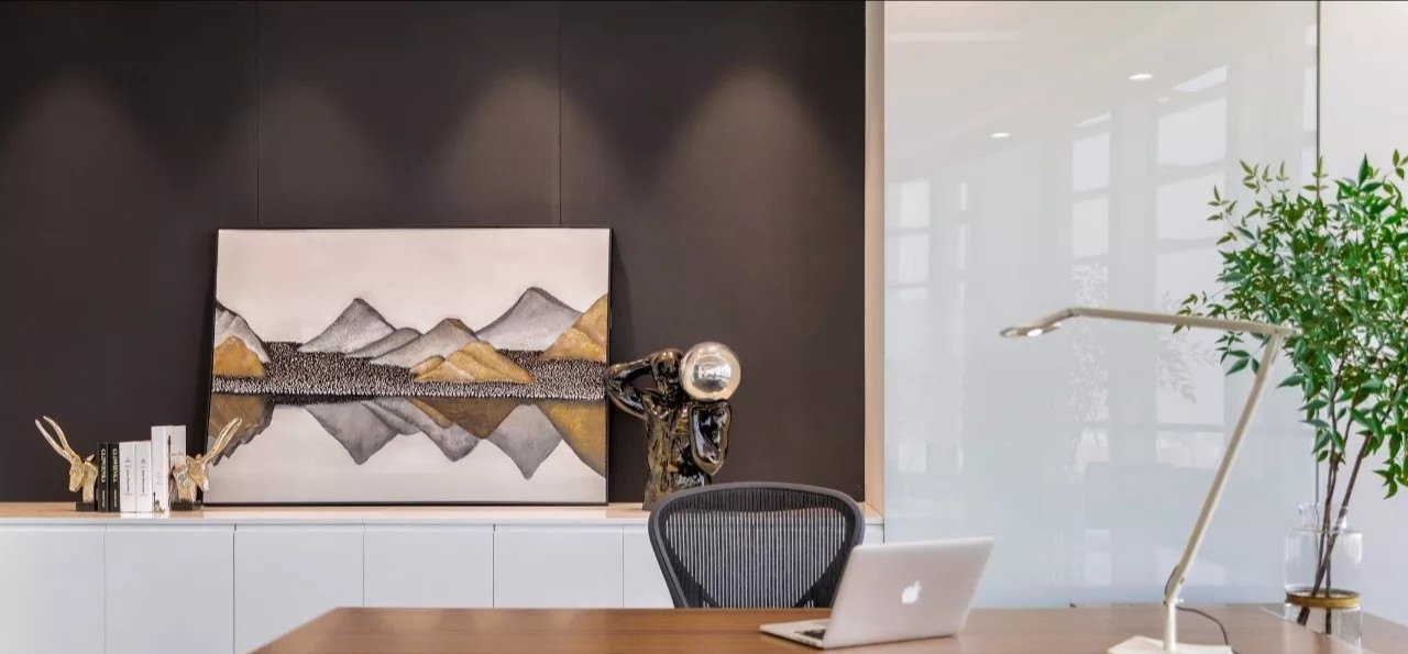 设计团队在空间中的对绿植花艺、挂画、地毯与艺术品的整体搭配,既是对空间美感的延伸,不突兀不迎合,又隐于线条肌理之中。