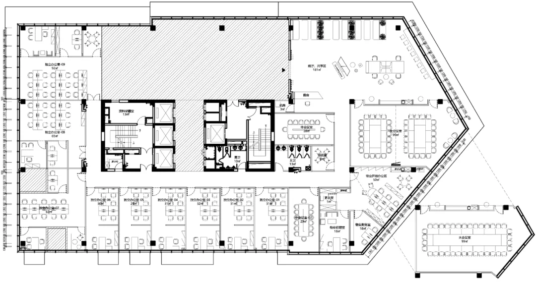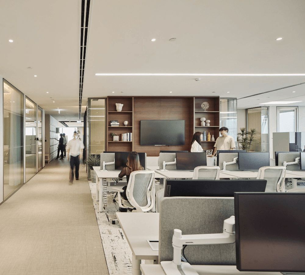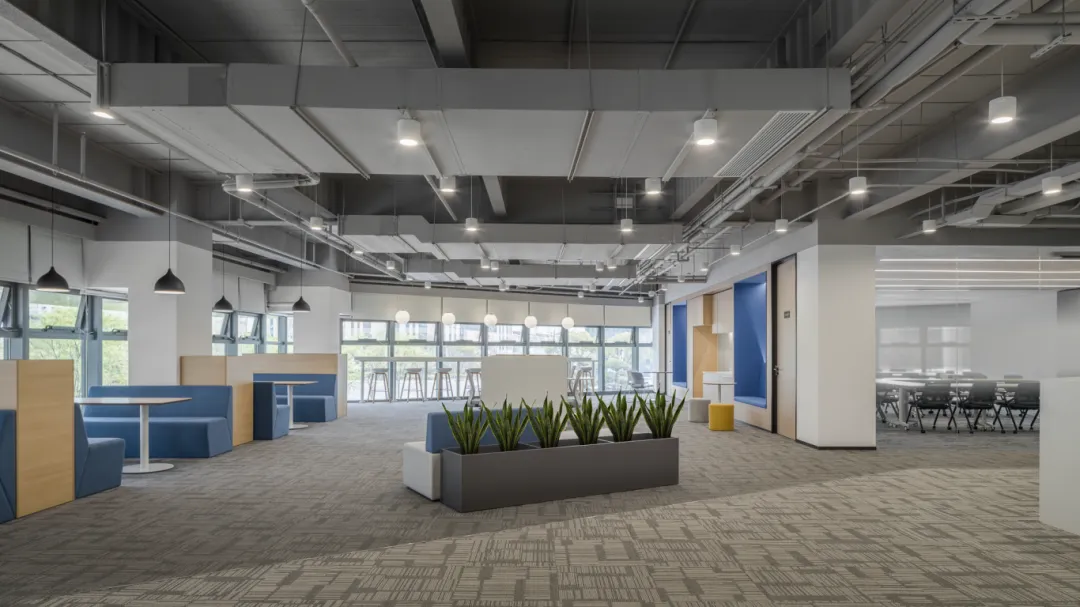开放式办公空间的设计旨在员工之间有最小的物理障碍或没有物理障碍,从而促进协作和交流的工作环境。它们旨在鼓励同事之间的互动、团队合作和自发的想法分享。开放式办公室可以增强协作和创造力,促进快速沟通,并促进同事之间的友情。